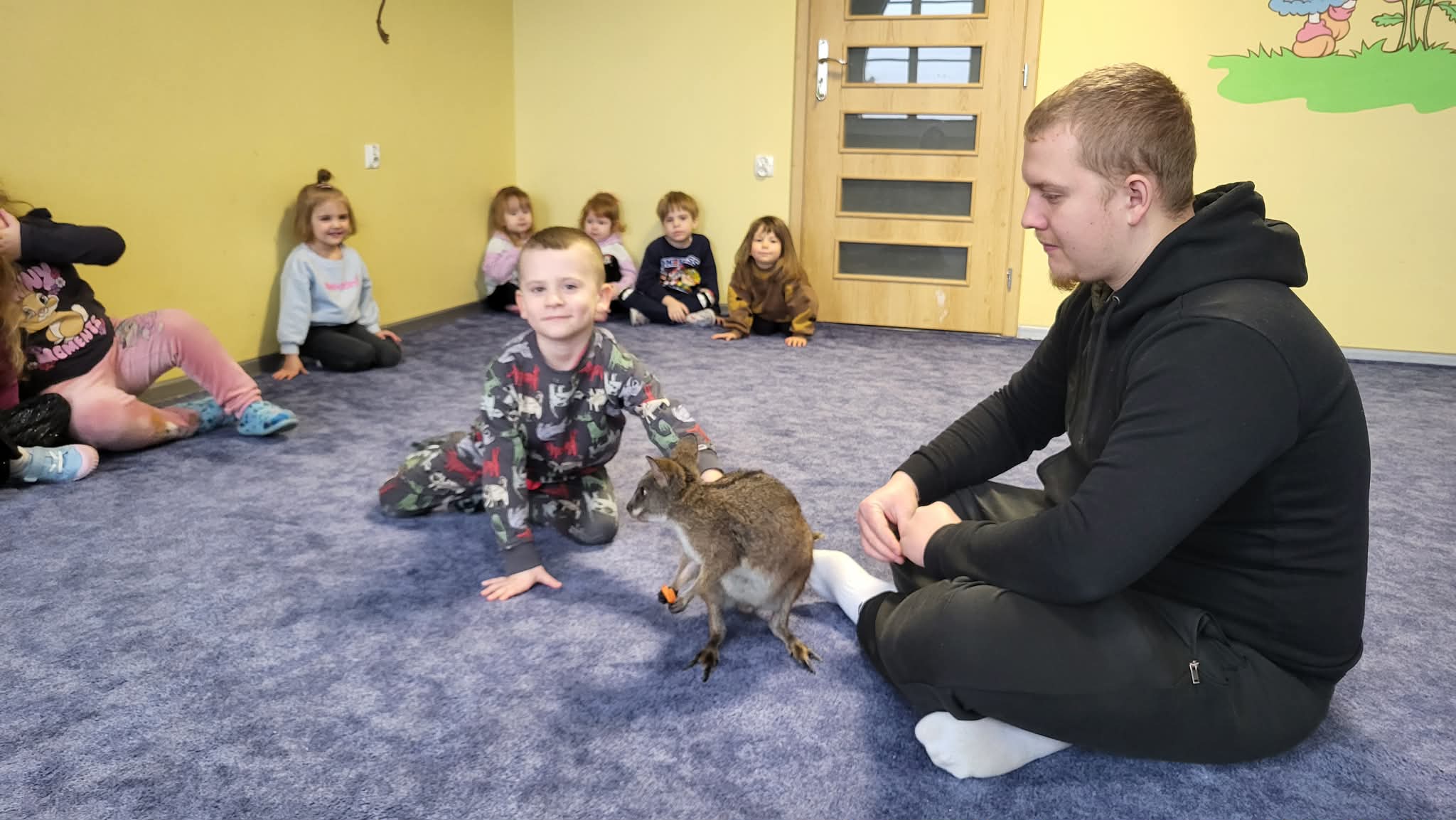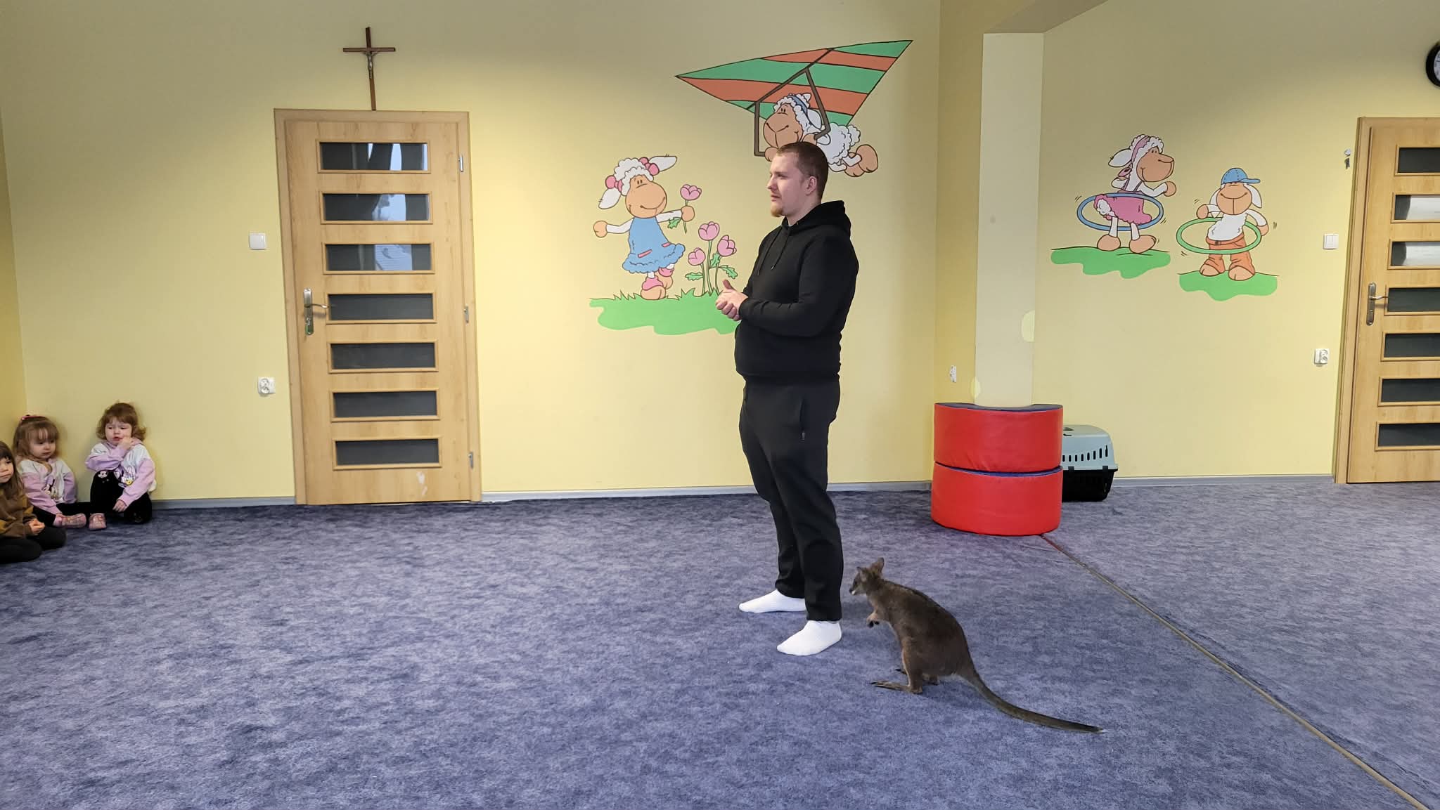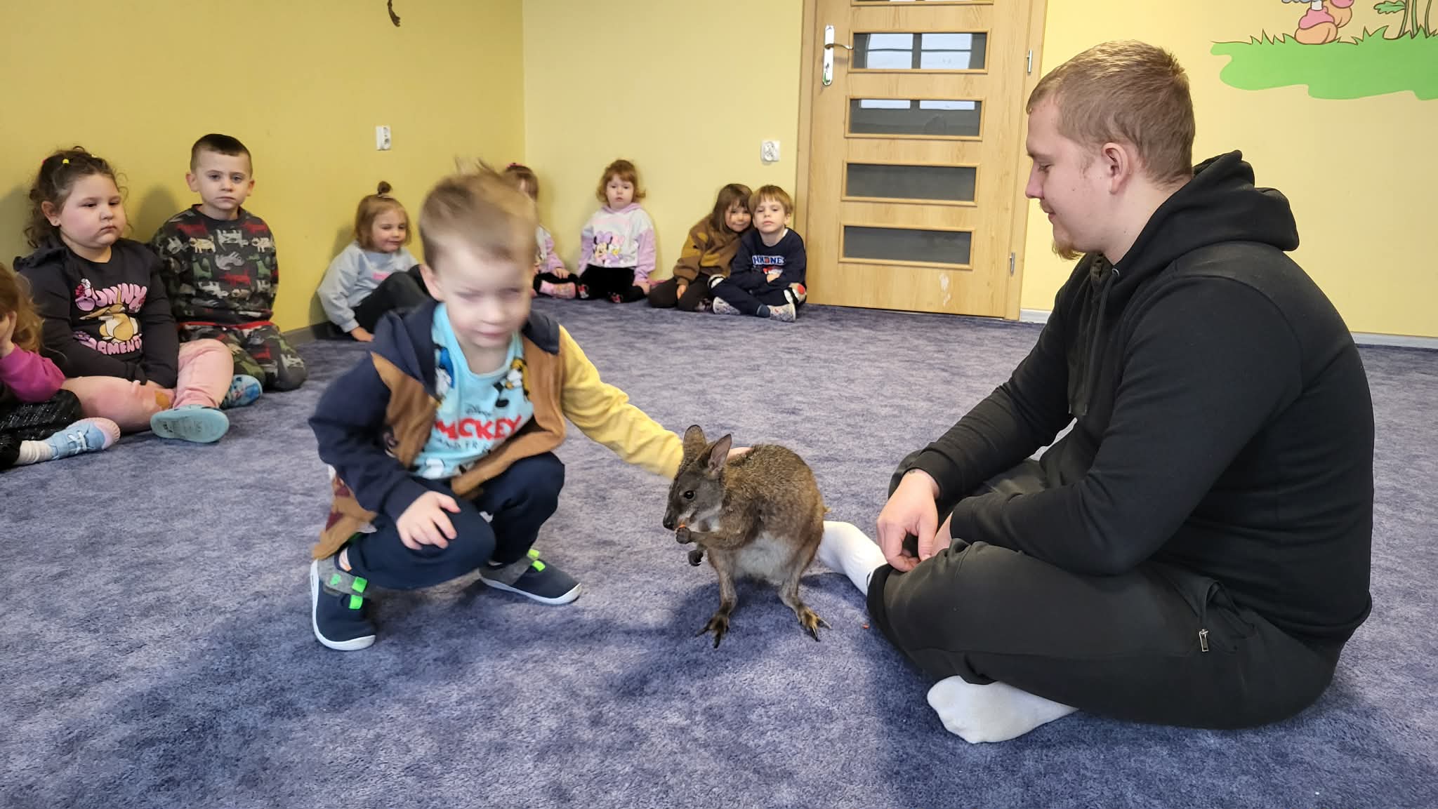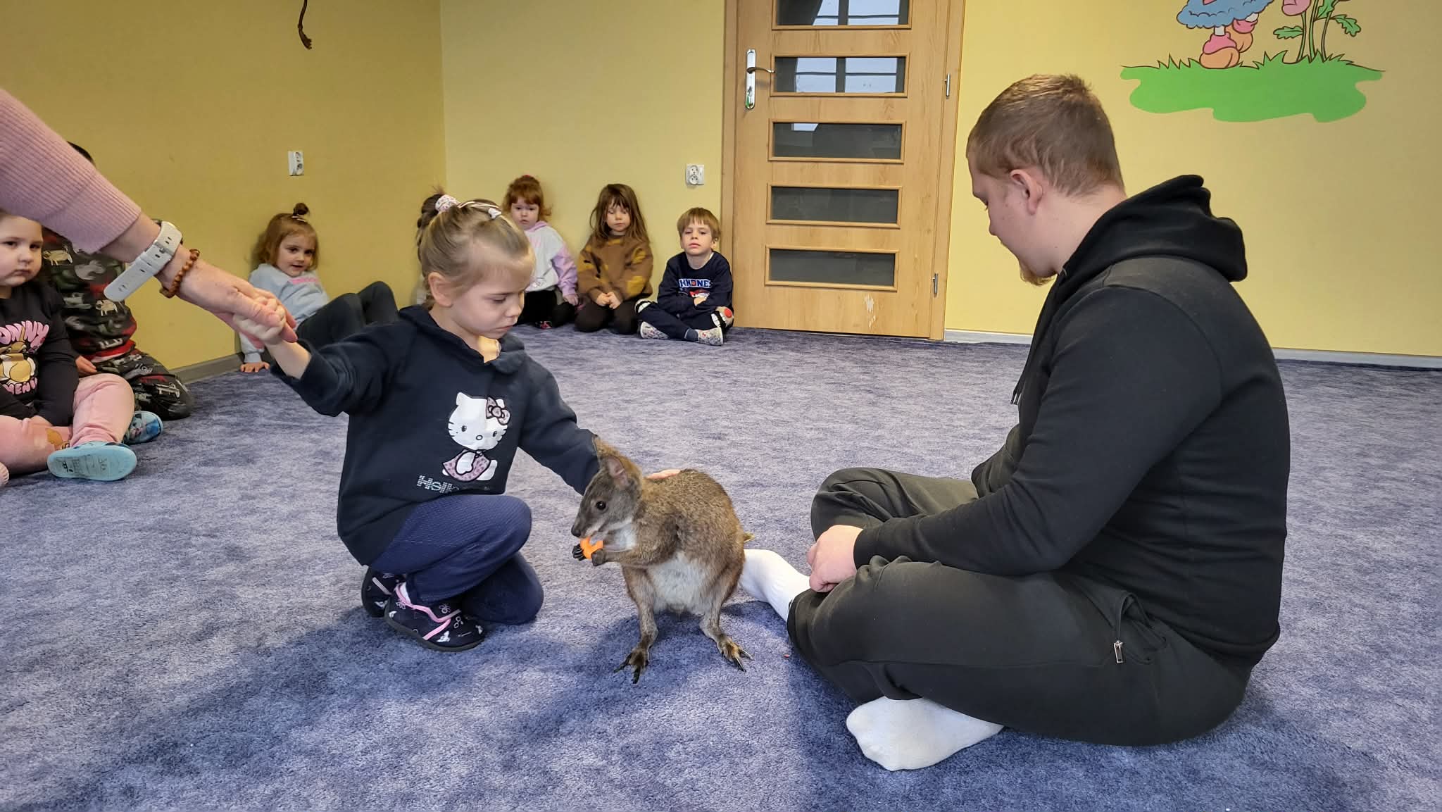 Dzisiaj w naszym przedszkolu bardzo ciekawy gość;)- kangur Stefan ze swoimi opiekunami z firmy „Odlotowe pokazy”.