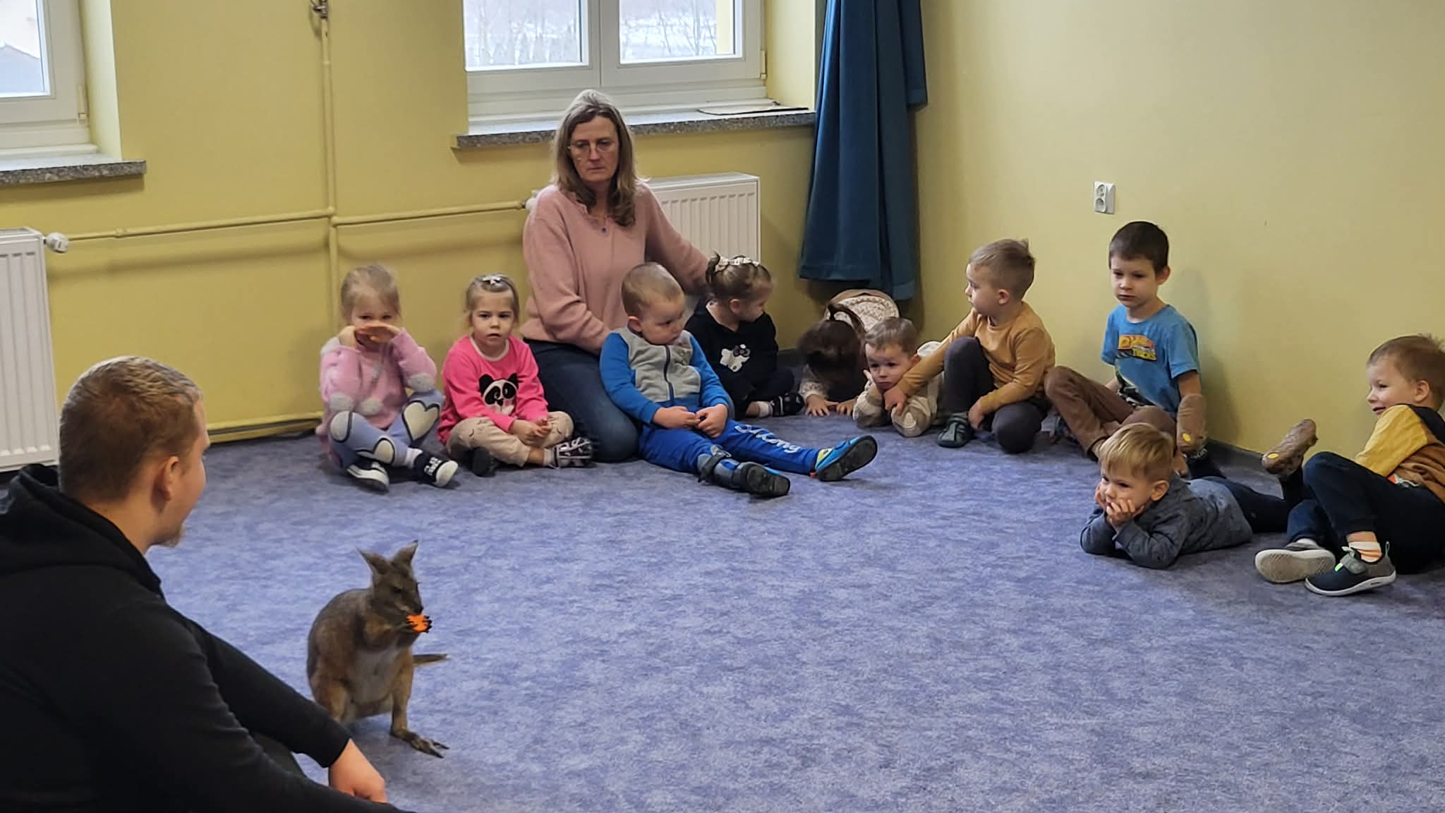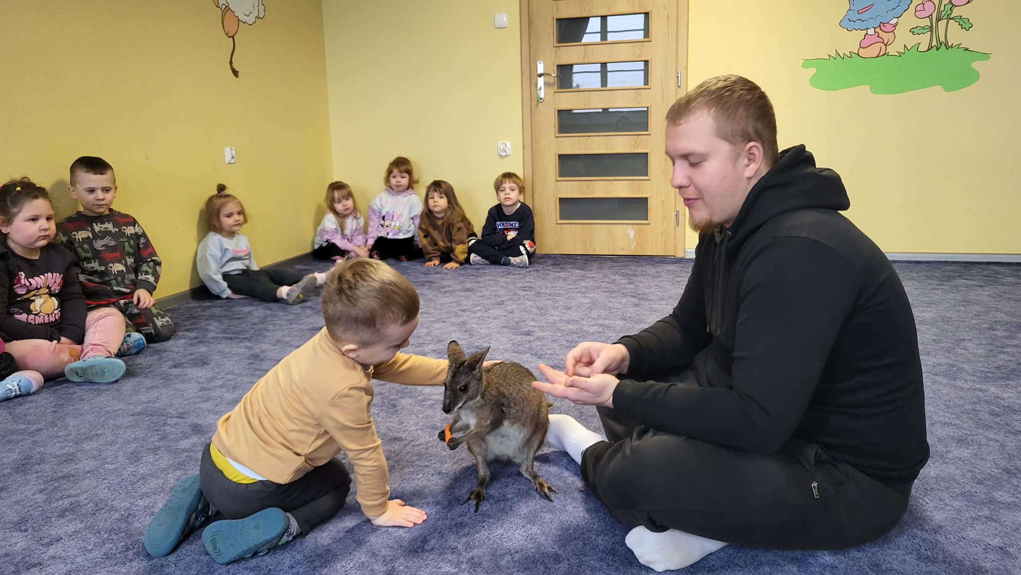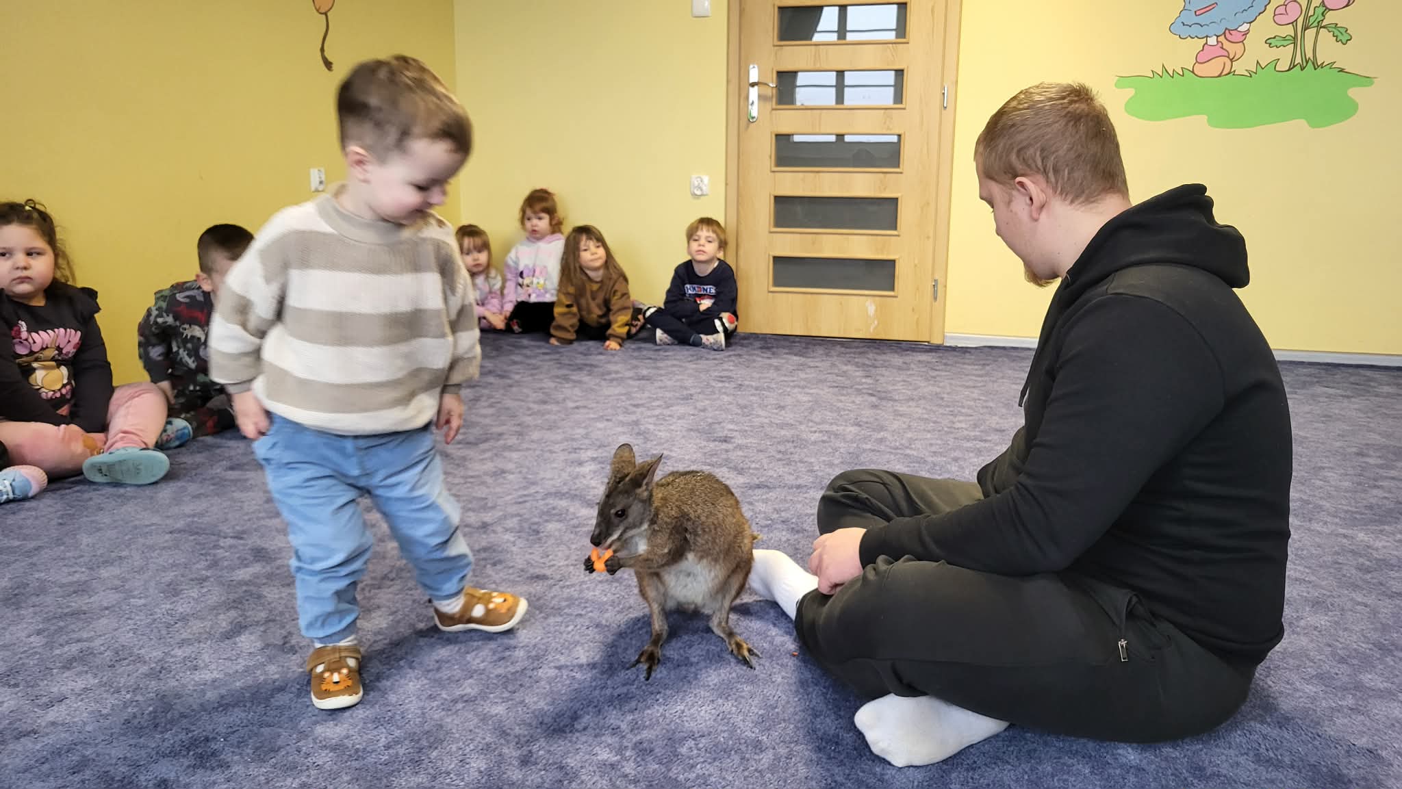 Dzisiaj w naszym przedszkolu bardzo ciekawy gość;)- kangur Stefan ze swoimi opiekunami z firmy „Odlotowe pokazy”.