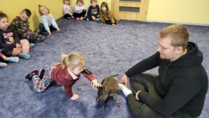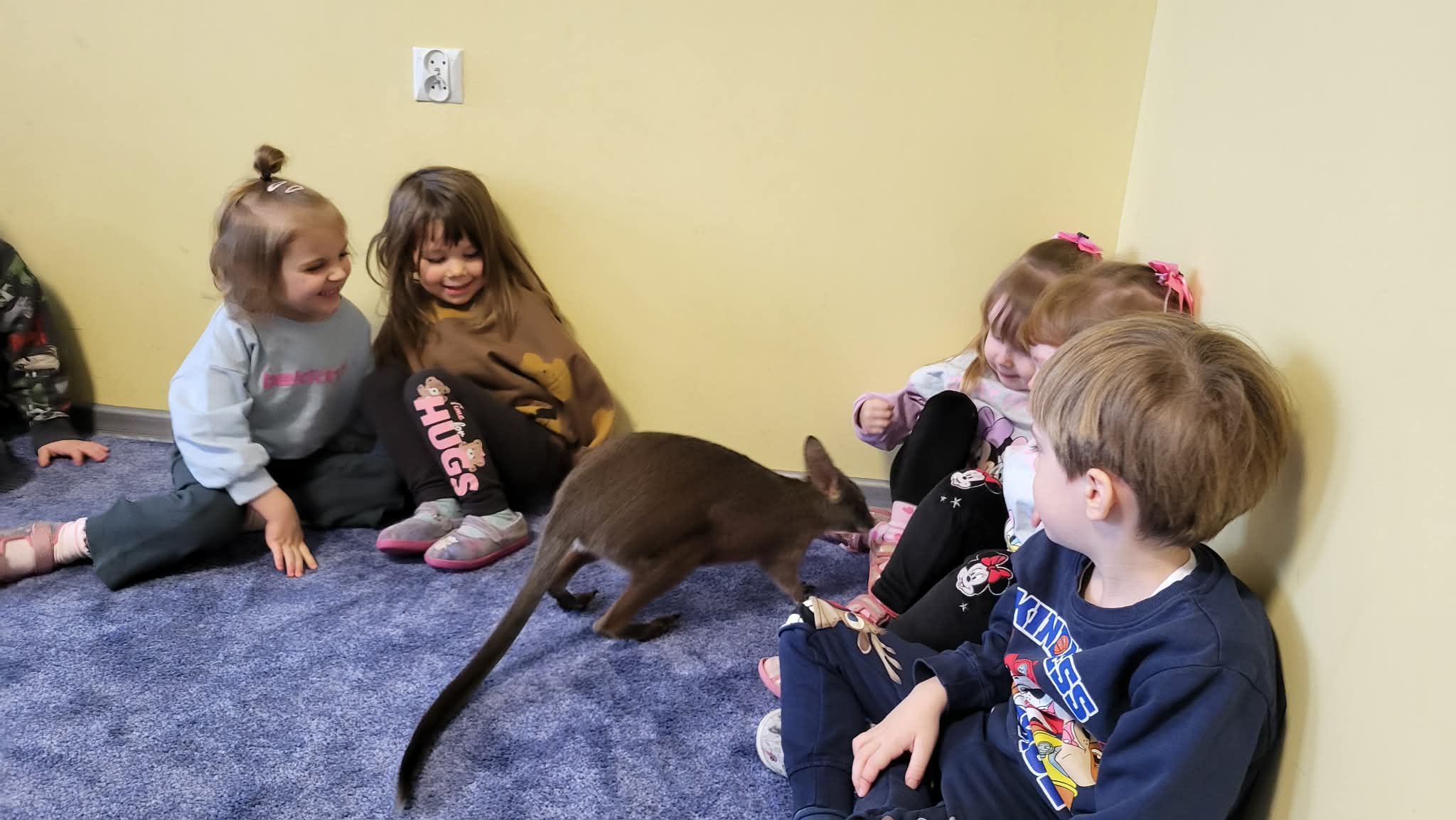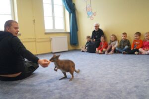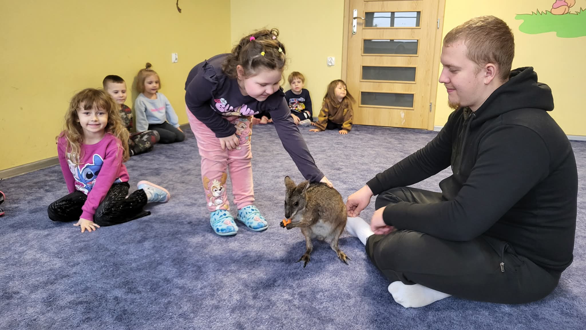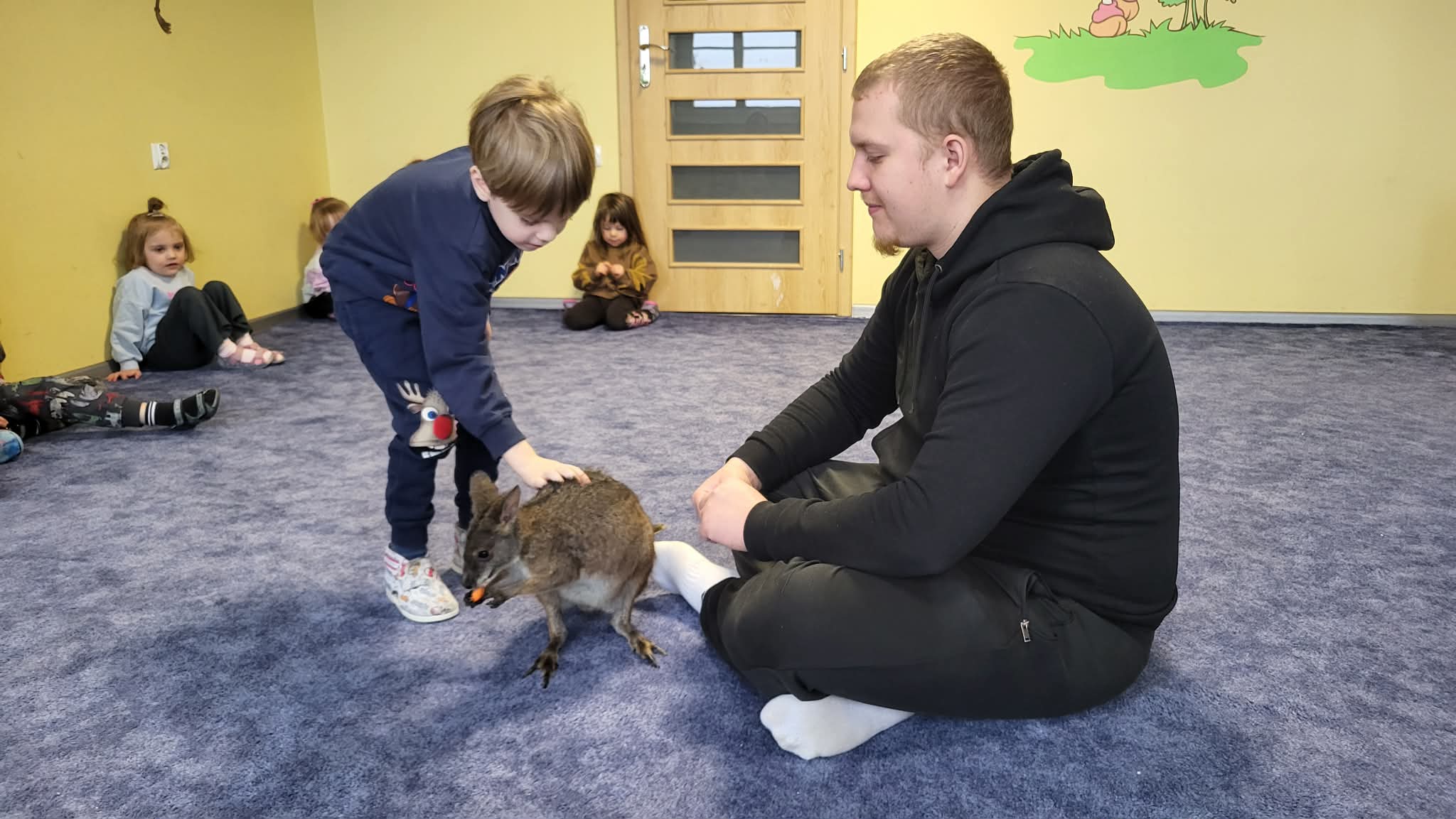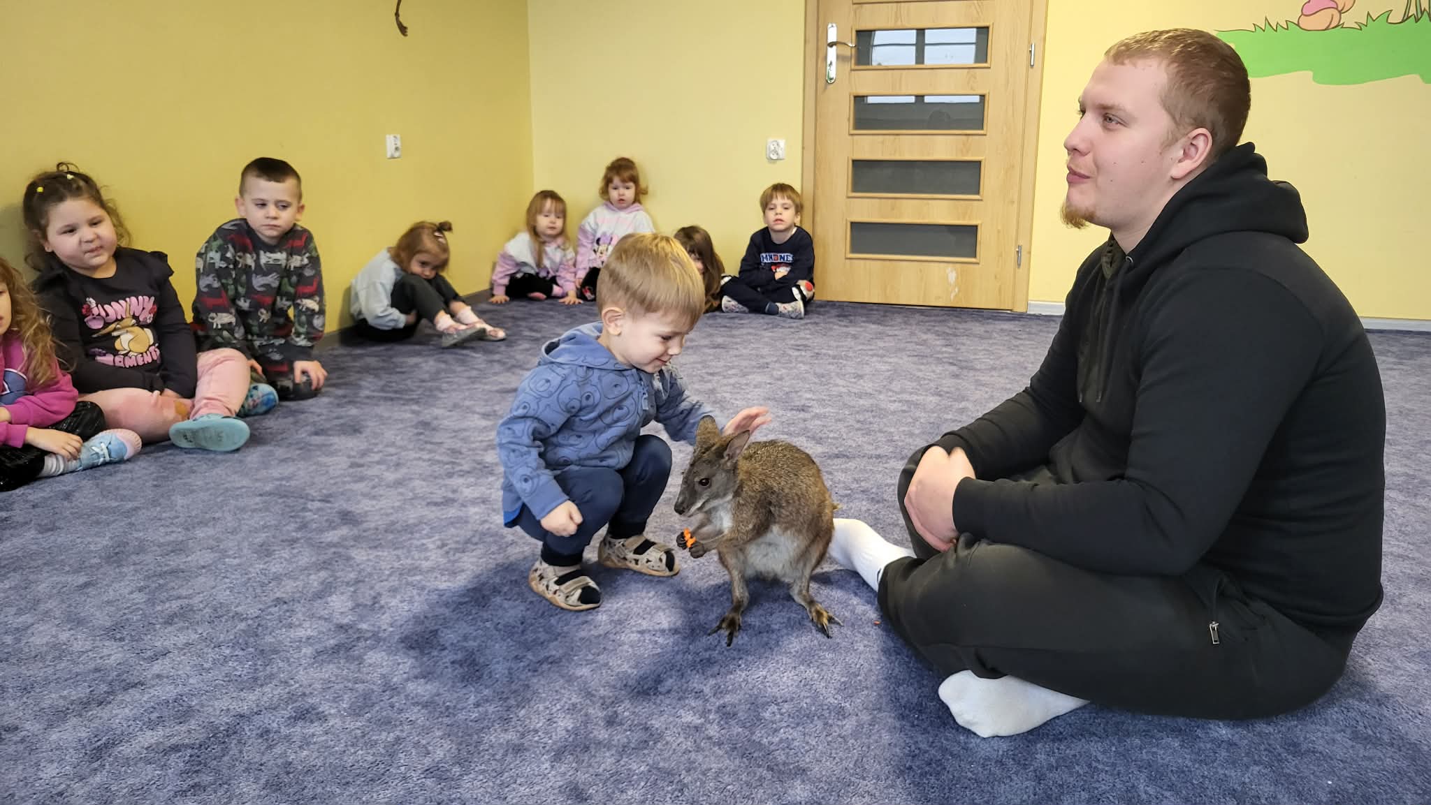 Dzisiaj w naszym przedszkolu bardzo ciekawy gość;)- kangur Stefan ze swoimi opiekunami z firmy „Odlotowe pokazy”.