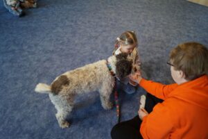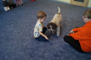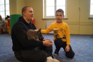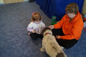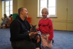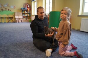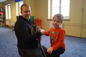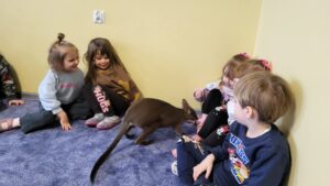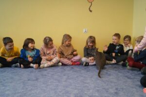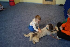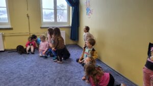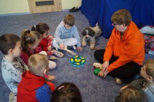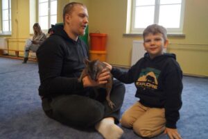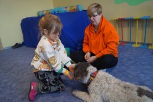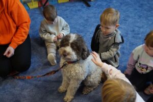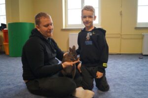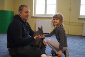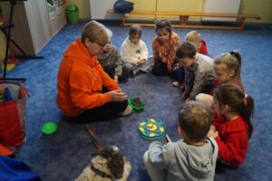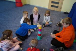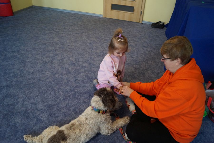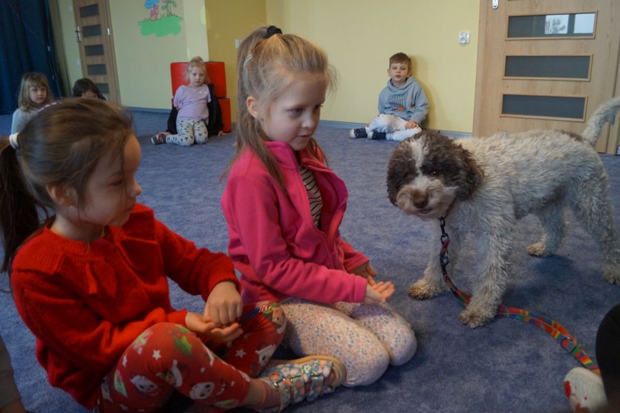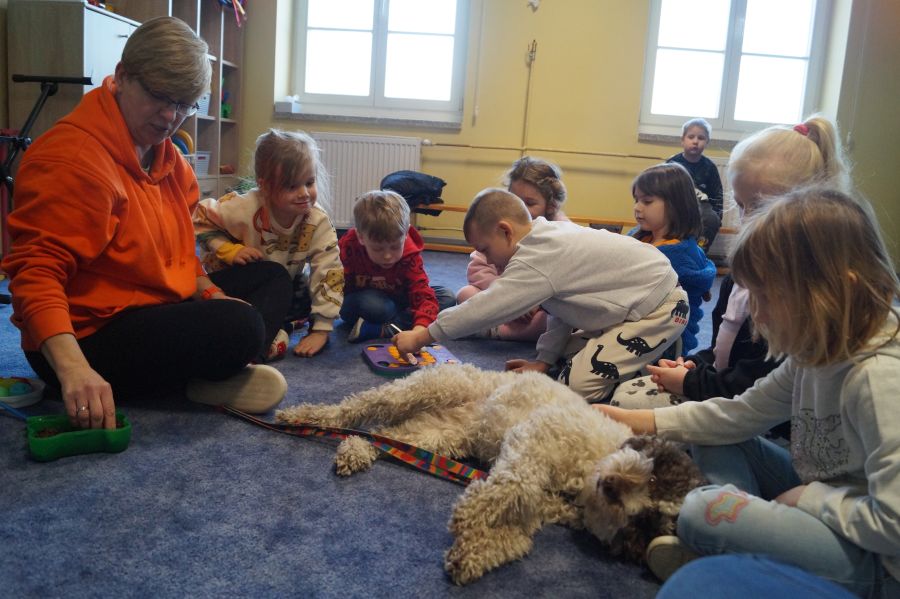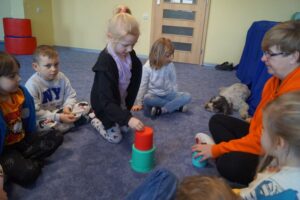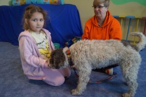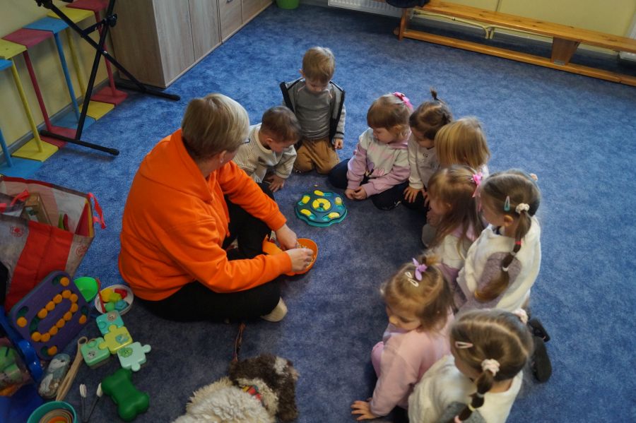 Co miesiąc nasze dzieci maja okazję brać udział w zajęciach z psem. Jest to świetna okazja do nabycia odporności emocjonalnej, nauka postępowania ze zwierzęciem, przełamywania swoich leków i barier. Dzieci zawsze chętnie biorą udział w tych spotkaniach.