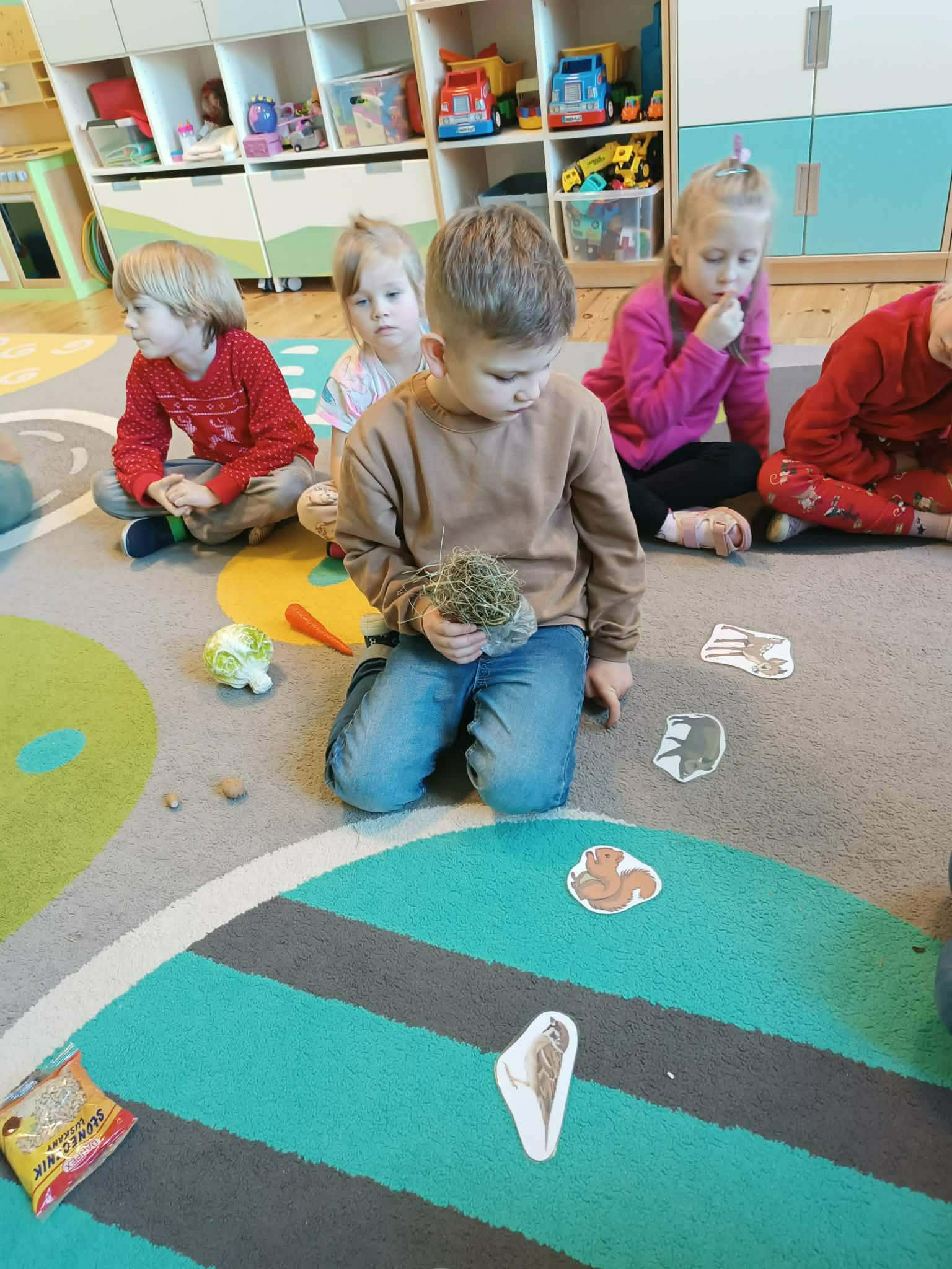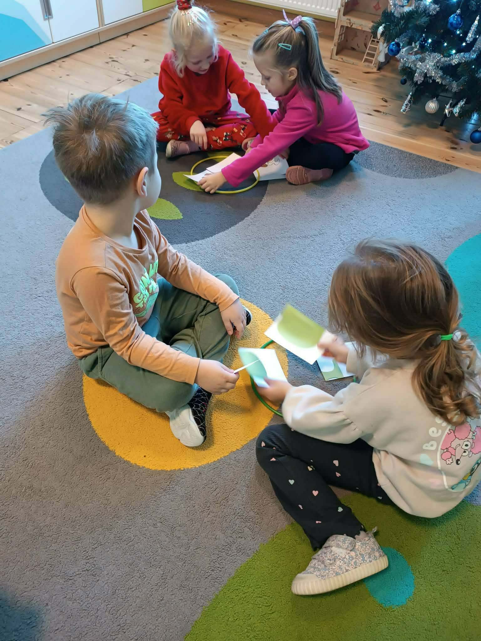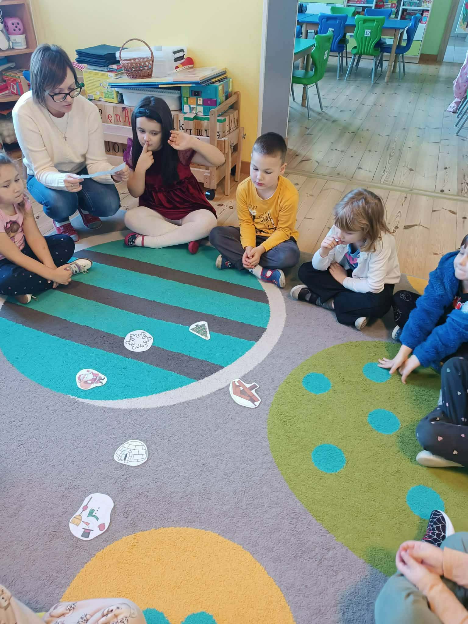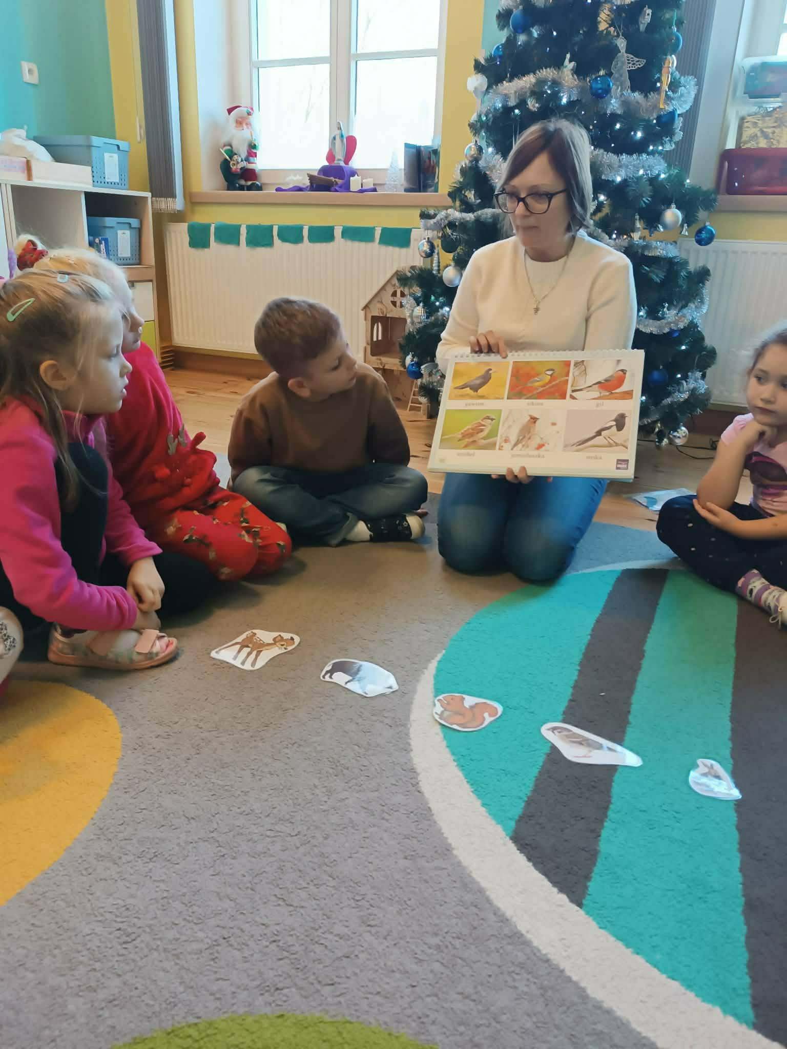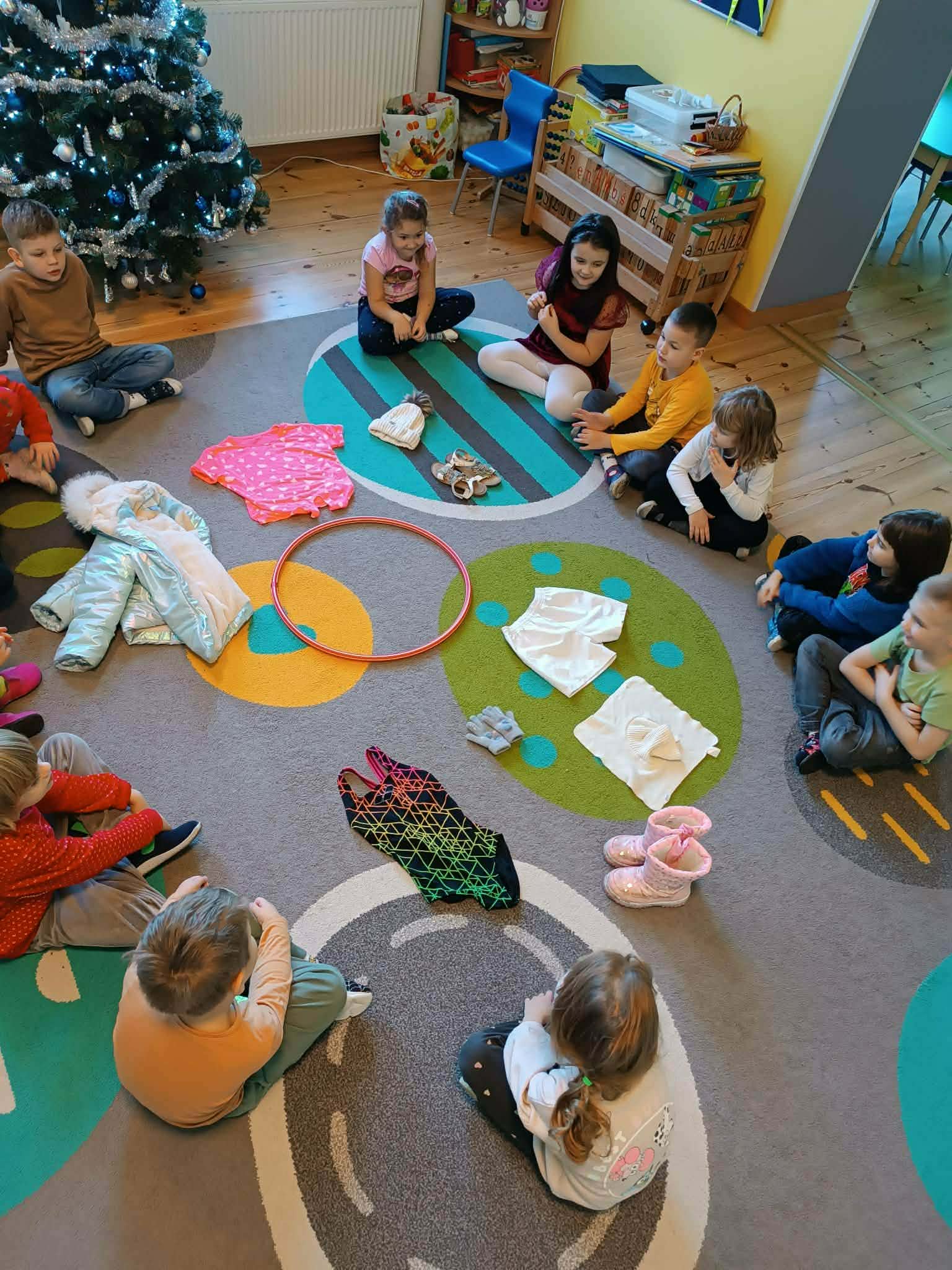 Starszacy w związku z nadejściem nowej pory roku wykonywali różnego rodzaju zadania, m.in. układali puzzle nt. zabaw zimowych, rozwiązywali zagadki związane z zimą, przyporządkowywali garderobę odpowiadającą danej porze roku, a na zakończenie zajęć utrwalili wiedzę o tym, w jaki sposób można pomóc zwierzętom przetrwać zimę.