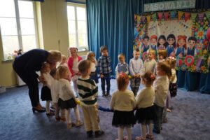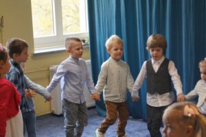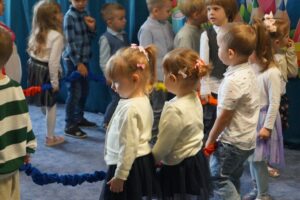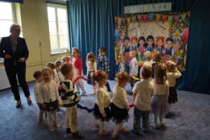 Z okazji Święta Niepodległości naszej Ojczyzny dzieci z grupy starszej, pod kierunkiem p. Katarzyny i p. Michaliny przygotowały montaż słowno- muzyczny. Było to bardzo wzruszające przedstawienie…pełne zadumy…Cała społeczność przedszkola wspólnie odśpiewała również Hymn Narodowy.