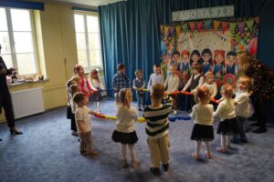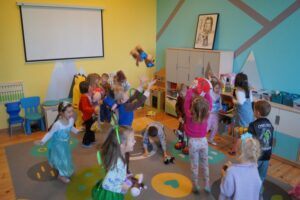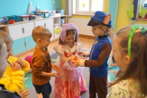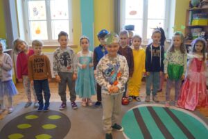 Starszacy utrwalali wiedzę na temat kultowych bajek poprzez zabawy i gry dydaktyczne. Dzieci poznały ponadto, jakich wartości uczą bohaterowie danych bajek. Na zakończenie tego wyjątkowego dnia odbył się bajkowy bal.