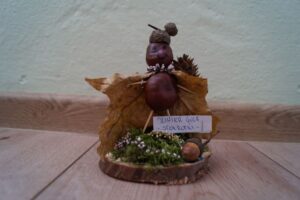 Przedmiotem konkursu było indywidualne wykonanie jesiennego ludzika z darów jesieni, z materiału przyrodniczego (liście, kasztany, żołędzie, dynie, owoce, warzywa itp.).