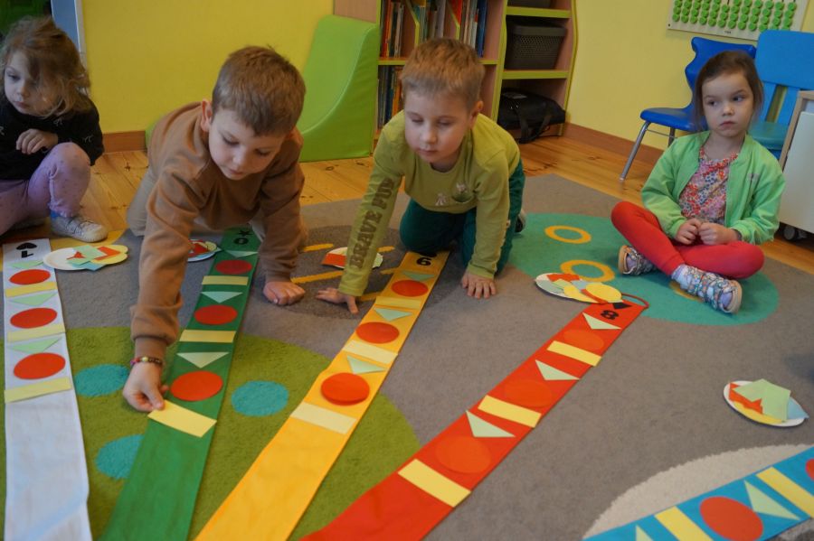 Dzisiaj odbyły się kolejne zajęcia matematyczne, podczas których obie grupy przedszkolne utrwalały wiedzę na temat figur geometrycznych. Wykonywane przez dzieci zadania dawały im dużo radości i satysfakcji oraz skutecznie wspierały rozwój ich spostrzegawczości i logicznego myślenia.