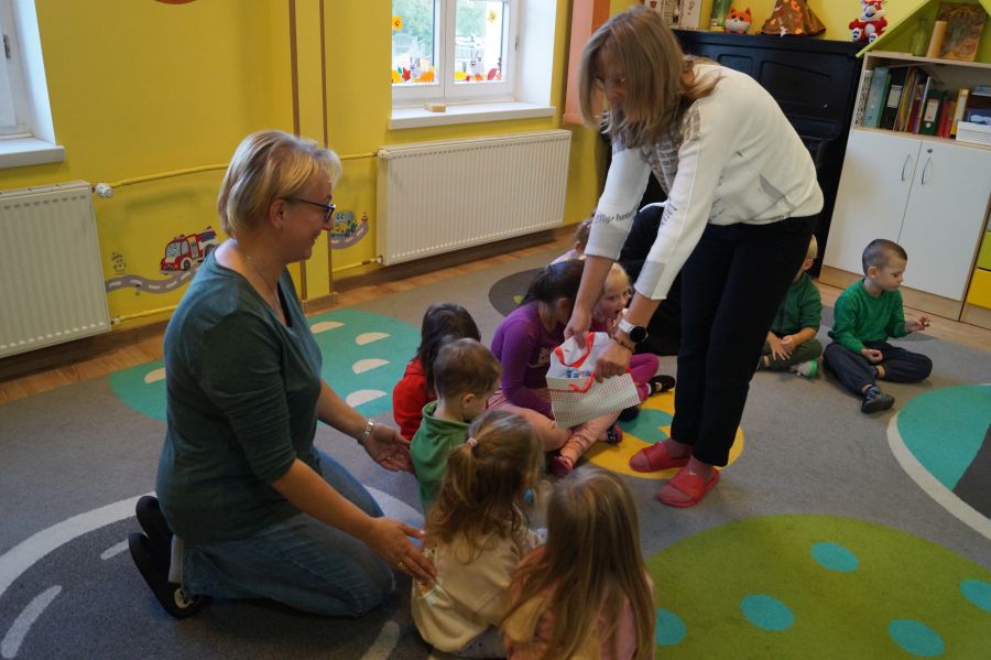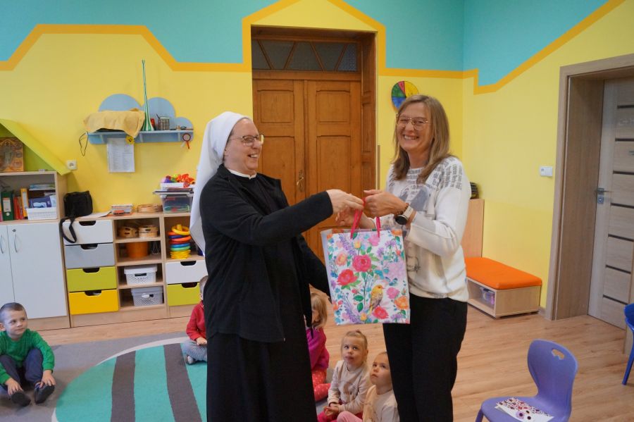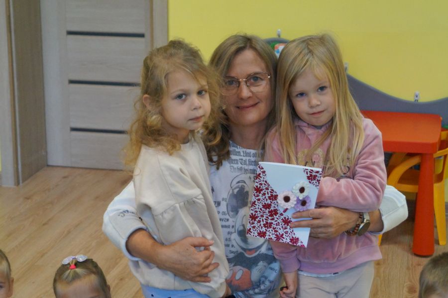 W naszym przedszkolu dzieci świętują urodziny, a pracownicy imieniny ;). Dzisiaj od samego rana składaliśmy najserdeczniejsze życzenia pani Teresie- pomocy nauczyciela w grupie młodszej. Panią Tereskę znają i kochają wszystkie dzieci, bo od maluszka z ogromnym zaangażowaniem dba o nie, jak najlepsza mama, ucząc i wychowując.