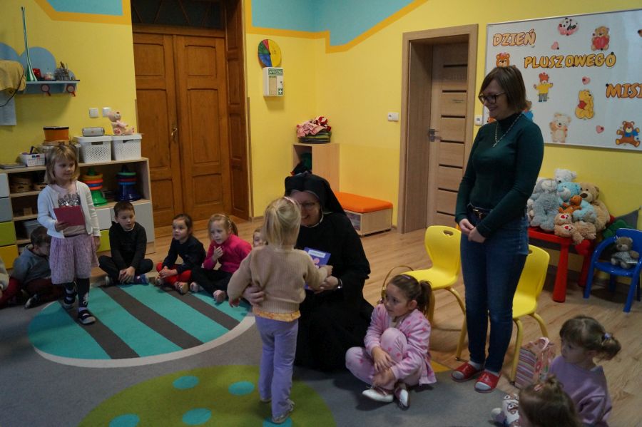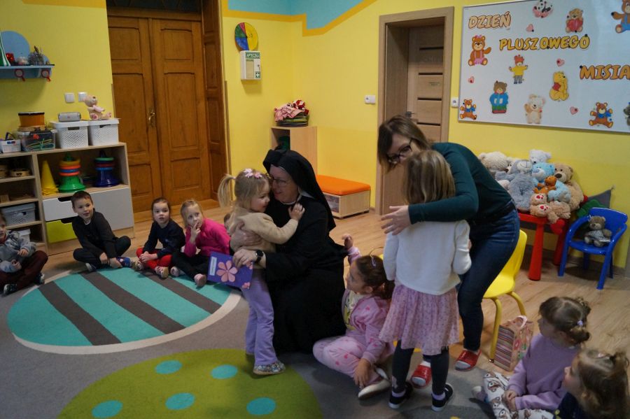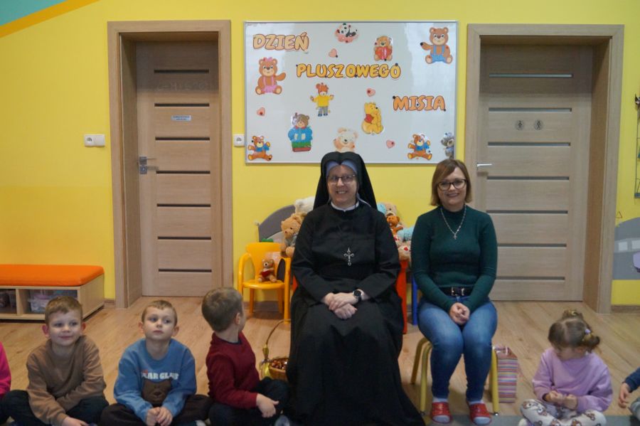 Dzień pluszowego misia wypada we wspomnienie św. Katarzyny Aleksandryjskiej, która była młodą chrześcijanką ze szlachetnego rodu, zginęła śmiercią męczeńską w 305 roku. Jest ona patronką s. dyrektor Katarzyny Maciejewskiej i pani Katarzyny Gackowskiej- wychowawczyń grupy starszej. Cała społeczność przedszkola świętowała dzisiaj podwójnie 😉