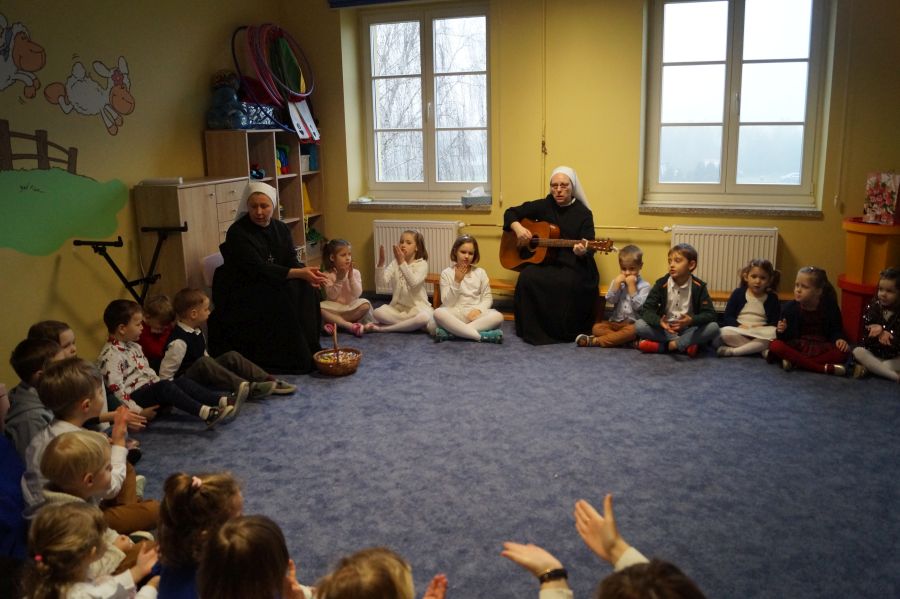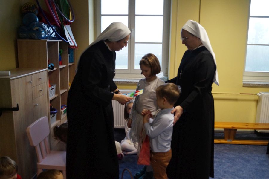 W tym roku imieniny s. Małgorzaty, wychowawczyni grupy młodszej wypadają w sobotę, dlatego też przedszkolacy oraz pracownicy postanowili złożyć siostrze życzenia już w piątek.