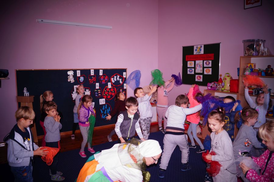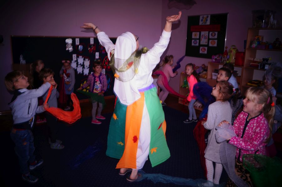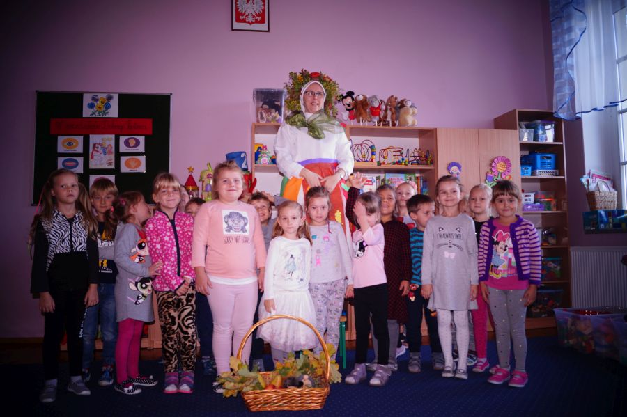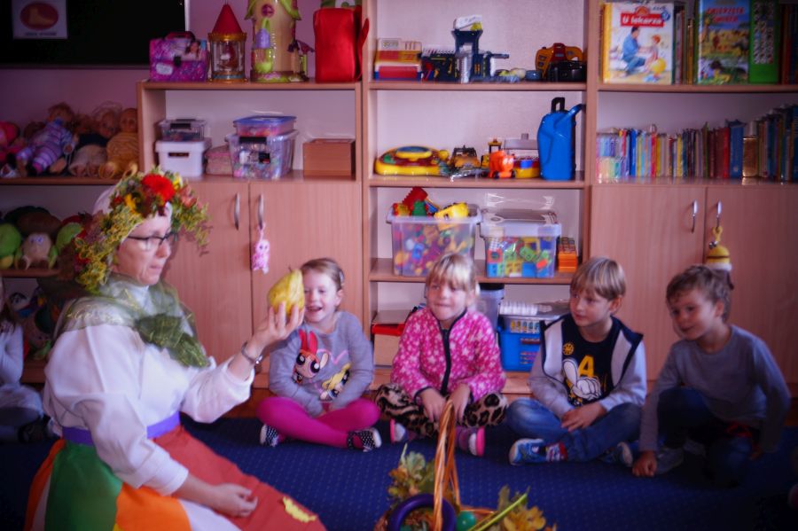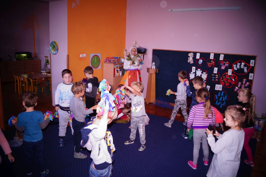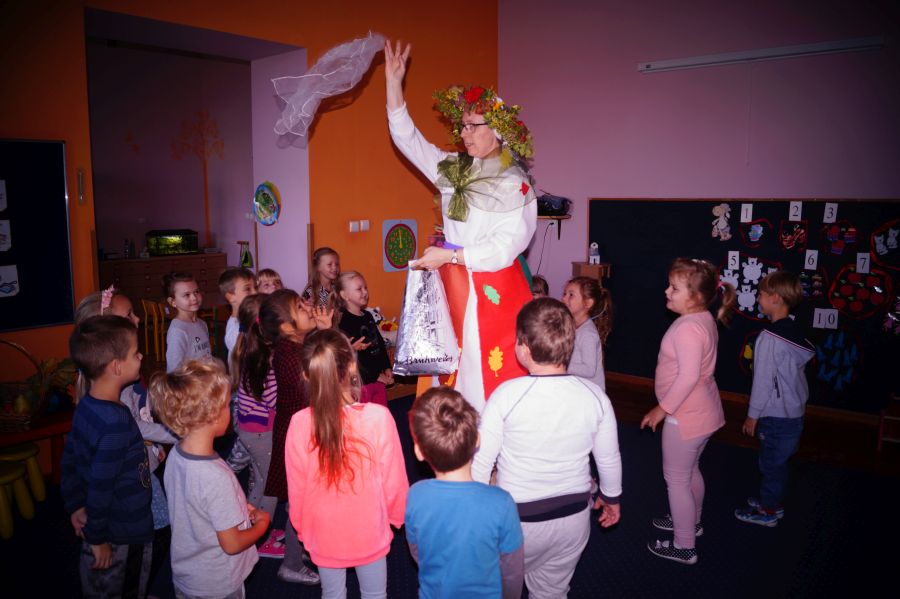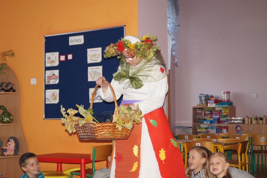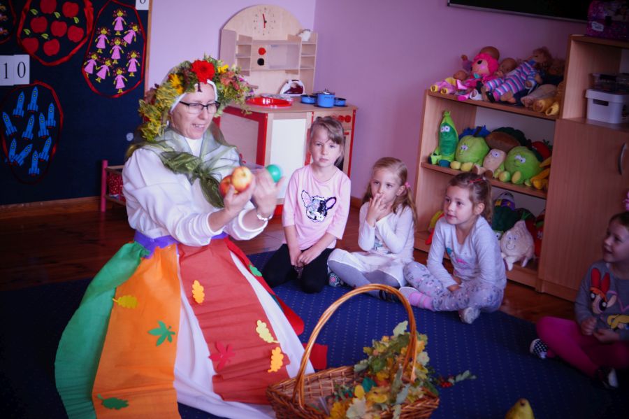 Przedszkole odwiedziła Pani Jesień z bogactwem swych kolorów i darów, dzieci wspaniale się bawiły przy dźwiękach „Jesieni A. Vivaldiego i rozwijały swoje wszechstronne zdolności.