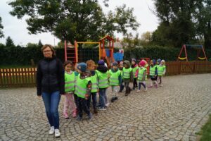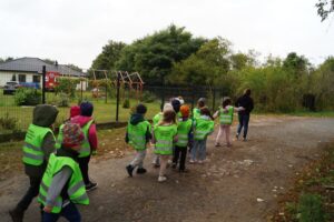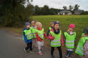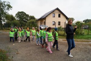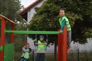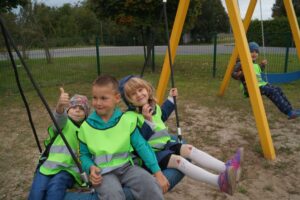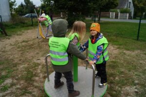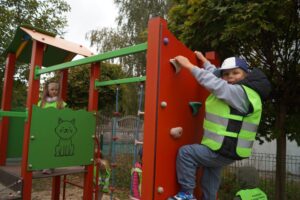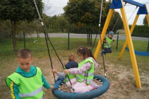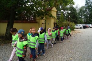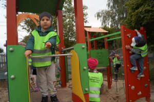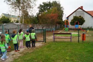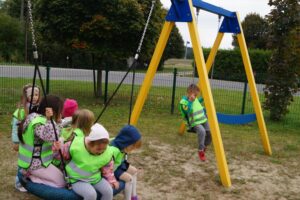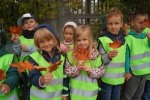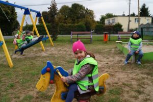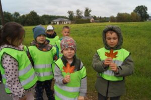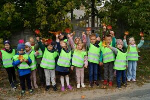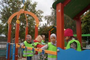 Grupa starsza wybrała się na spacer podczas którego dzieci zbierały kolorowe liście oraz obserwowały zmiany zachodzące jesienią. Na zakończenie wycieczki dzieci skorzystały z pobliskiego placu zabaw, gdzie świetnie się bawiły.