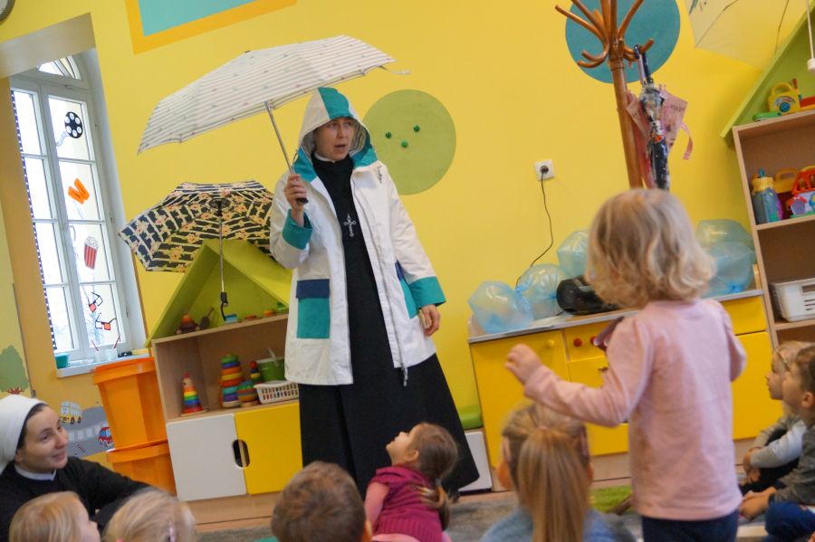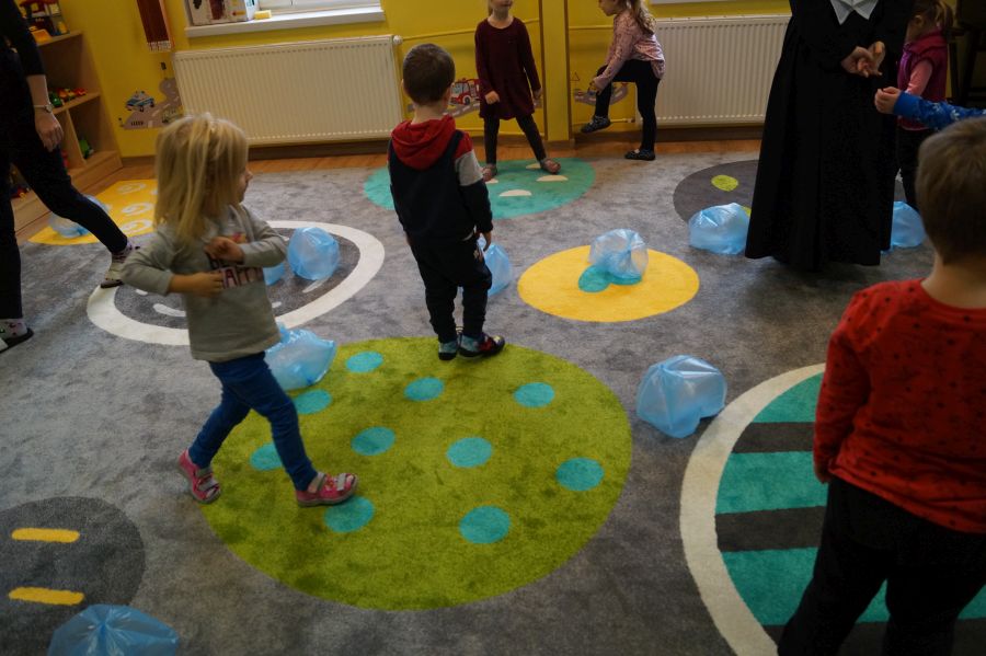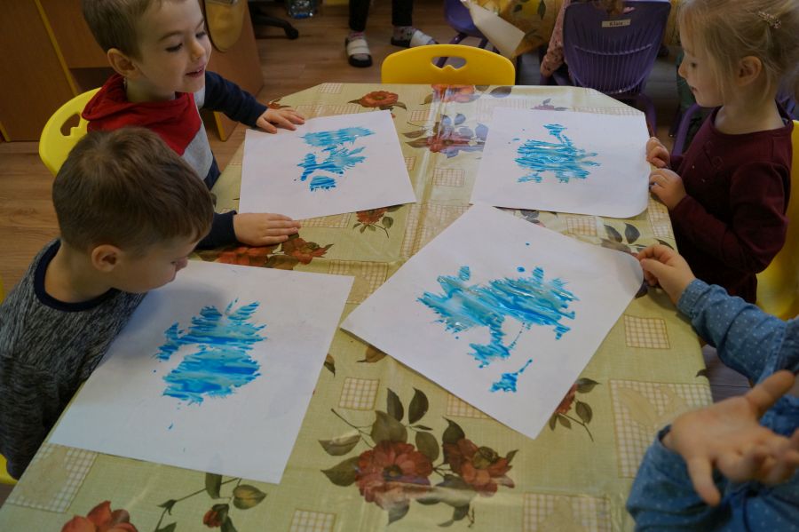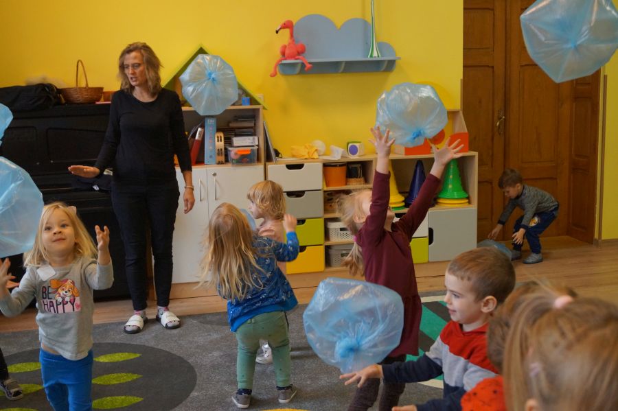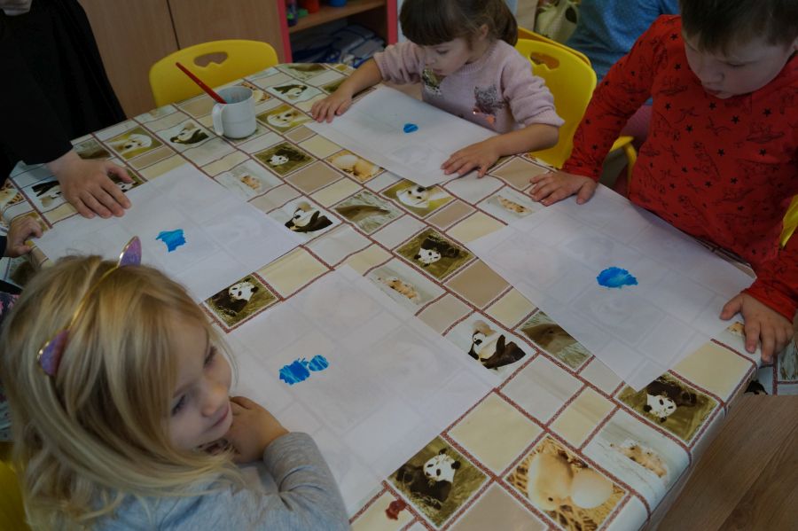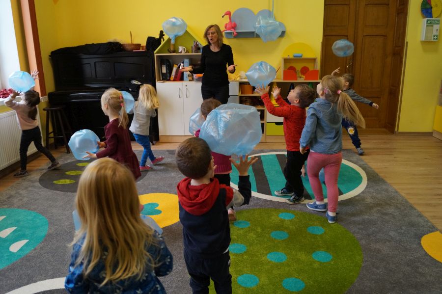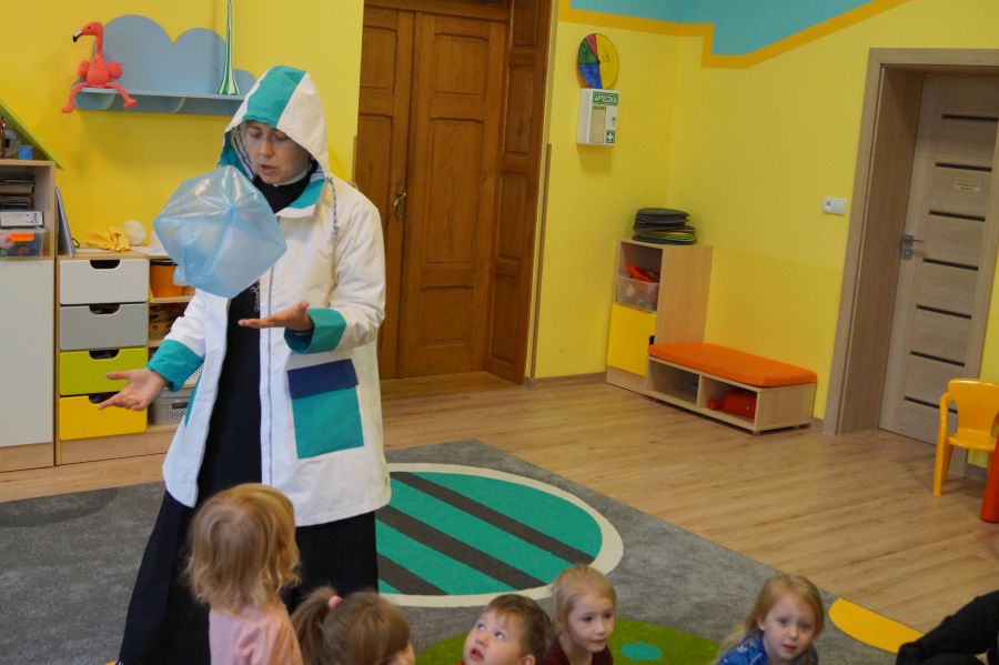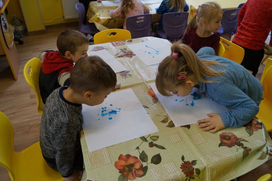 Maluchy uczyły się nowej piosenki, pięknie tańczyły z „kropelkami” wody i ćwiczyły oddech malując „kałuże”. Wszystkie dzieci wiedzą też, jak należy się ubierać, gdy pada deszcz.