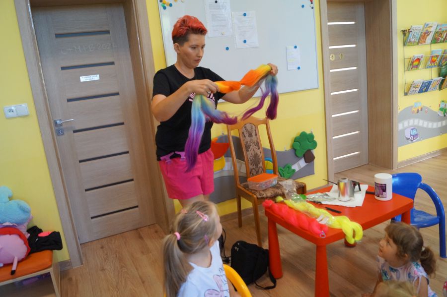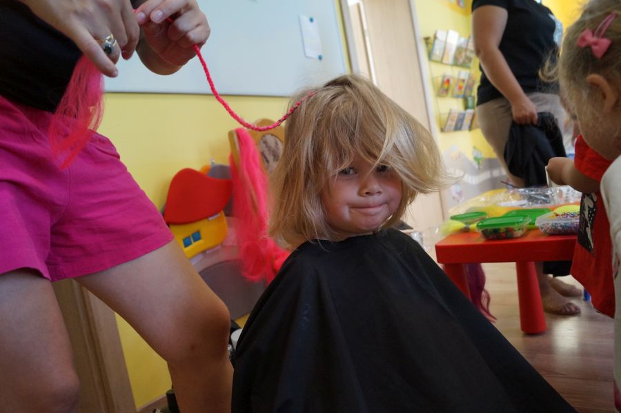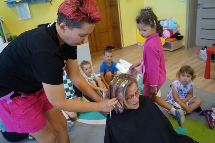 W piątkowy poranek odwiedziła nas mama Majki, pani Basia, która z zawodu jest fryzjerką. Dzieci dowiedziały się wielu ciekawych faktów na temat jej pracy, a także mogły skorzystać z profesjonalnych umiejętności.  Na wakacyjny weekend w sam raz 😉 Bardzo dziękujemy za poświęcony czas i zaangażowanie.
