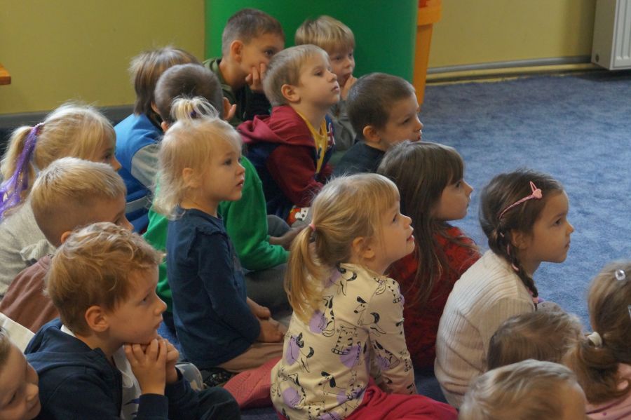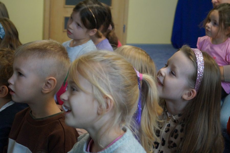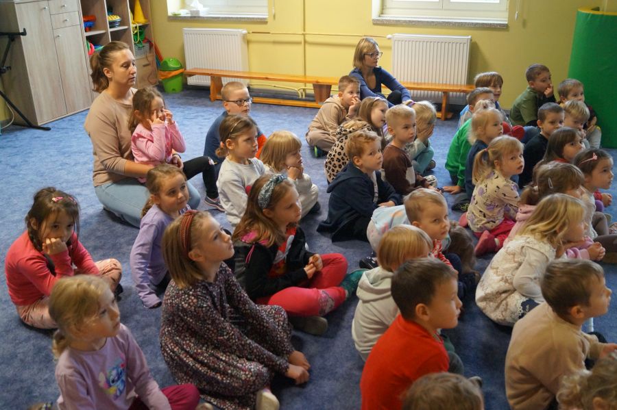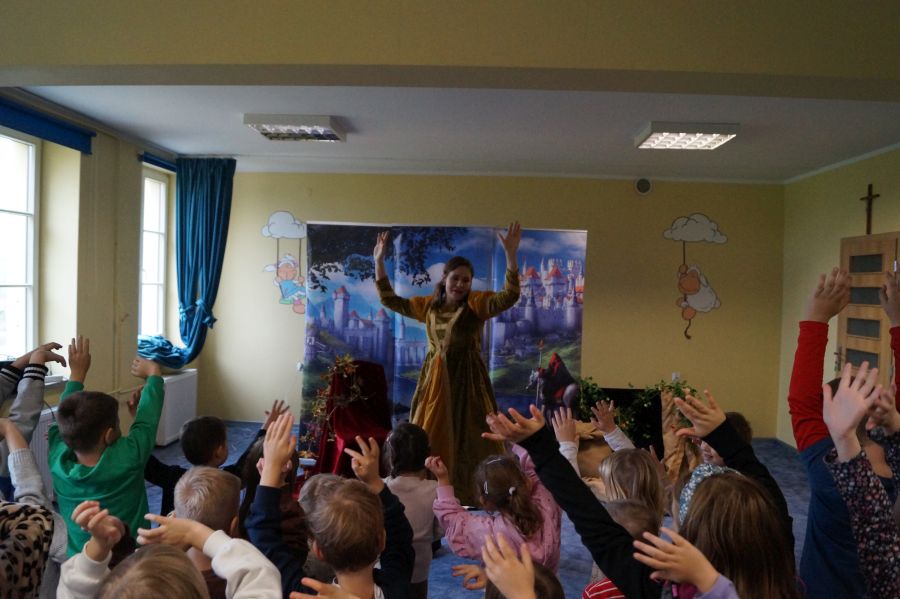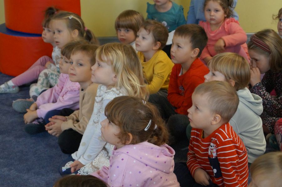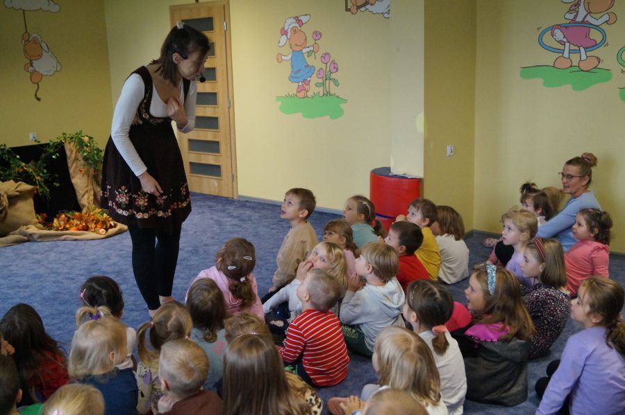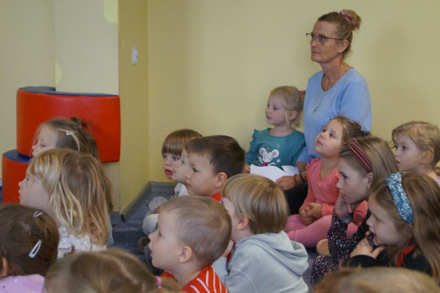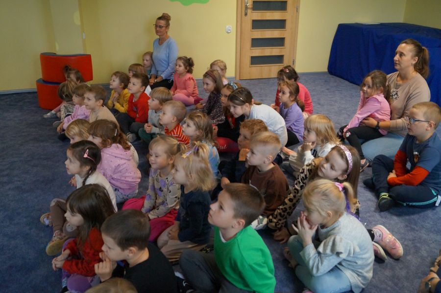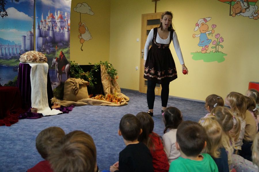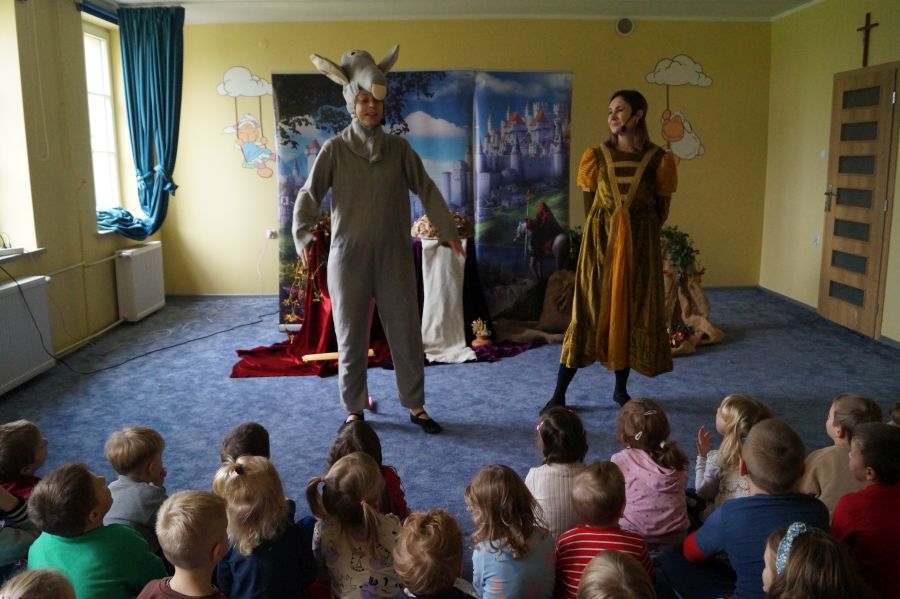 Po wakacyjnej przerwie przyjechał do nas Teatr Bajeczny, z bardzo ładnym, pouczającym przedstawieniem. Dzieci słuchały z wielkim skupieniem, żywo reagując na poszczególne sceny.