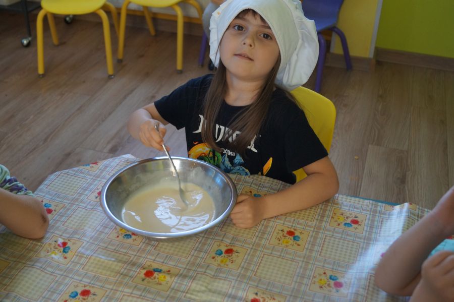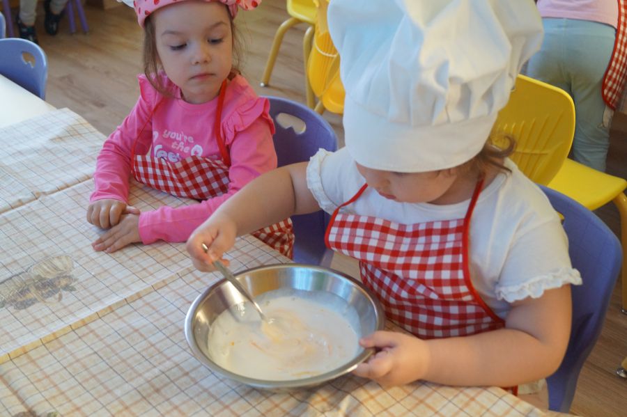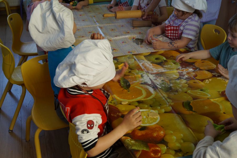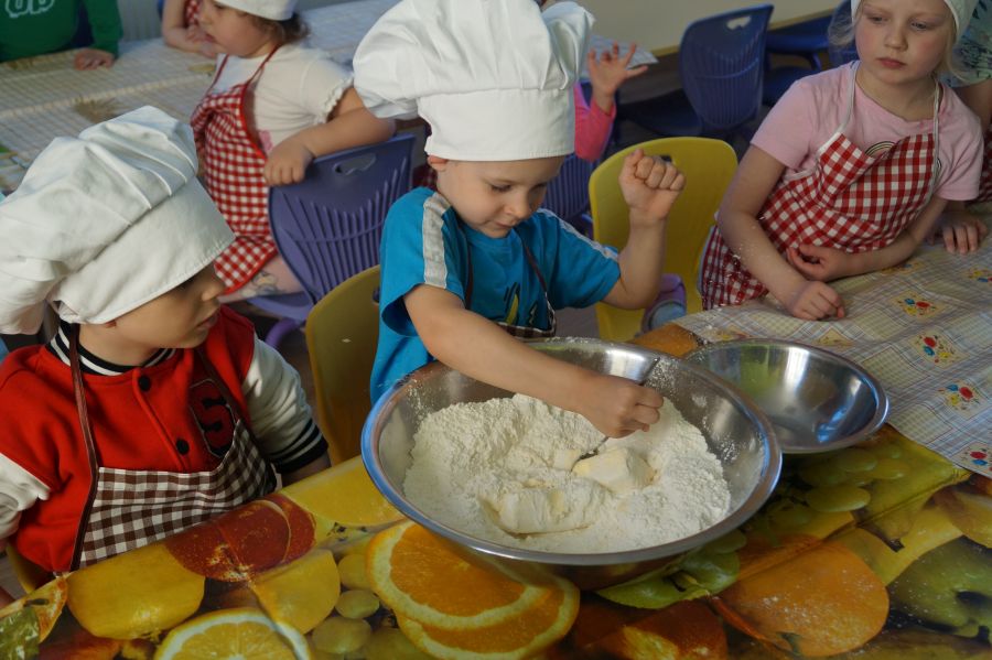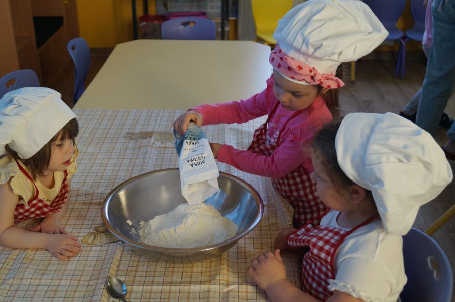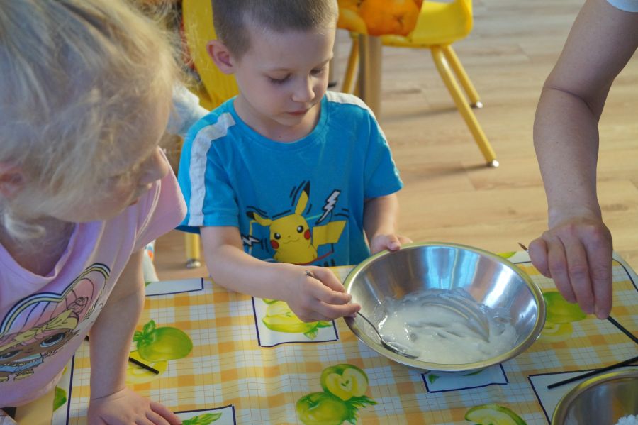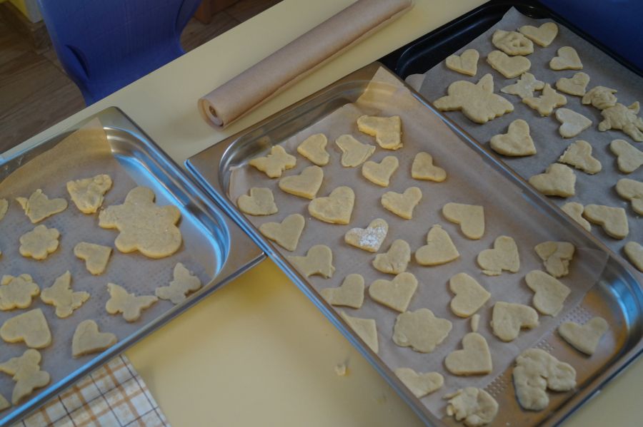 Dzisiaj było u maluszków „Kuchcikowo”. Dzieci wyrabiały ciasto na kruche ciasteczka a po upieczeniu pięknie udekorowały na kolor biało- czerwony. Ciasteczka były pyszne.