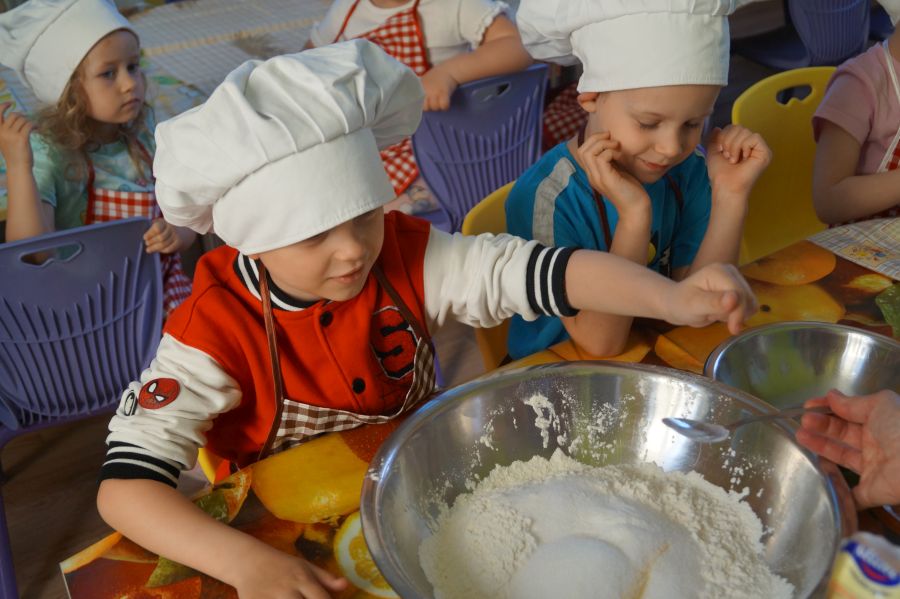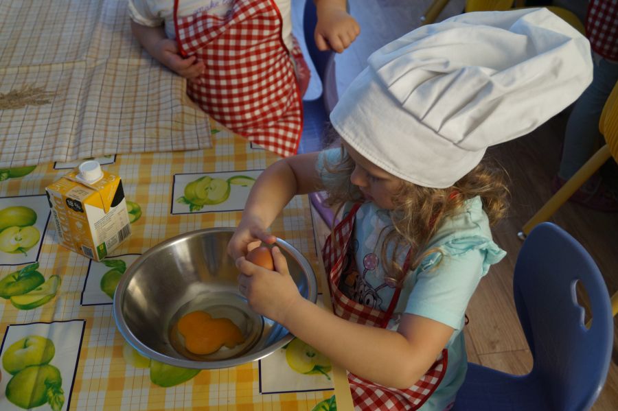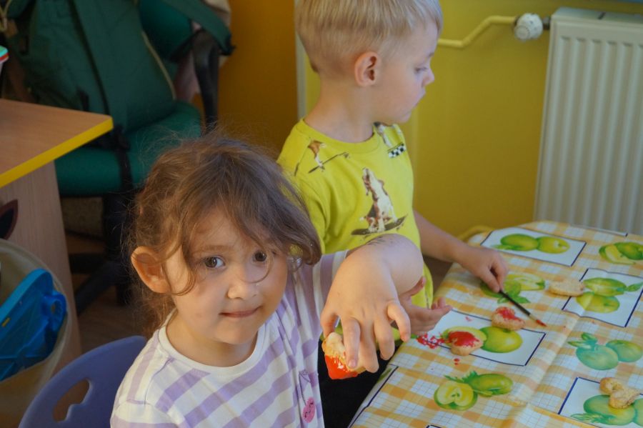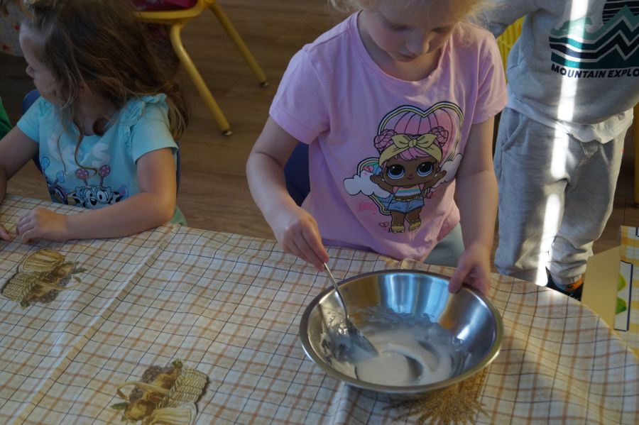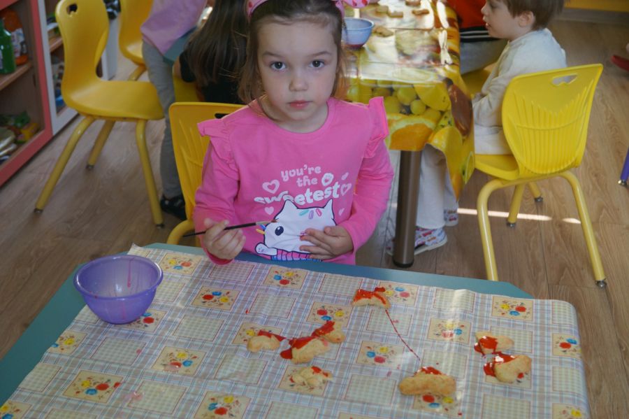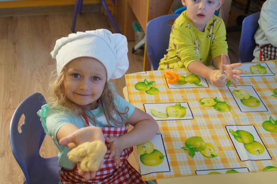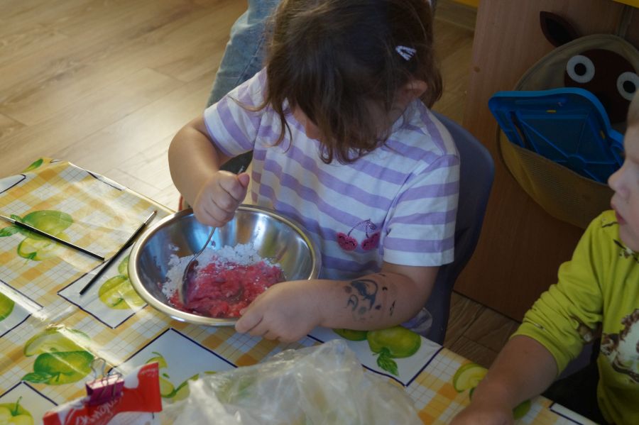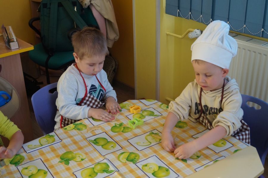 Dzisiaj było u maluszków „Kuchcikowo”. Dzieci wyrabiały ciasto na kruche ciasteczka a po upieczeniu pięknie udekorowały na kolor biało- czerwony. Ciasteczka były pyszne.