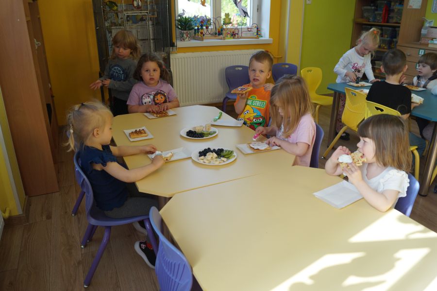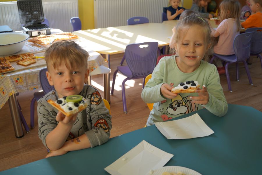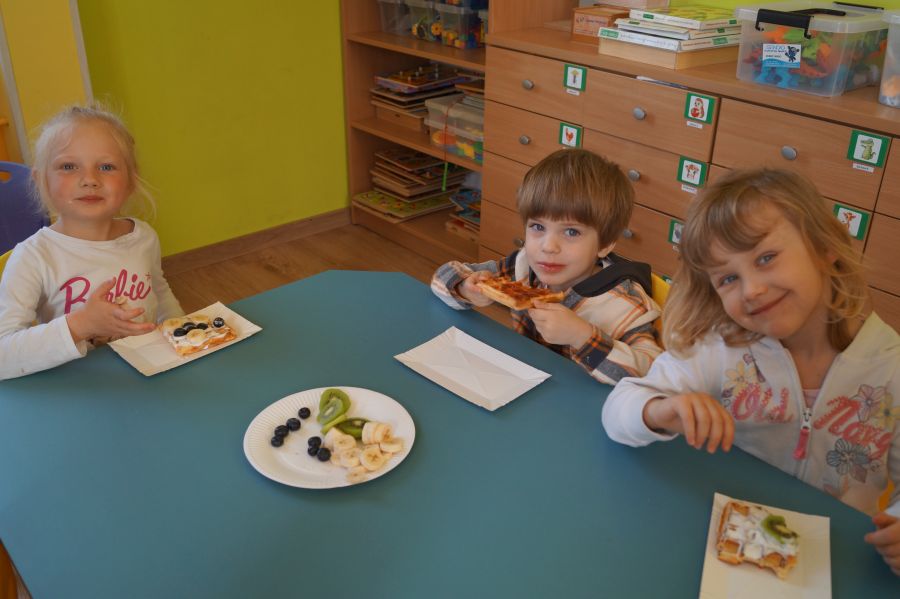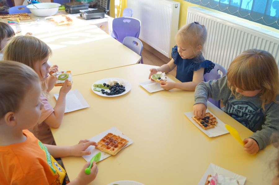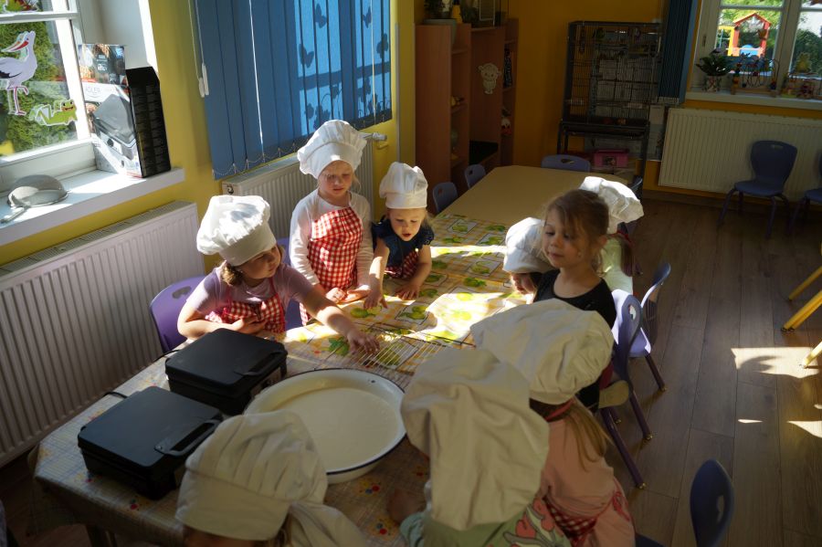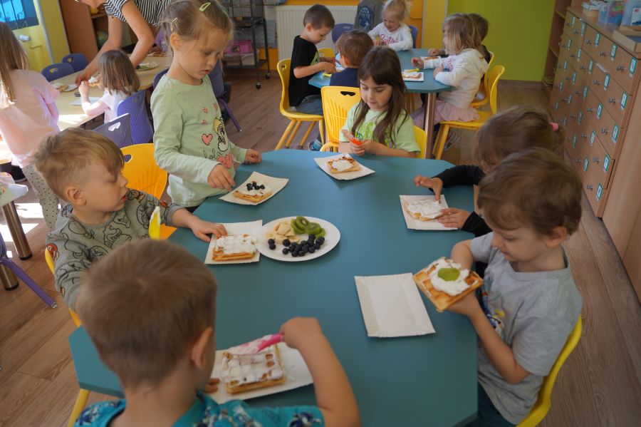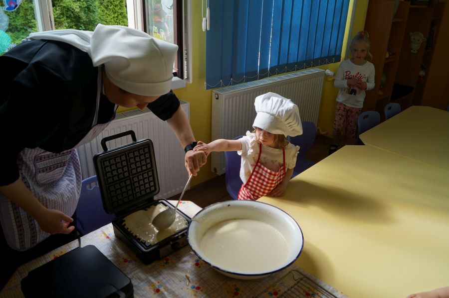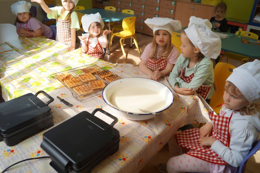Smakowite zapachy unosiły się dzisiaj w przedszkolu, a to za sprawą naszych maluchów, które podczas zajęć z „Kuchcikowa” piekły gofry. Na szczęście zrobiły ich tak dużo, że mogły podzielić się z resztą przedszkolaków;).