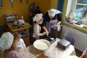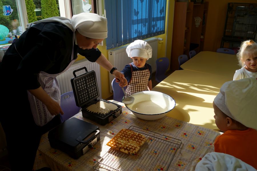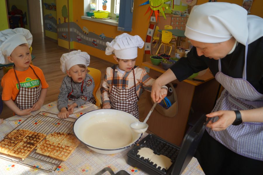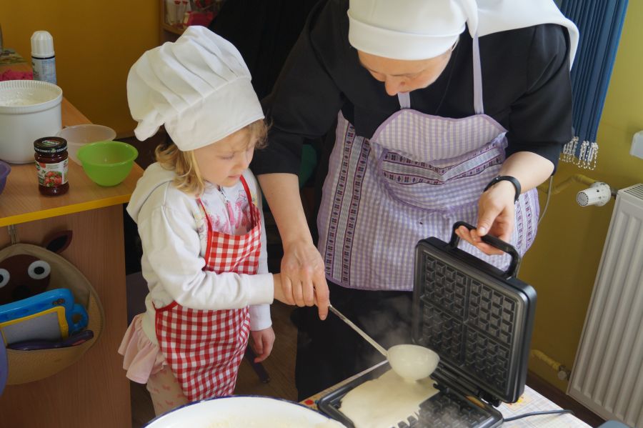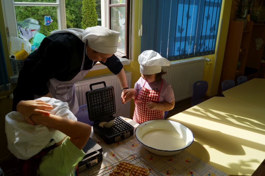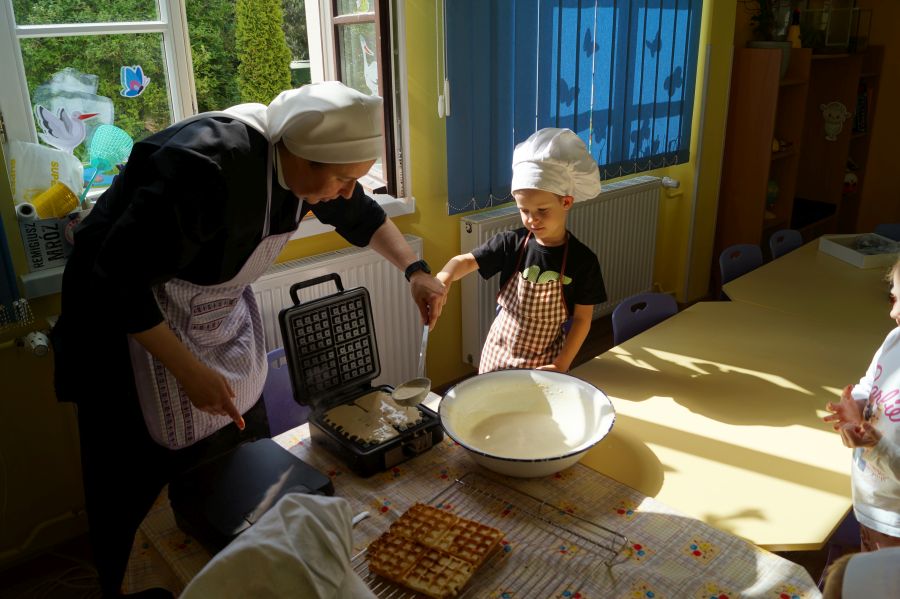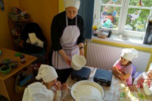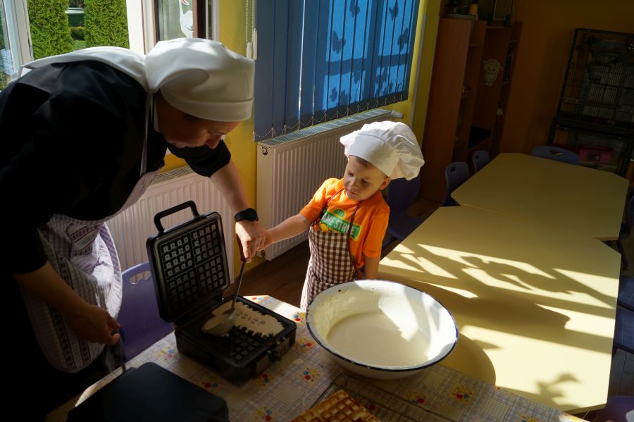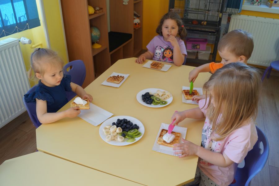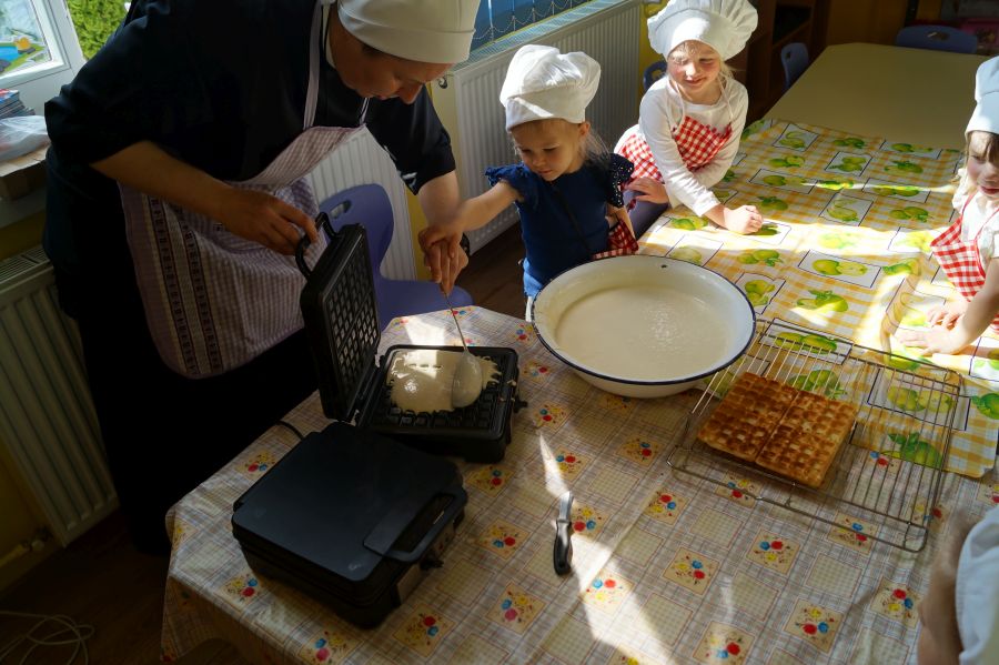 Smakowite zapachy unosiły się dzisiaj w przedszkolu, a to za sprawą naszych maluchów, które podczas zajęć z „Kuchcikowa” piekły gofry. Na szczęście zrobiły ich tak dużo, że mogły podzielić się z resztą przedszkolaków;).