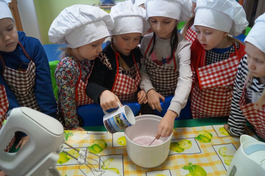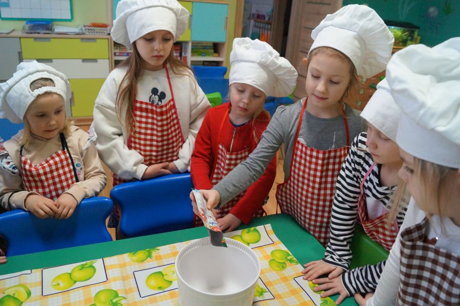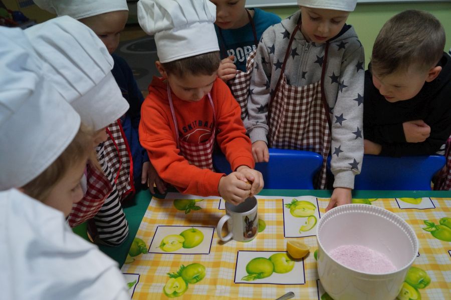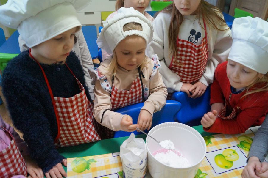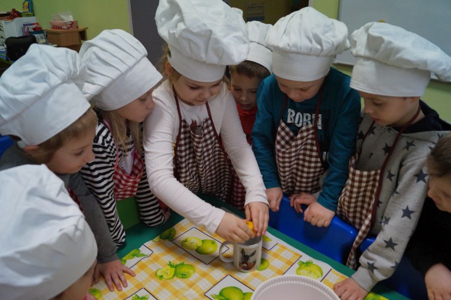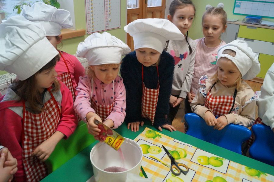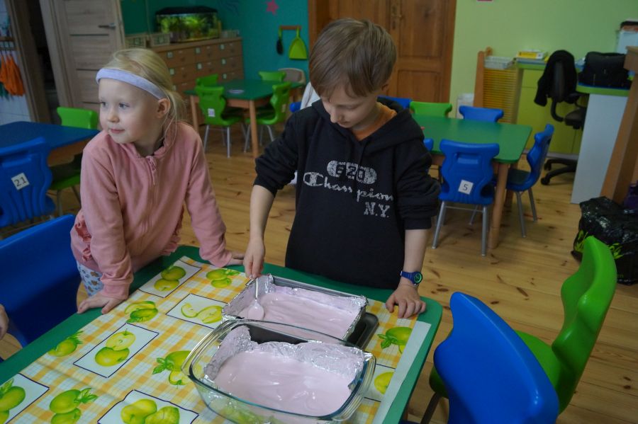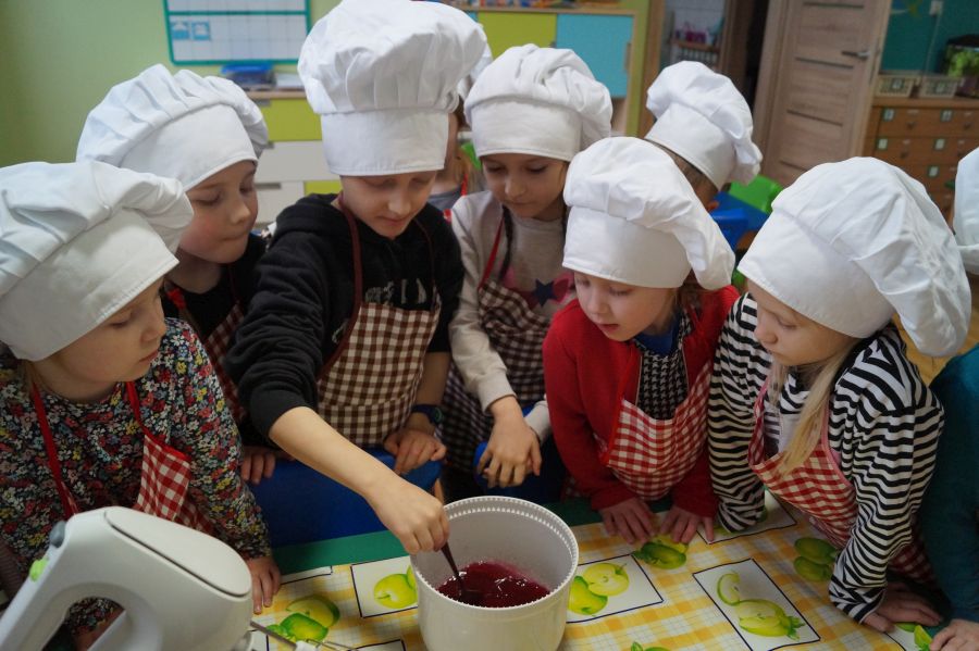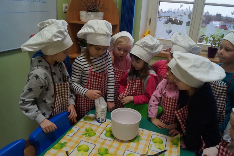 Dzieci starsze prawie samodzielnie przygotowały deser podczas zajęć z Kuchcikowa. Kuchcikowo- u starszaków.