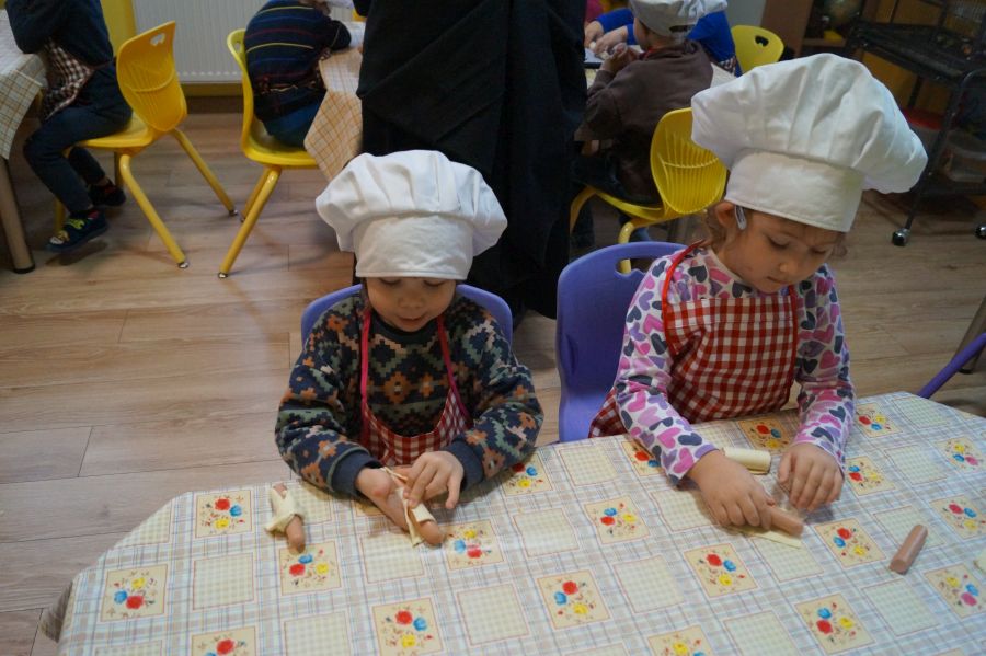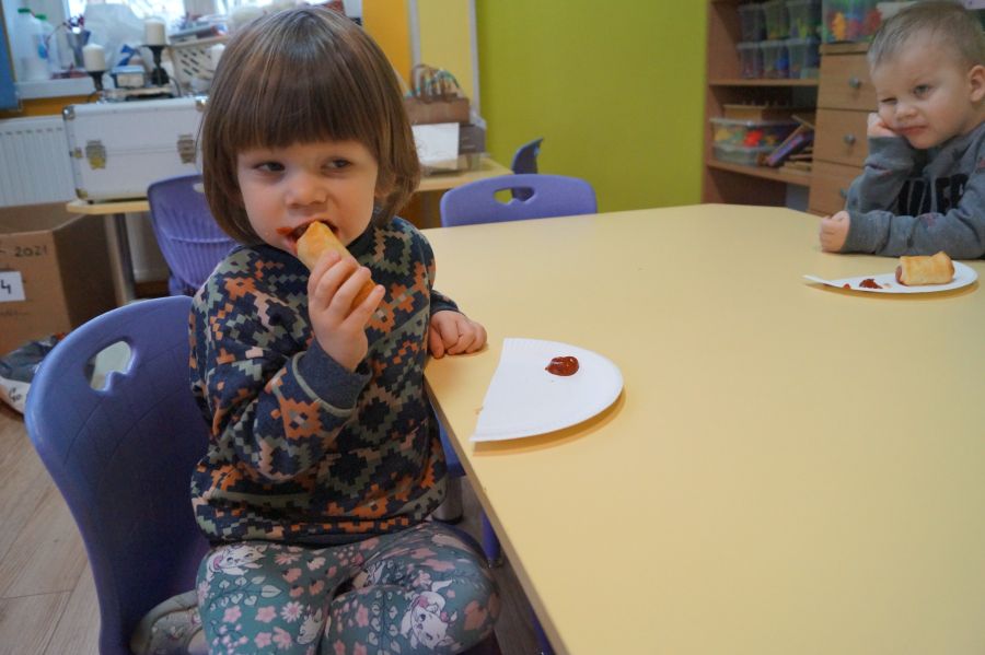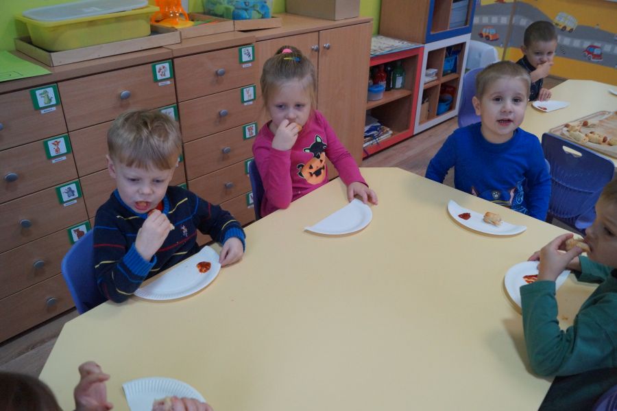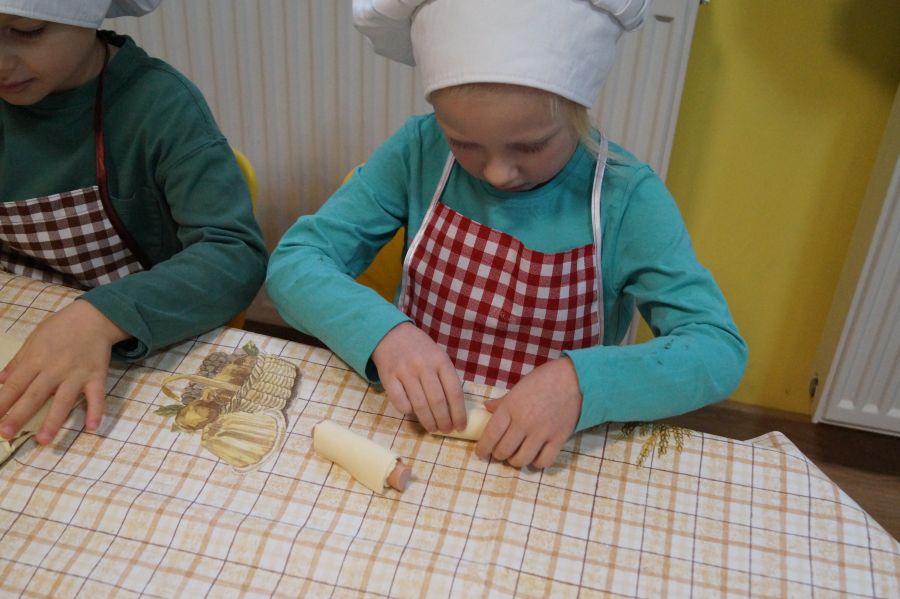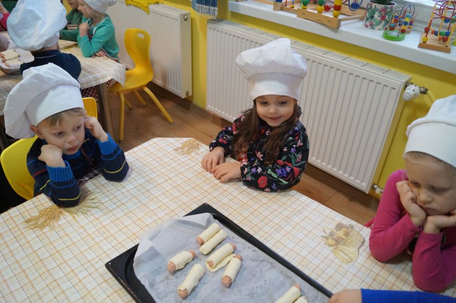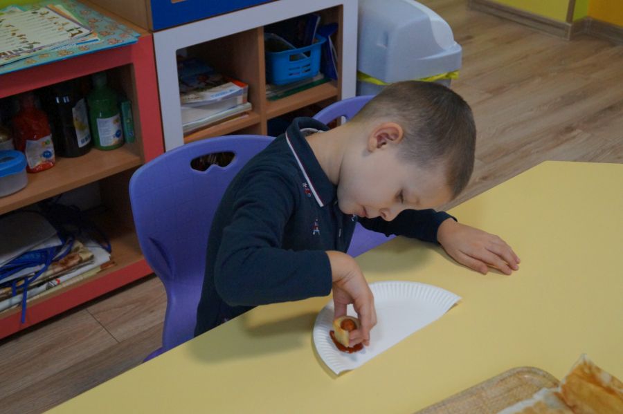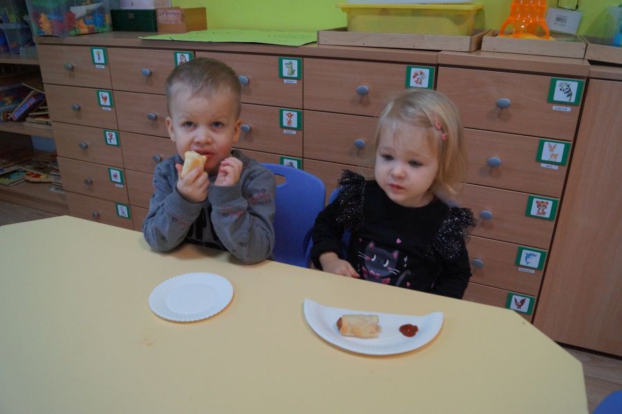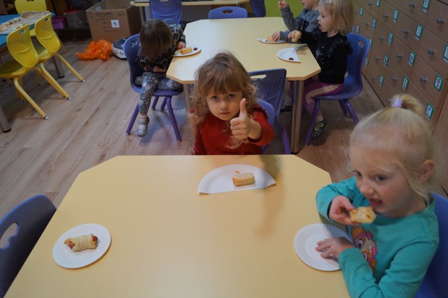 Nasze maluszki naprawdę lubią jeść ;)). Zaraz po pierwszym śniadaniu zabrały się do kucharzenia. Tym razem bardzo sprawnie przygotowały sobie przekąskę w postaci mini hot- dogów.