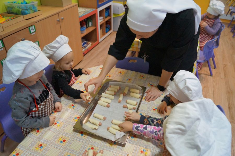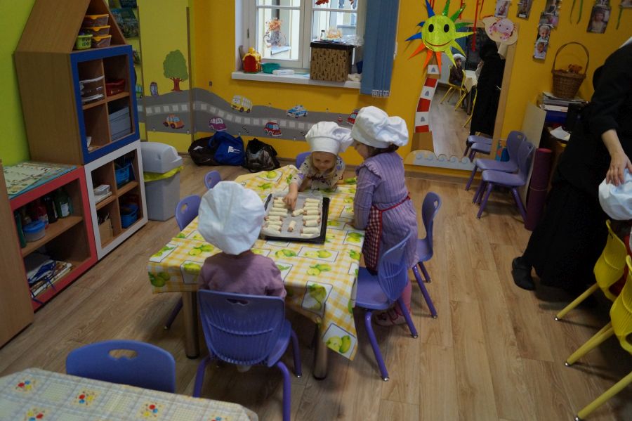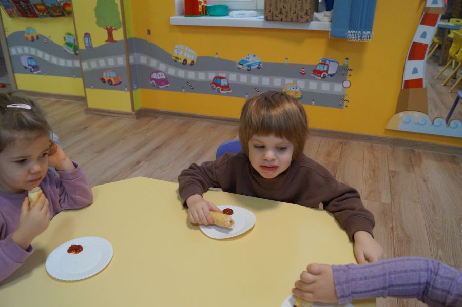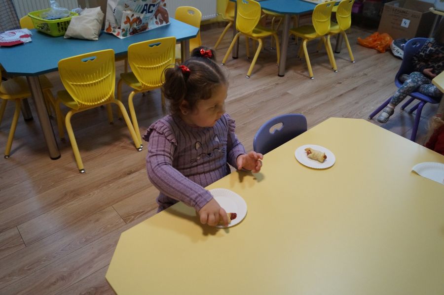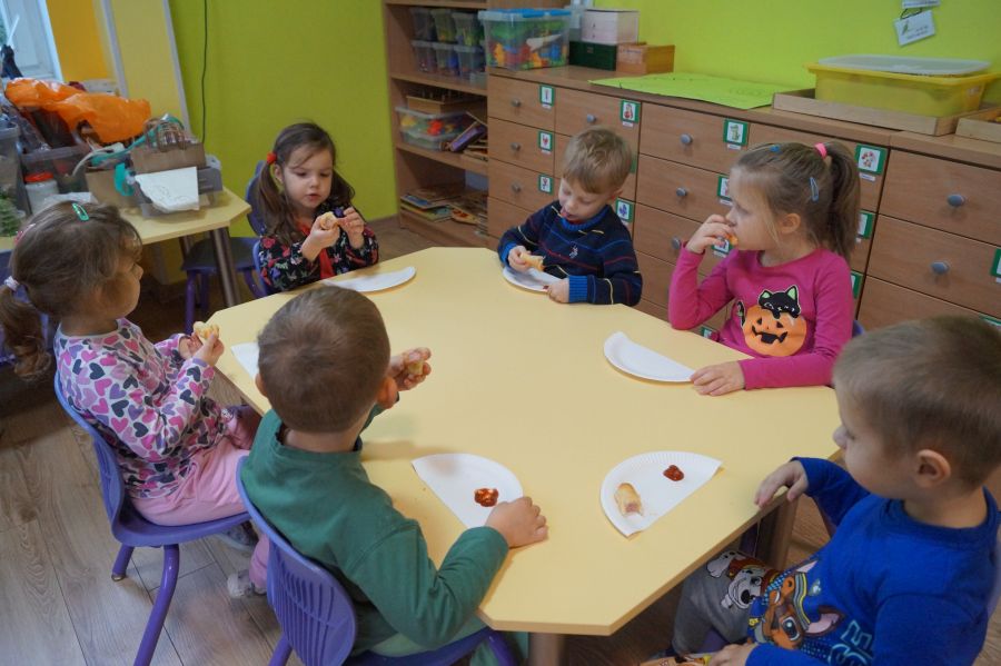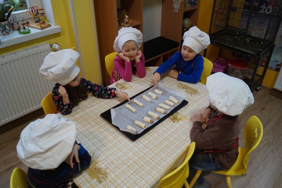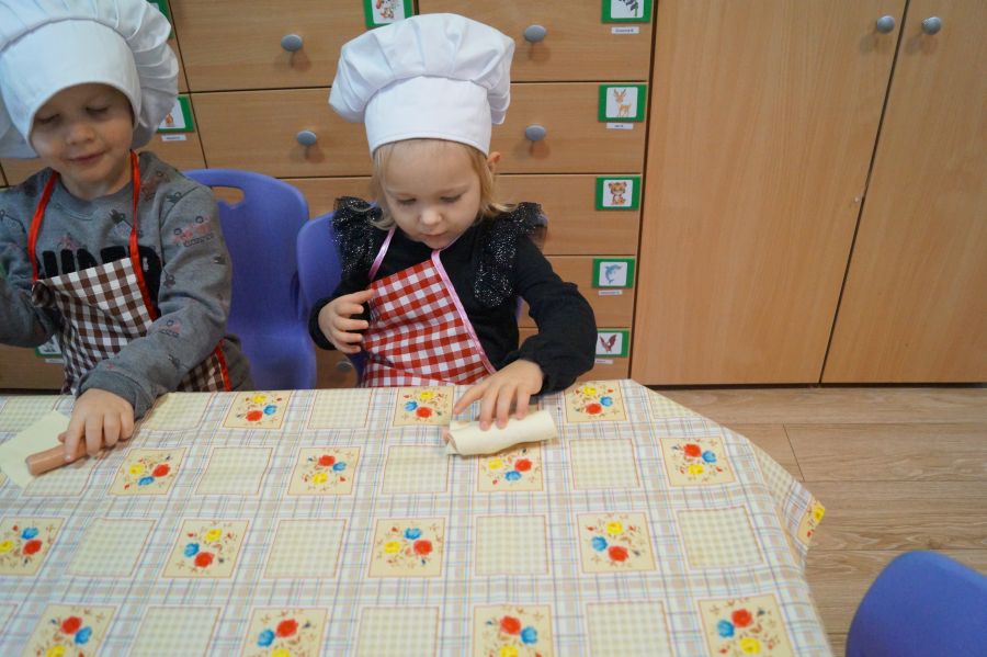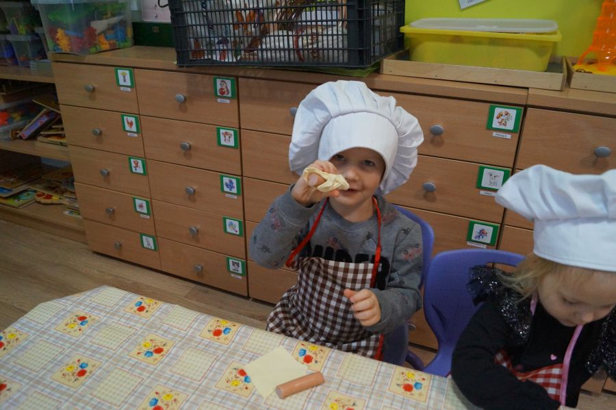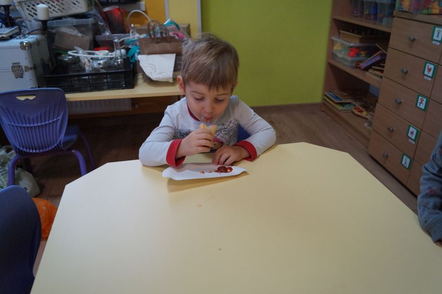 Nasze maluszki naprawdę lubią jeść ;)). Zaraz po pierwszym śniadaniu zabrały się do kucharzenia. Tym razem bardzo sprawnie przygotowały sobie przekąskę w postaci mini hot- dogów.