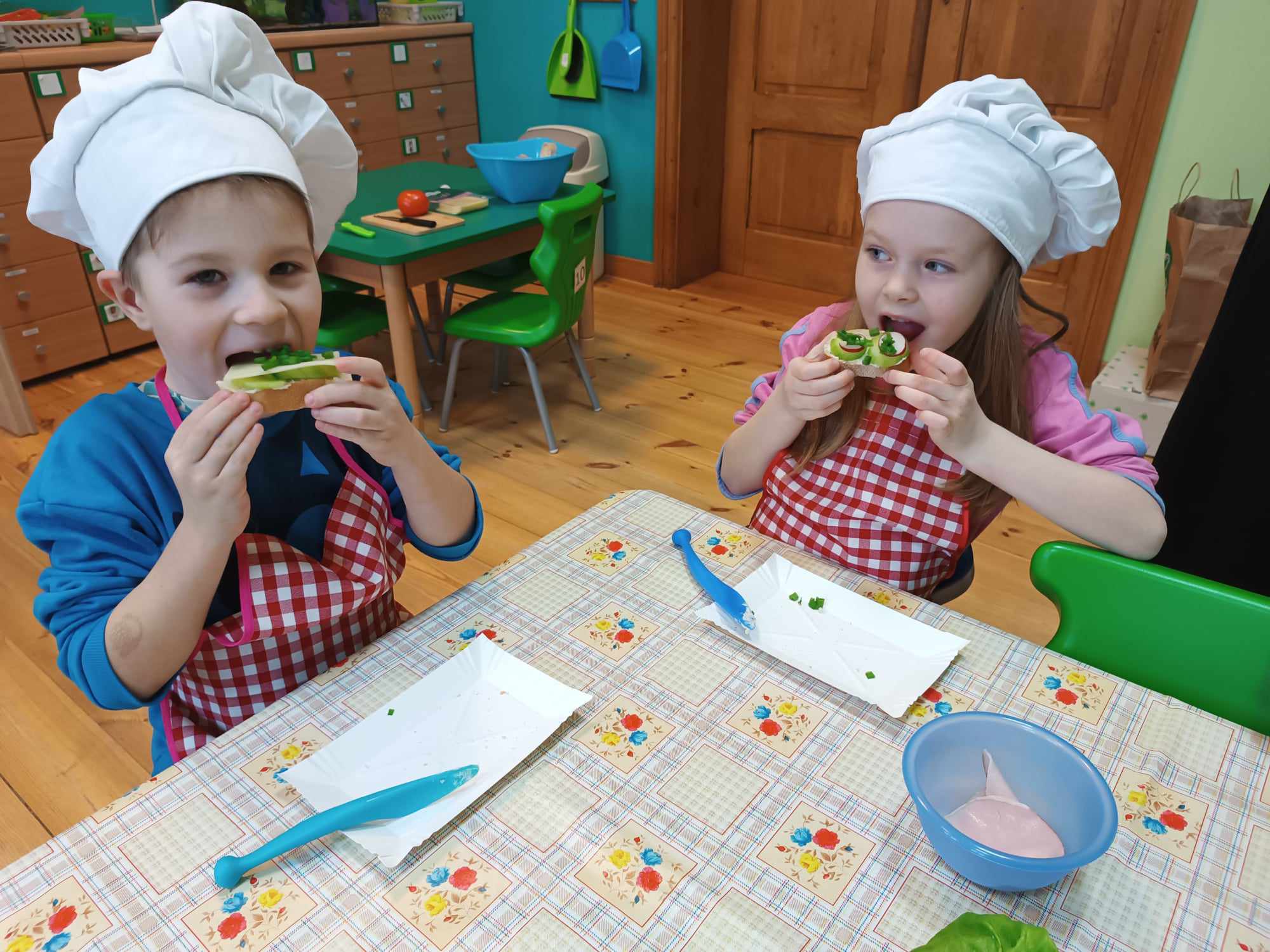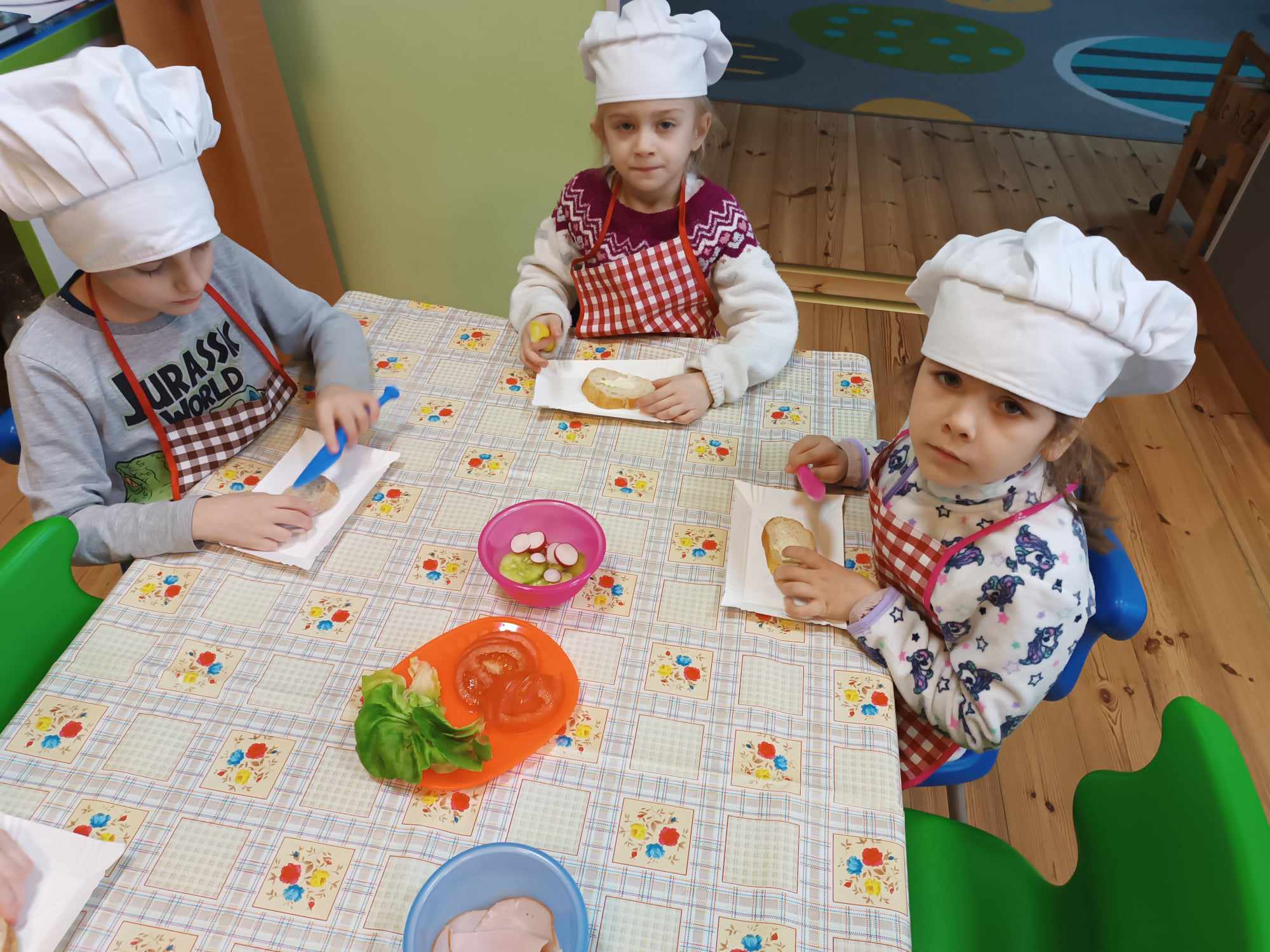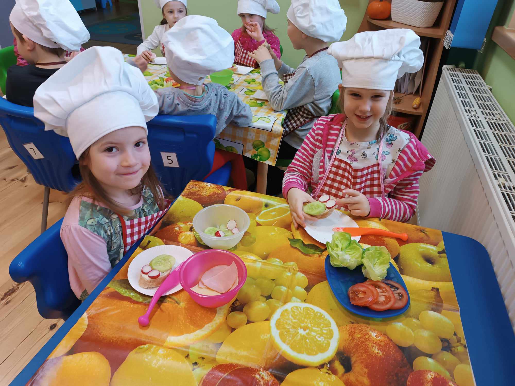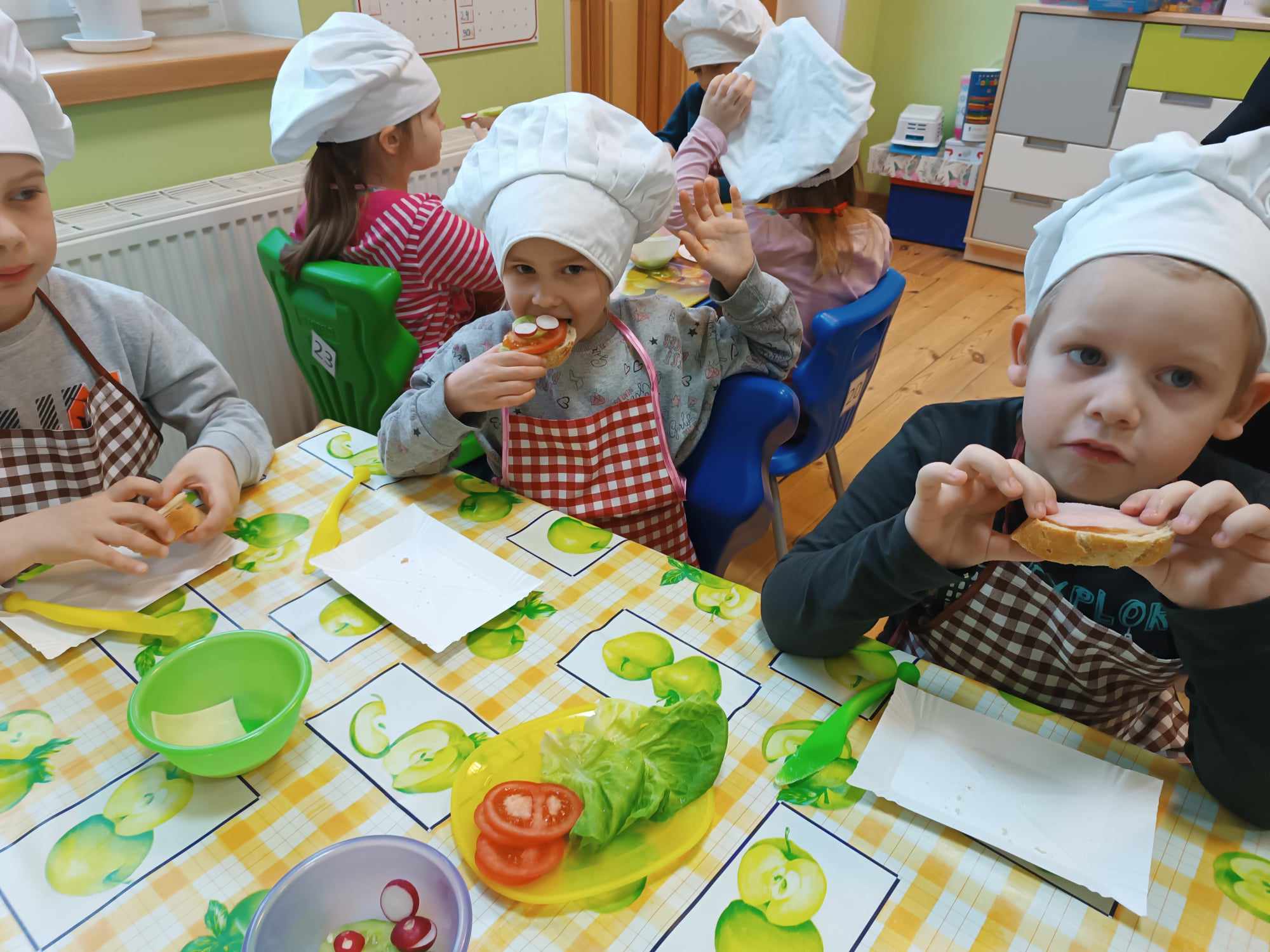 Starszacy poczuli wiosnę i przygotowali smaczne, zdrowe, kolorowe kanapki. „Kuchcikowo” w grupie starszej.