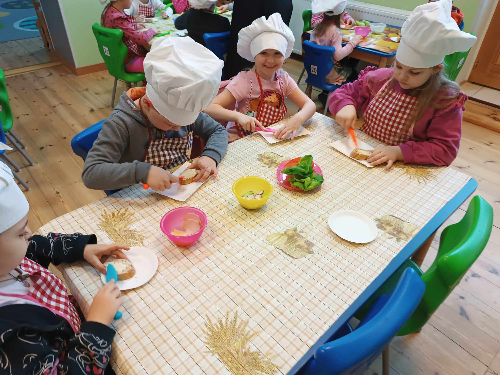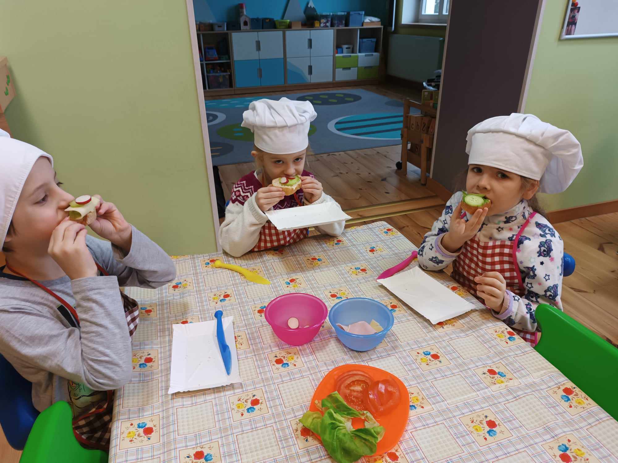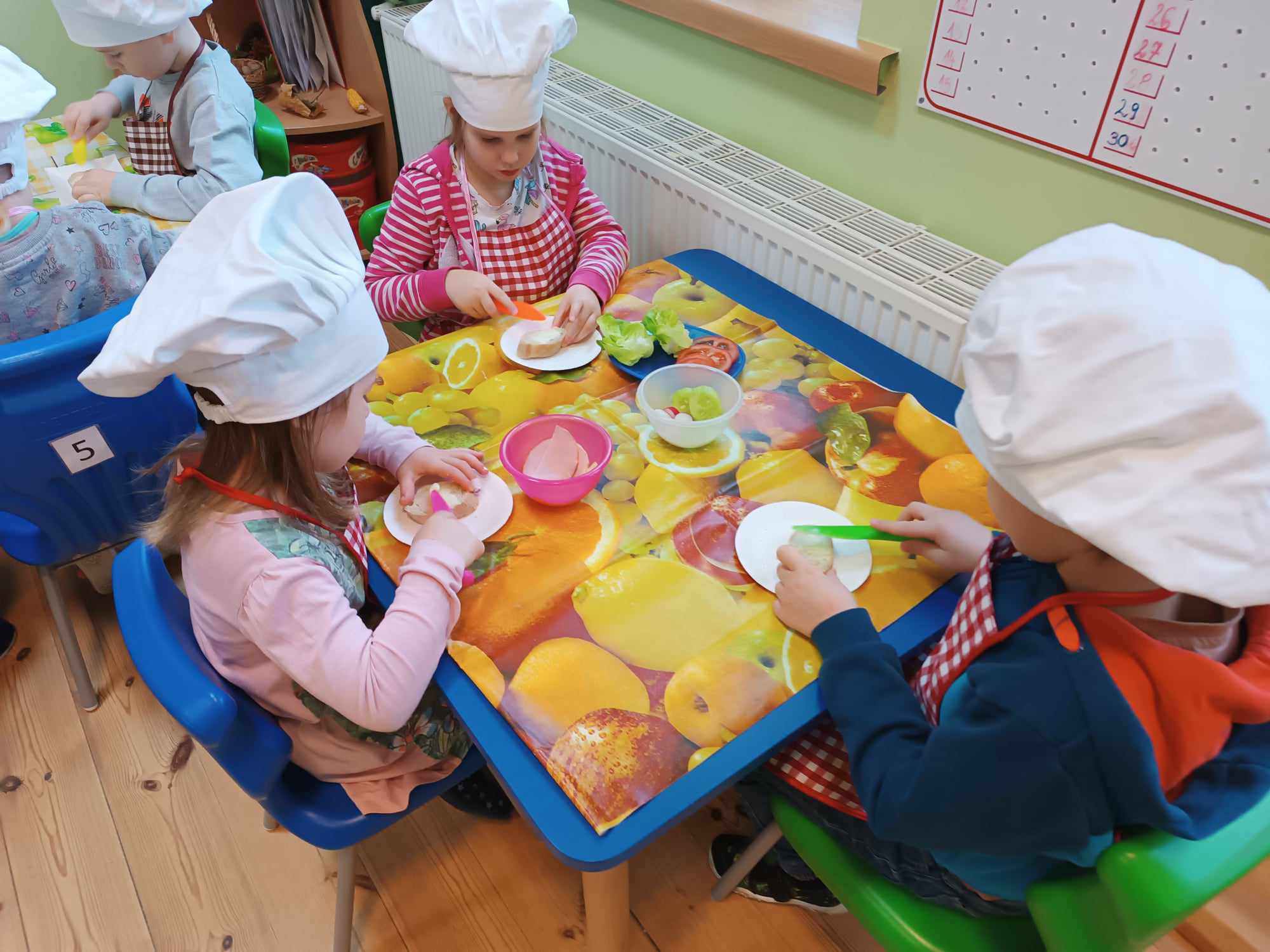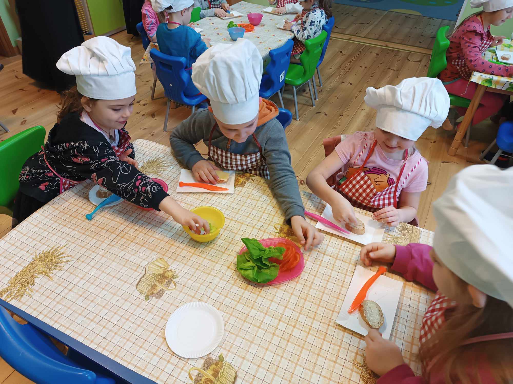 Starszacy poczuli wiosnę i przygotowali smaczne, zdrowe, kolorowe kanapki. „Kuchcikowo” w grupie starszej.