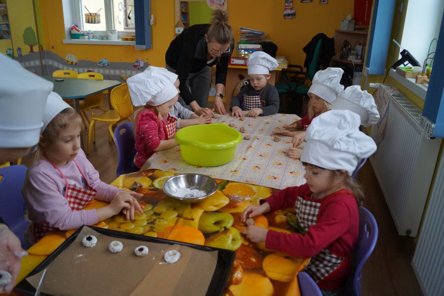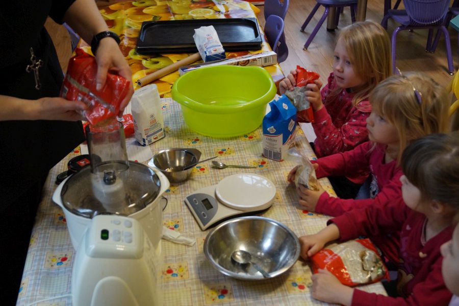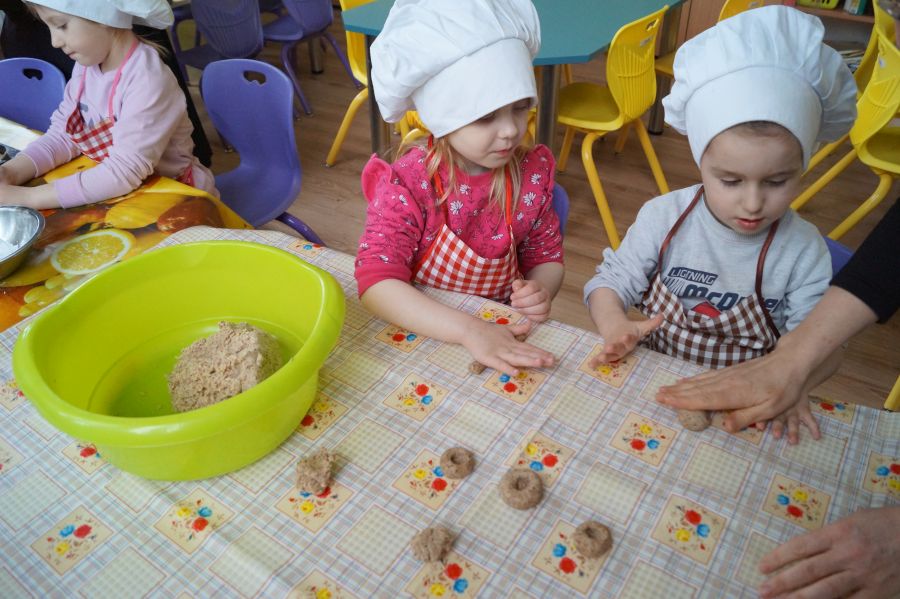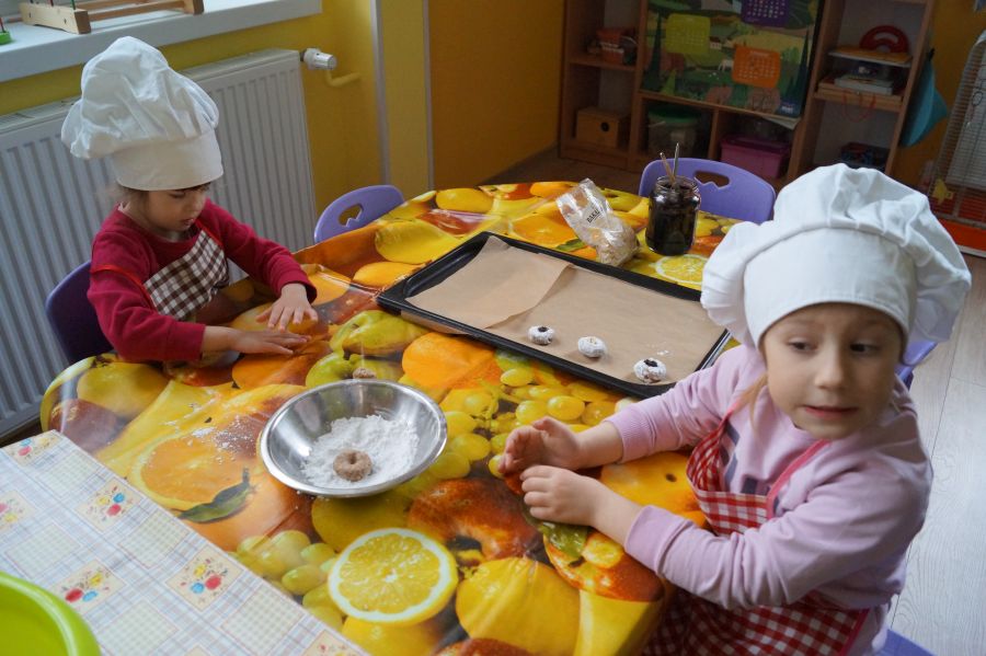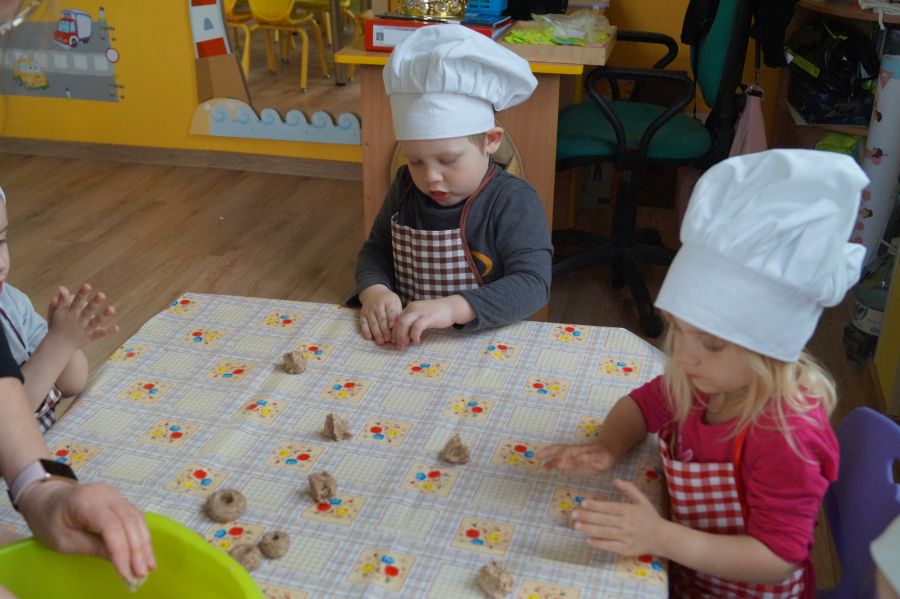 Co dzieci lubią najbardziej?- słodkości. Tak więc na naszych zajęciach kulinarnych znowu pojawiły się ciasteczka. Tym razem zrobiliśmy włoskie, migdałowe ciasteczka z nadzieniem. Dzieci poznały sposób funkcjonowania malaksera, przepis na ciastka bez mąki- a ze zmielonymi migdałami. Ćwiczyły małą motorykę i poznały nowe smaki.
