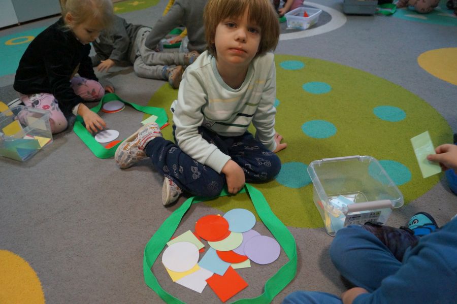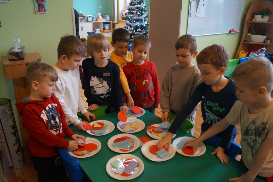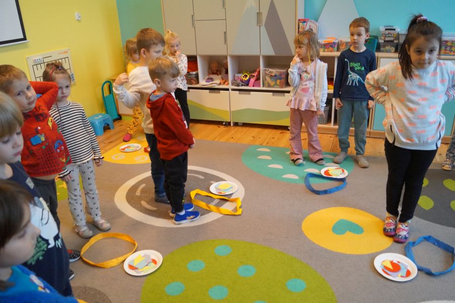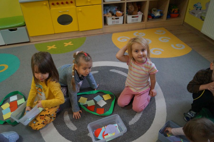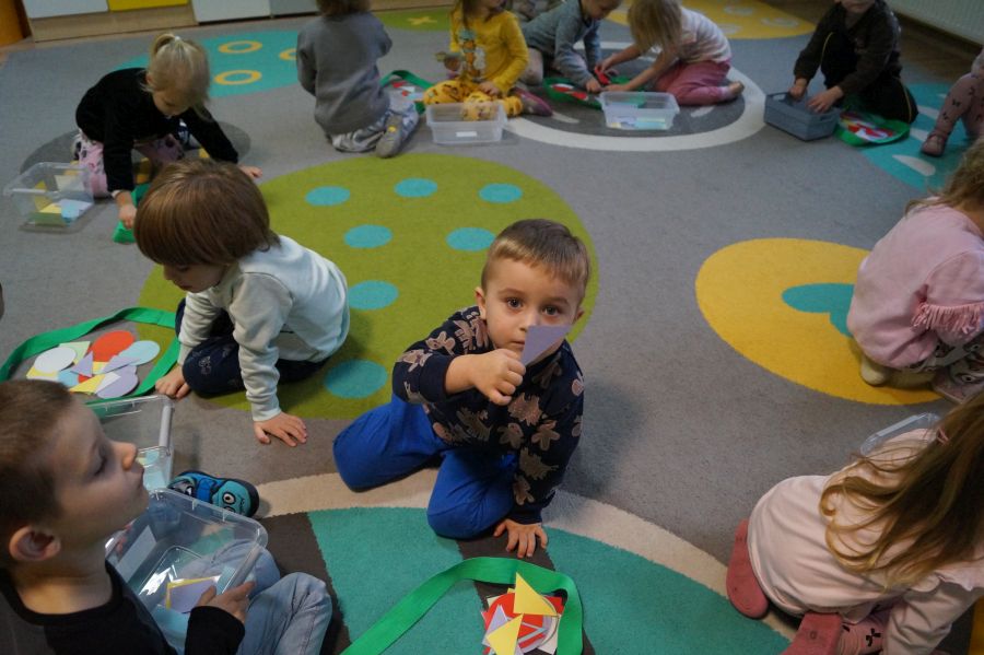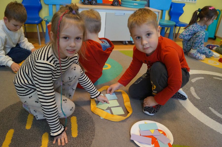 Dzisiaj odbyły się kolejne zajęcia matematyczne, podczas których obie grupy przedszkolne utrwalały wiedzę na temat figur geometrycznych. Wykonywane przez dzieci zadania dawały im dużo radości i satysfakcji oraz skutecznie wspierały rozwój ich spostrzegawczości i logicznego myślenia.
