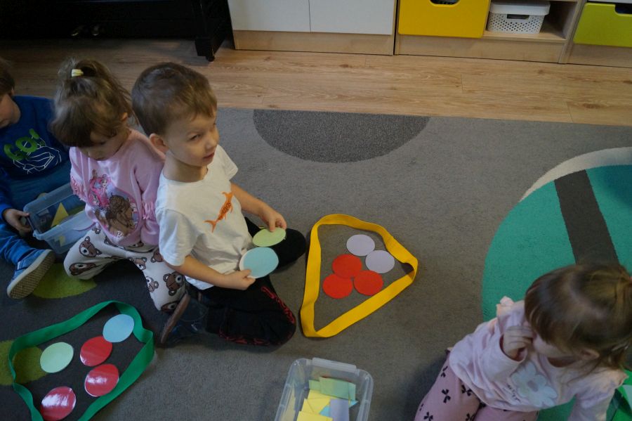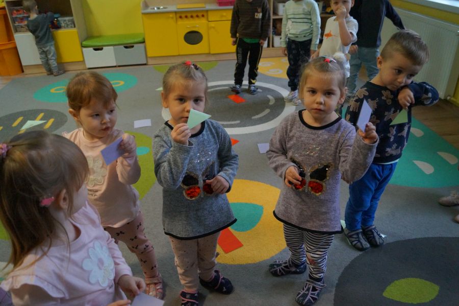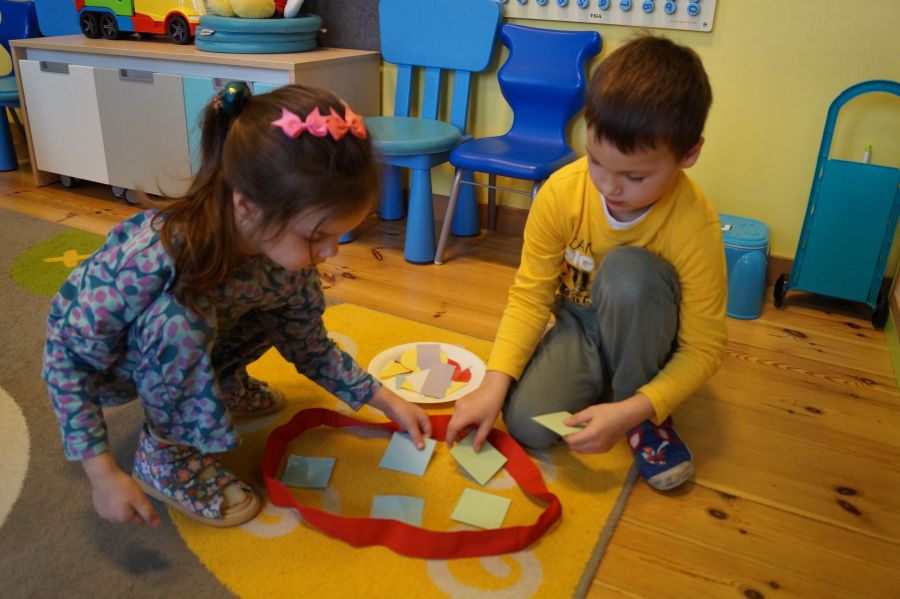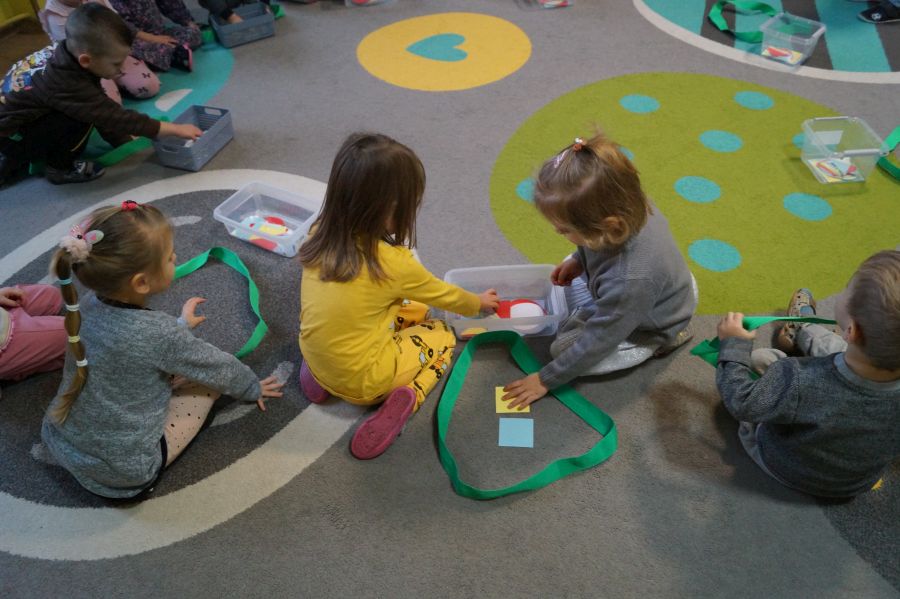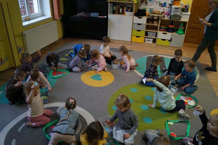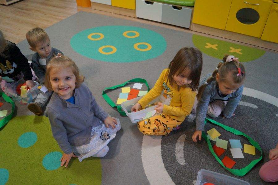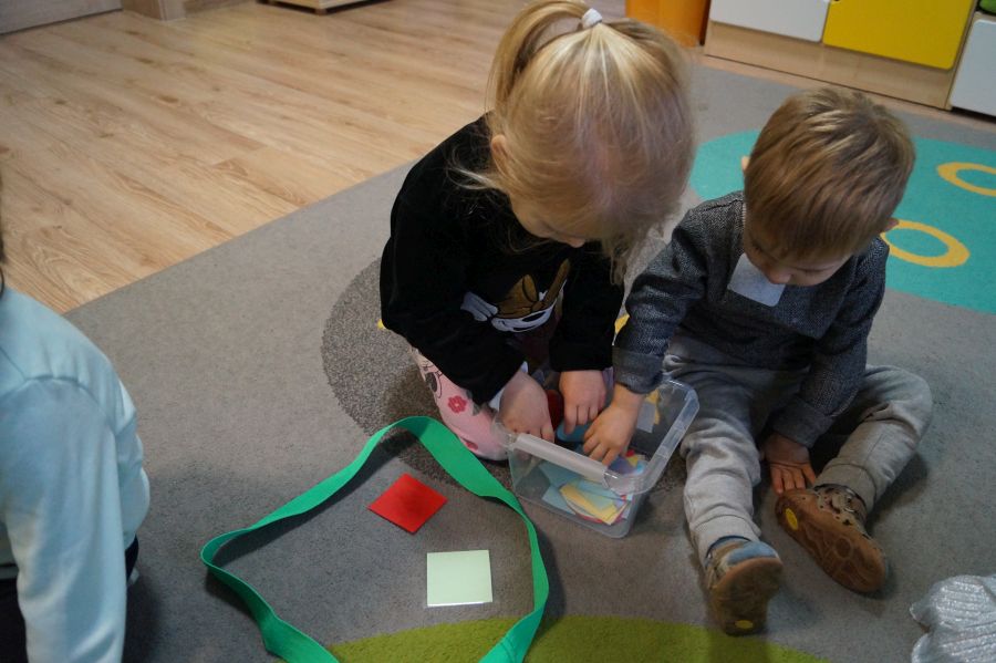 Dzisiaj odbyły się kolejne zajęcia matematyczne, podczas których obie grupy przedszkolne utrwalały wiedzę na temat figur geometrycznych. Wykonywane przez dzieci zadania dawały im dużo radości i satysfakcji oraz skutecznie wspierały rozwój ich spostrzegawczości i logicznego myślenia.