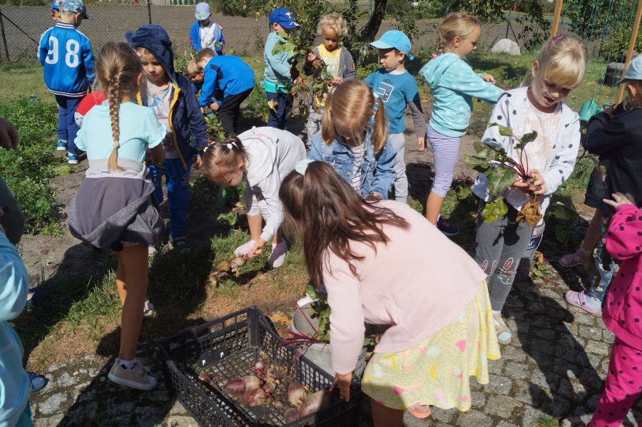 W  roku  szkolnym 2019/ 2020 w naszym przedszkolu realizowany jest   projekt  ,,Warzywny ogródek przedszkolny”. Zajęcia prowadzone są w grupie starszej według ustalonego harmonogramu. Rozpoczęliśmy je od  wybór tematu, po którym nastąpiła „Burza mózgów”- stworzenie siatki wiedzy oraz siatki pytań, na które dzieci chciałyby uzyskać odpowiedź podczas trwania całego przedsięwzięcia. Pierwsze czynności to zbiory warzyw z zeszłego roku. W tym tygodniu przeżyjemy także warsztat „warzywne soki”oraz będzie siać poplon, aby w naturalny sposób użyźnić ziemię na kolejne uprawy. Kolejny etap działań w naszym projekcie zaplanowany jest na miesiące marzec i maj.