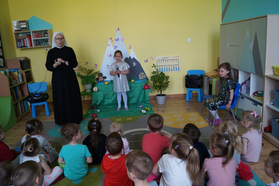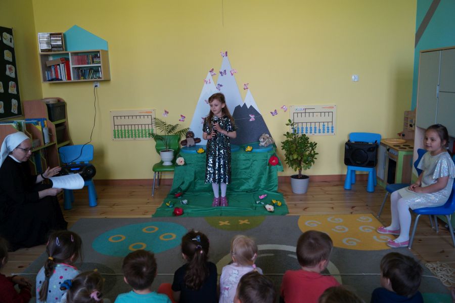 Marysia oraz Dorotka z grupy starszej przygotowywały się do konkursu wokalnego, organizowanego przez sąsiadujące przedszkole. Niestety, z powodu małej ilości chętnych, konkurs się nie odbył. Dziewczynki wystąpiły zatem przed dziećmi i nauczycielami naszej placówki. Gratulujemy im odwagi i życzymy dalszego rozwijania talentów.
