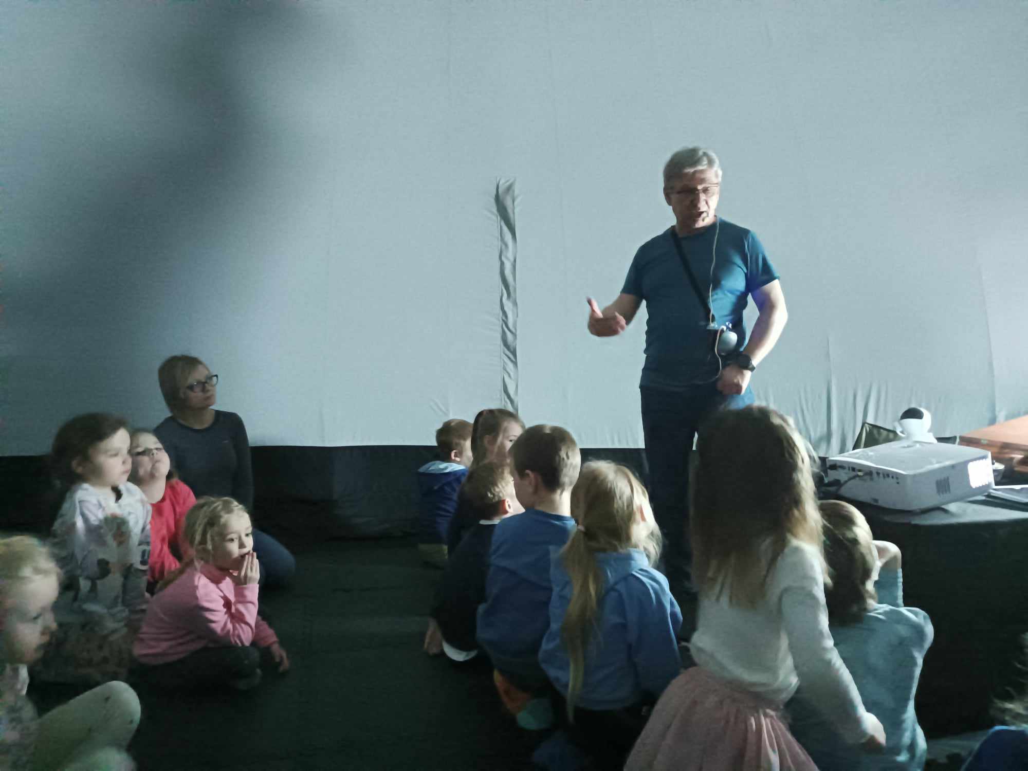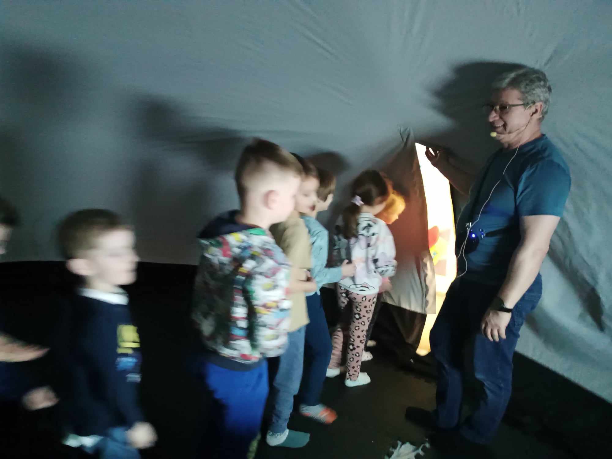 Dzisiaj w Przedszkolu Dobrego Pasterza gościło mobilne planetarium. Repertuar był bardzo ciekawy, o pouczającej treści. A co najważniejsze bardzo podobało się dzieciom i prosiły pana o kolejny seans. Grupa starsza odbyła wirtualną wycieczkę po ciele człowieka. Dzieci poznały tajniki ludzkiego organizmu oraz zasady zdrowego stylu życia.