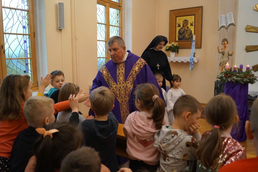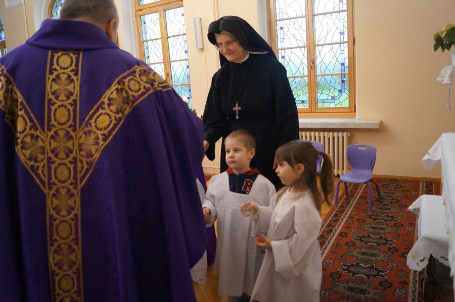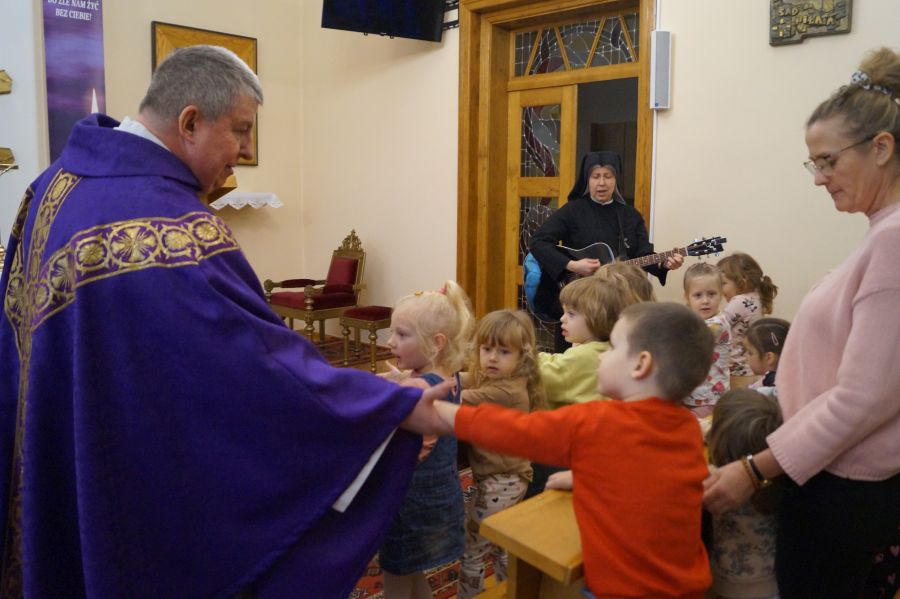 W tym miesiącu ma wspólnej mszy świętej modliliśmy się szczególnie za panią Sylwię- wychowawczynię grupy młodszej. Dziękujemy za obecność wszystkim zgromadzonym.