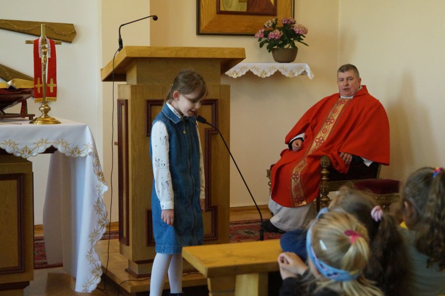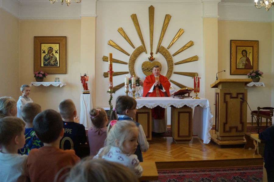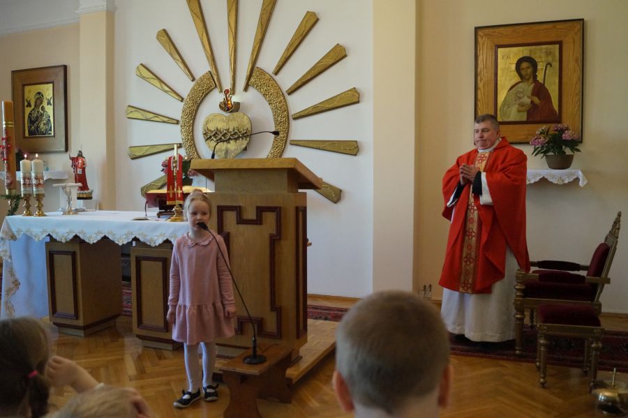 Tradycyjnie w drugi poniedziałek miesiąca modliliśmy się wspólnie na mszy świętej odprawianej przez o. Adama. Tym razem dzieci włączyły się także w śpiew psalmu i aklamacji przed Ewangelią oraz posługę ministrancką. Dziękujemy rodzicom Nadii i Marysi za pomoc w przygotowaniu dzieci.