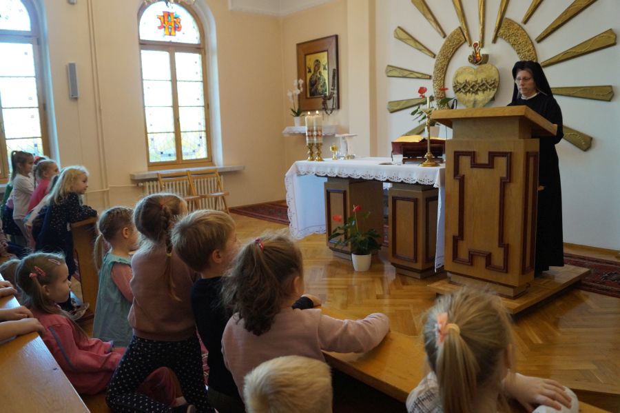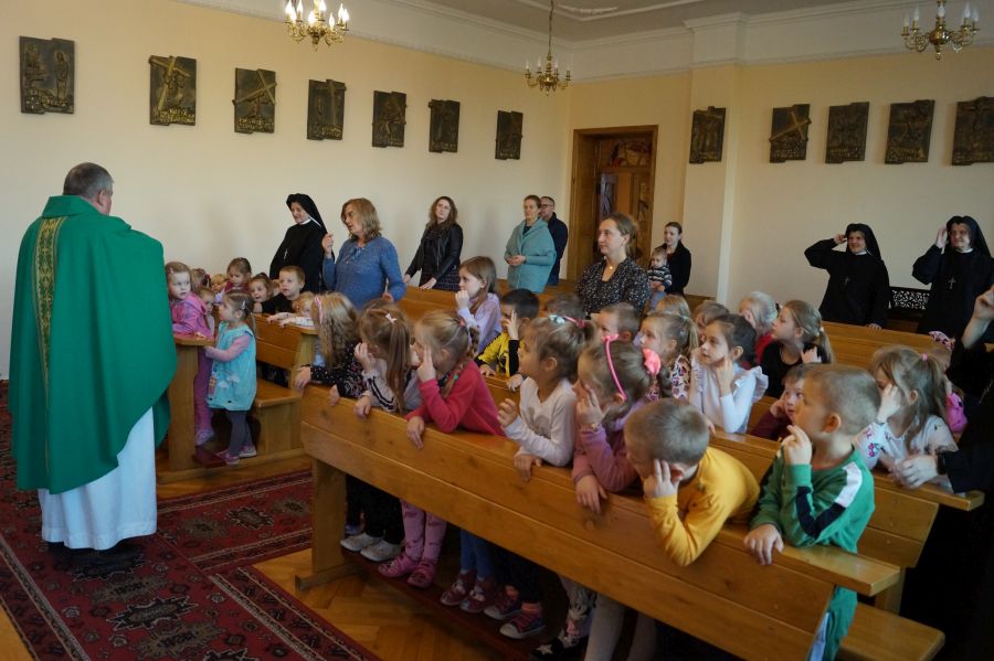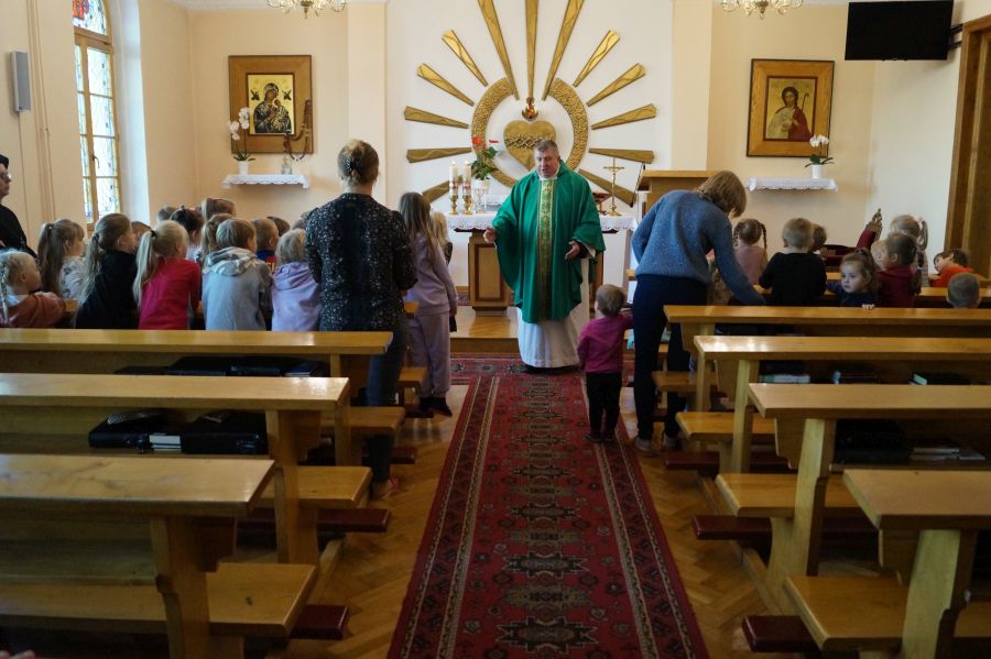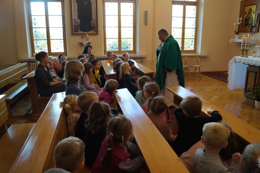 Po raz pierwszy w tym roku szkolnym dzieci przeżyły wspólną mszę świętą. Sprawował ją o. Adam Wedmann ze Zgromadzenia Ducha Świętego. Dzieci usłyszały o bardzo ciekawych postaciach biblijnych- Abrahamie, Jonaszu i Salomonie. Pięknie śpiewały, modliły się tak, jak umiały 😉 Bardzo nam miło, że kilkorgu rodzicom również udało się przyjść i pomodlić razem z nami.