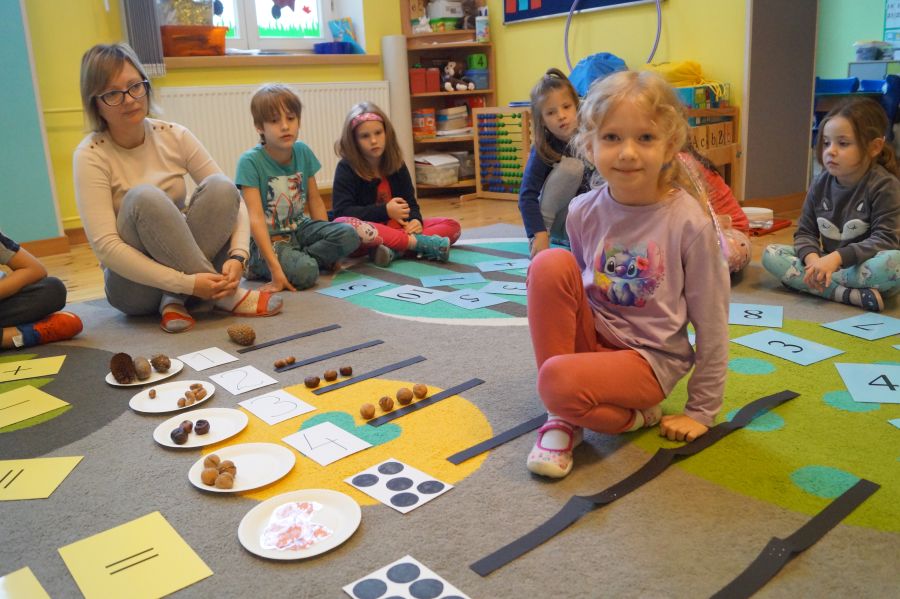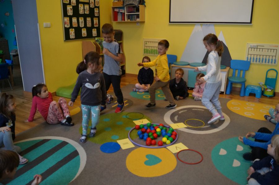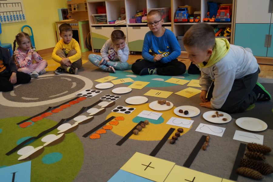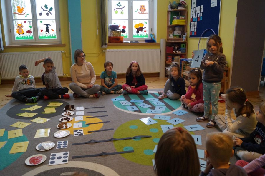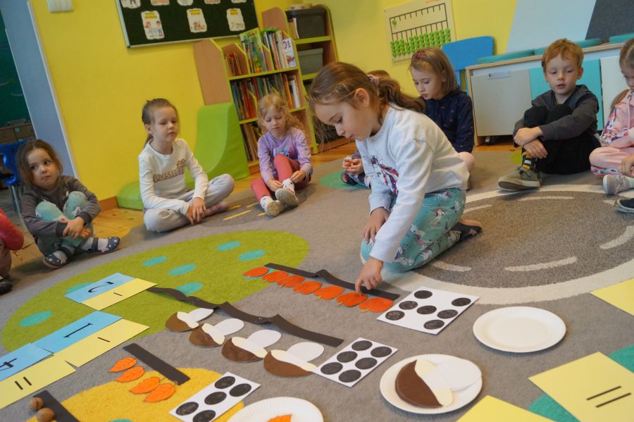 Grupa starsza utrwalała na dzisiejszych zajęciach znajomość liczby 4.