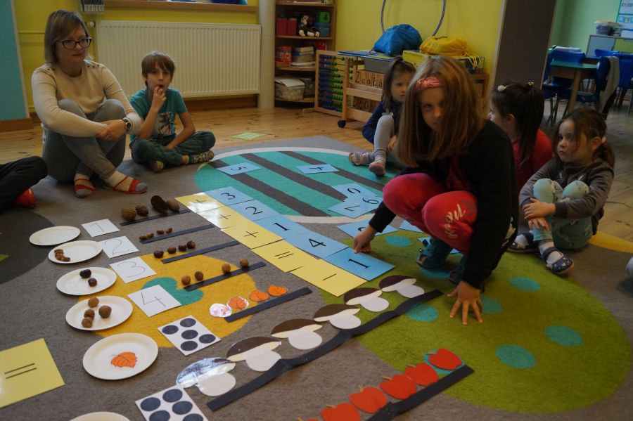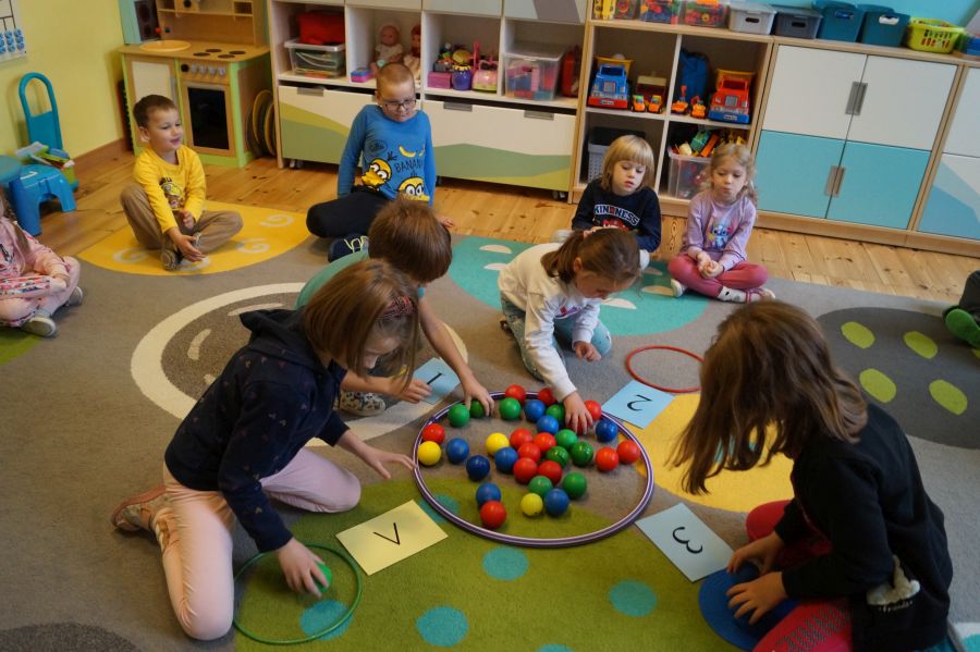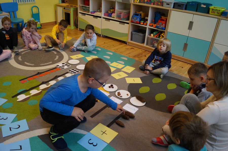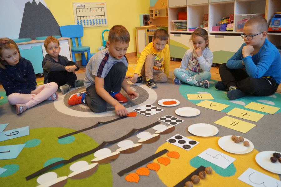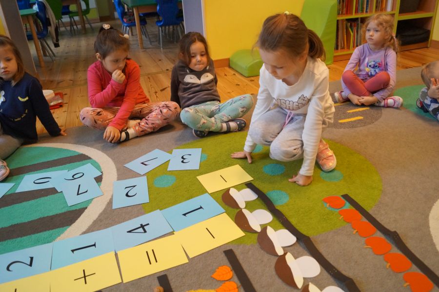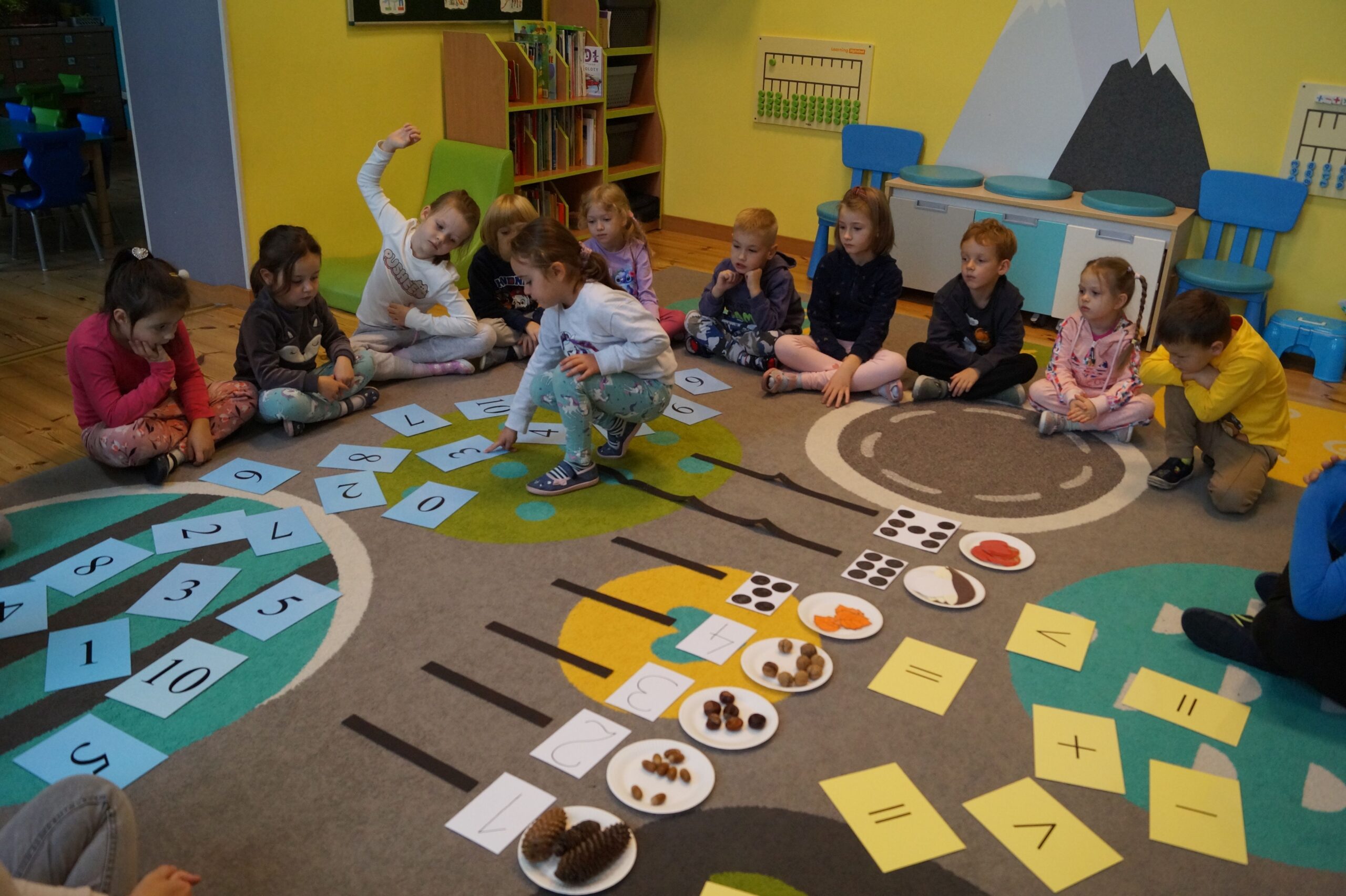 Grupa starsza utrwalała na dzisiejszych zajęciach znajomość liczby 4.