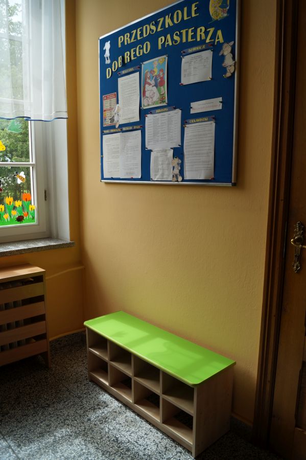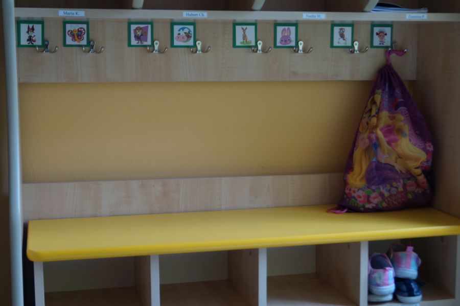 Obok gazetki z jadłospisem pojawiła się też ławeczka dla rodziców 🙂 np. oczekujących na rozmowę indywidualną czy też ubierające się dziecko.