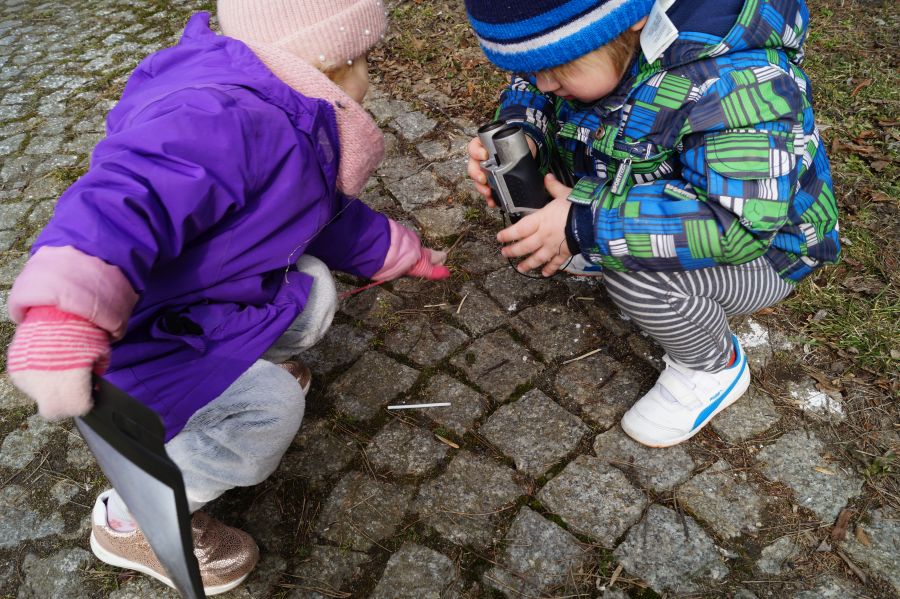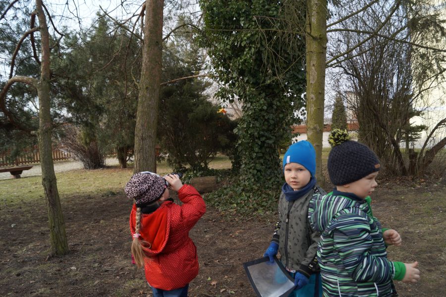 Dzieci i lupy/ lornetki to świetny duet. Maluchy wyruszyły do ogrodu i ……. sami zobaczcie. Obserwacje przyrodnicze w ogrodzie.