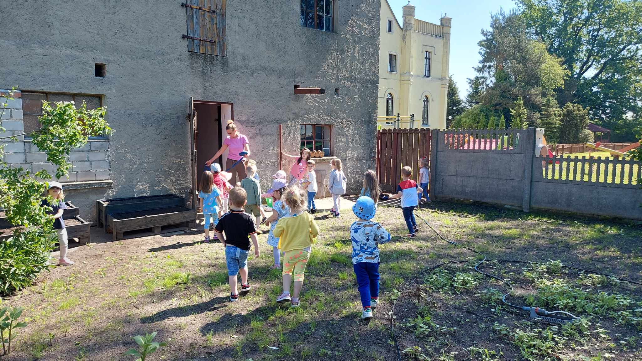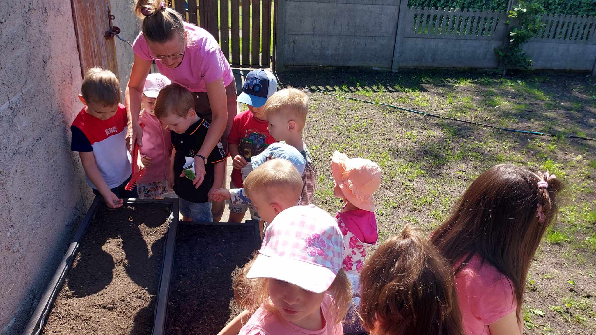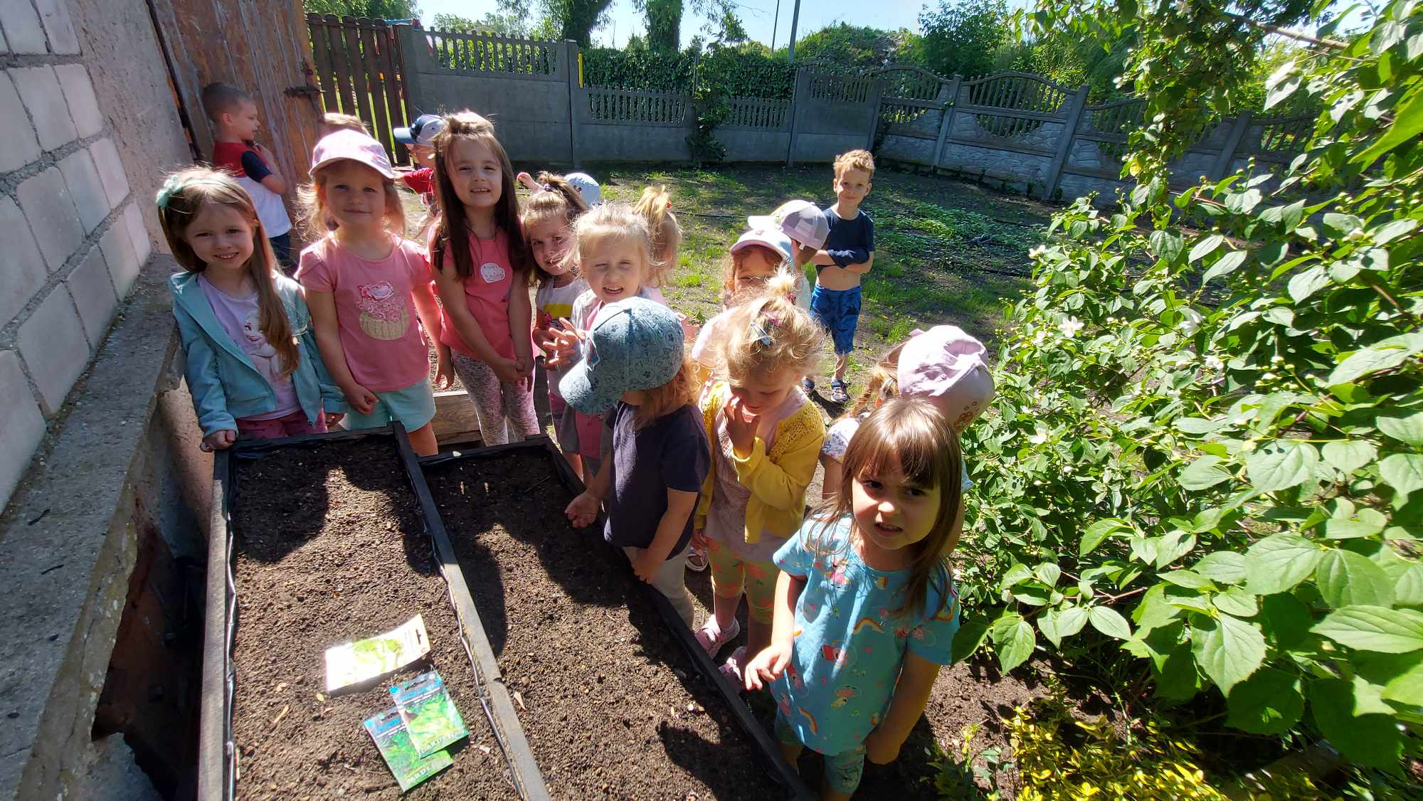 W tym roku wielkie zmiany w naszym przedszkolnym ogrodnictwie. Zrezygnowaliśmy z dużego ogródka warzywnego na rzecz skrzynek podwyższonych. Mamy także nową lokalizację, w połączeniu z ogrodem- łąka kwietna, trawnik do chwil relaksacji, no i najważniejsze- połącznie z placem zabaw ;))) To miejsce cały czas się tworzy, szukamy nowych rozwiązań i pomysłów. Realizujemy tym samym tegoroczny projekt edukacyjny „W trosce o wspólny dom”.
