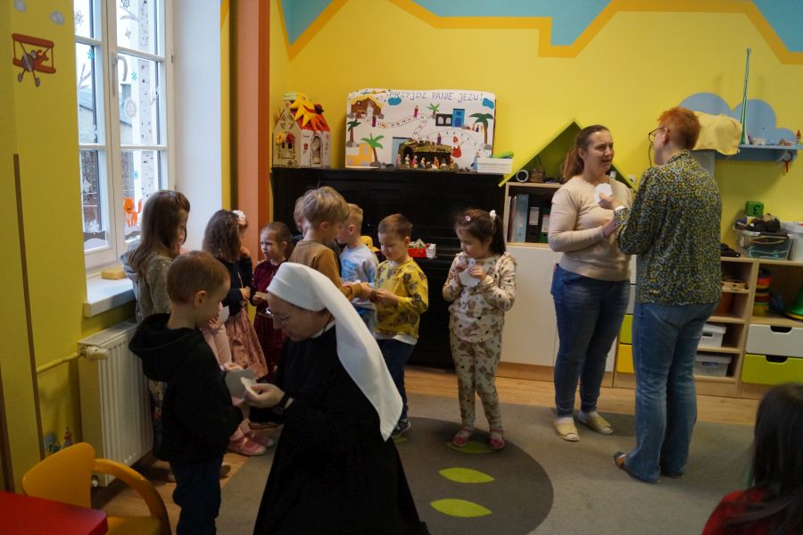 W ostatnim dniu pracy przedszkola przed Świętami Narodzenia Pańskiego cała społeczność spotkała się na krótkie spotkanie opłatkowe.