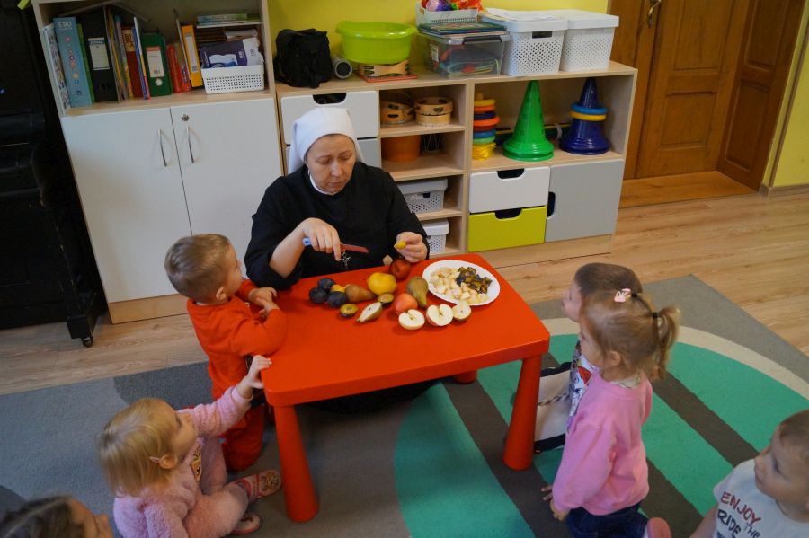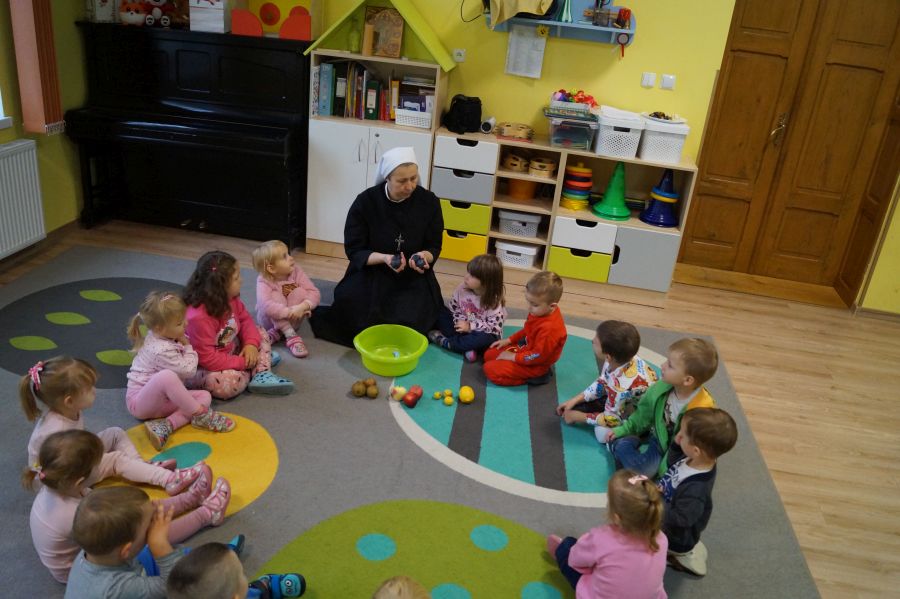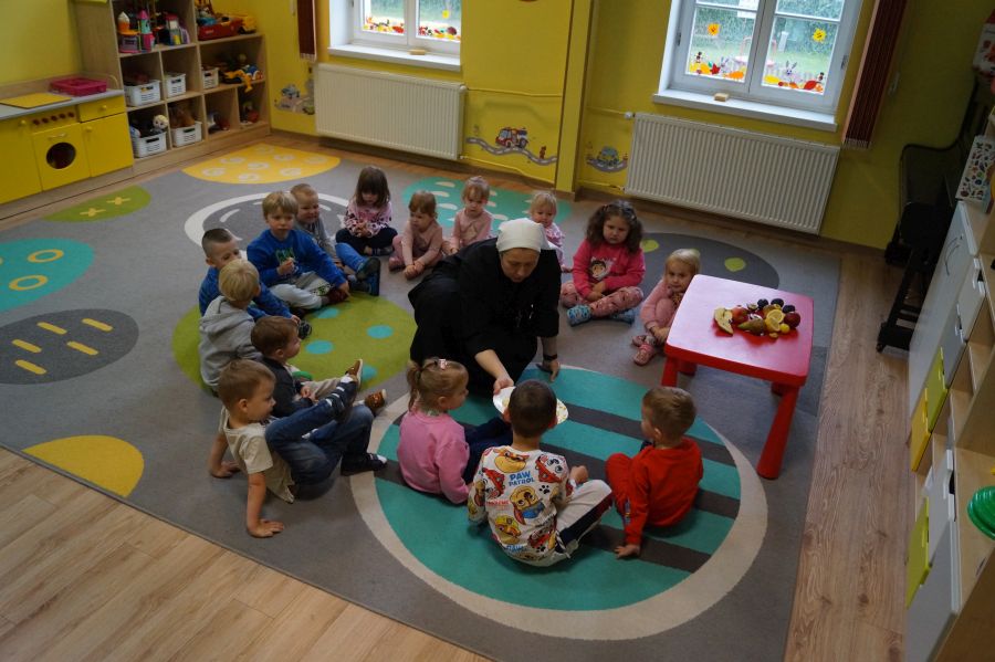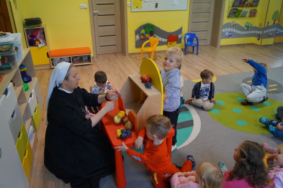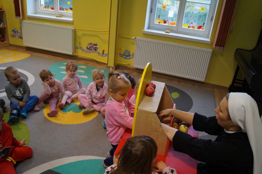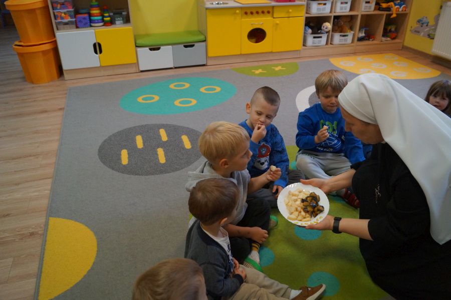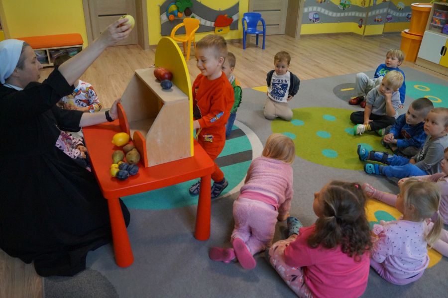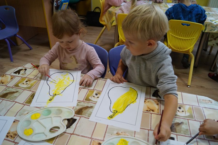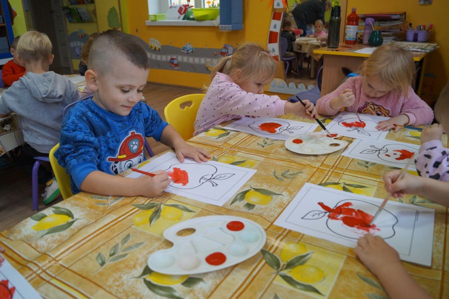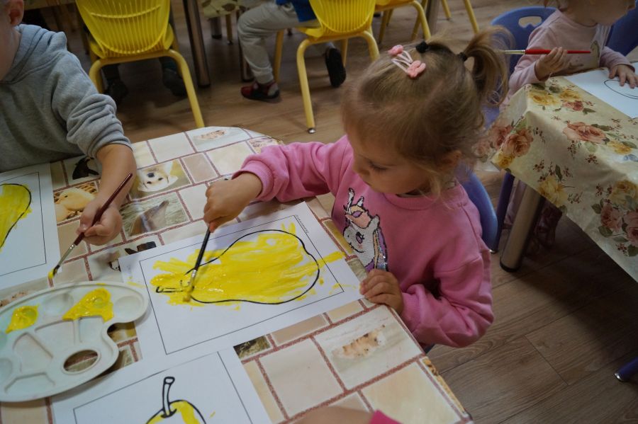 Dzieci młodsze dobrze wiedzą, że owoce są smaczne i zdrowe, znają ich nazwy, smaki, kolory…podczas zajęć miały okazję poznać nowe ciekawostki oraz utrwalić swoją wiedzę. Ćwiczyliśmy również koordynację wzrokowo- ruchową podczas malowania farbami.