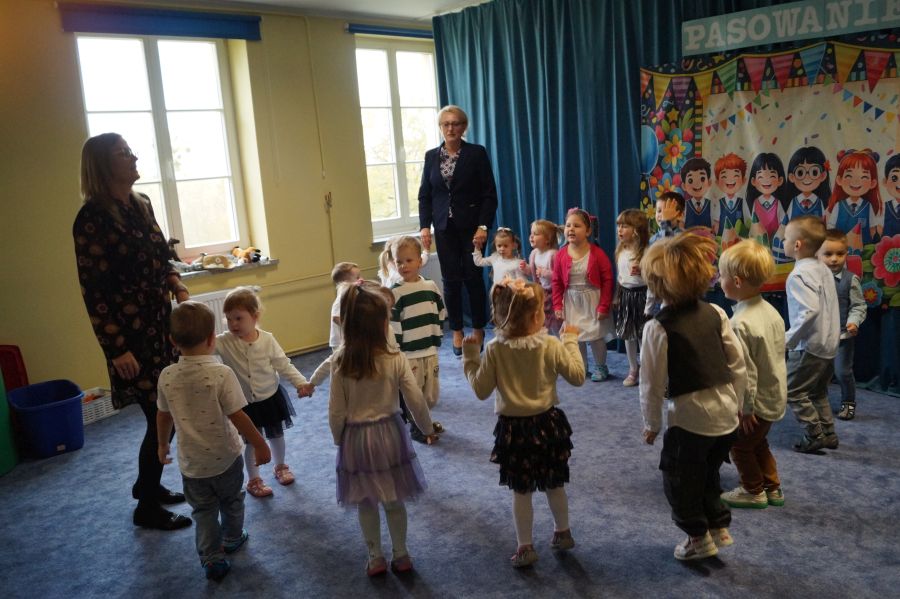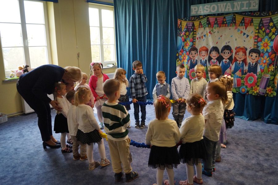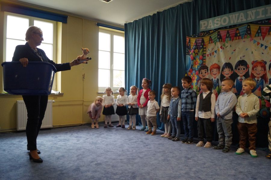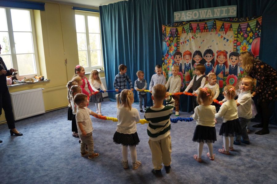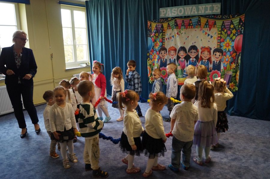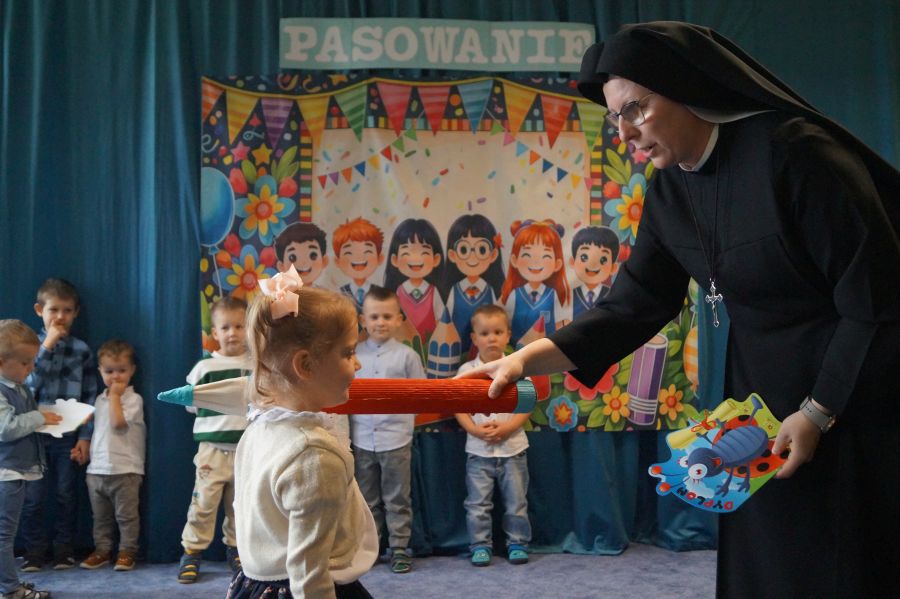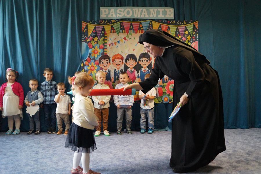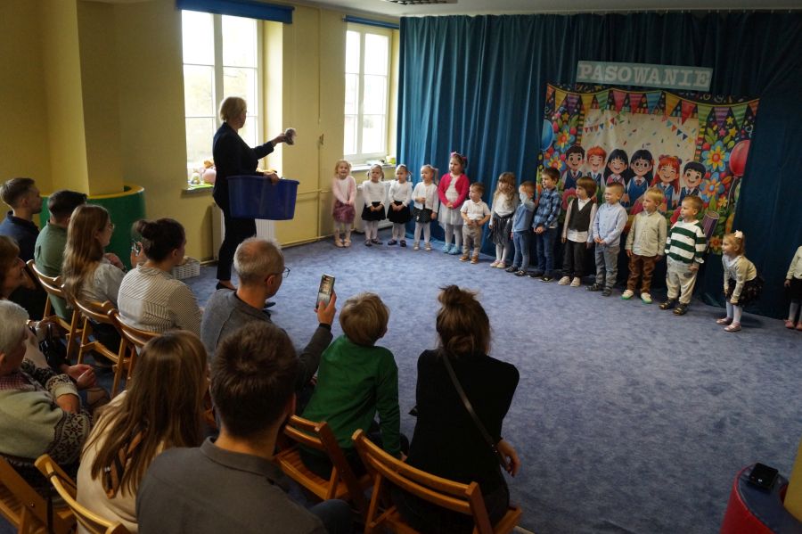 W naszym przedszkolu wielkie święto. Jeden z najważniejszych dni w życiu przedszkolaka czyli pasowanie- oficjalne włączenie dziecka do społeczności przedszkola. Nasze maluchy świetnie się zaprezentowały przed rodzicami, dziadkami i Siostrą Dyrektor, która na zakończenie dokonała uroczystego pasowania.