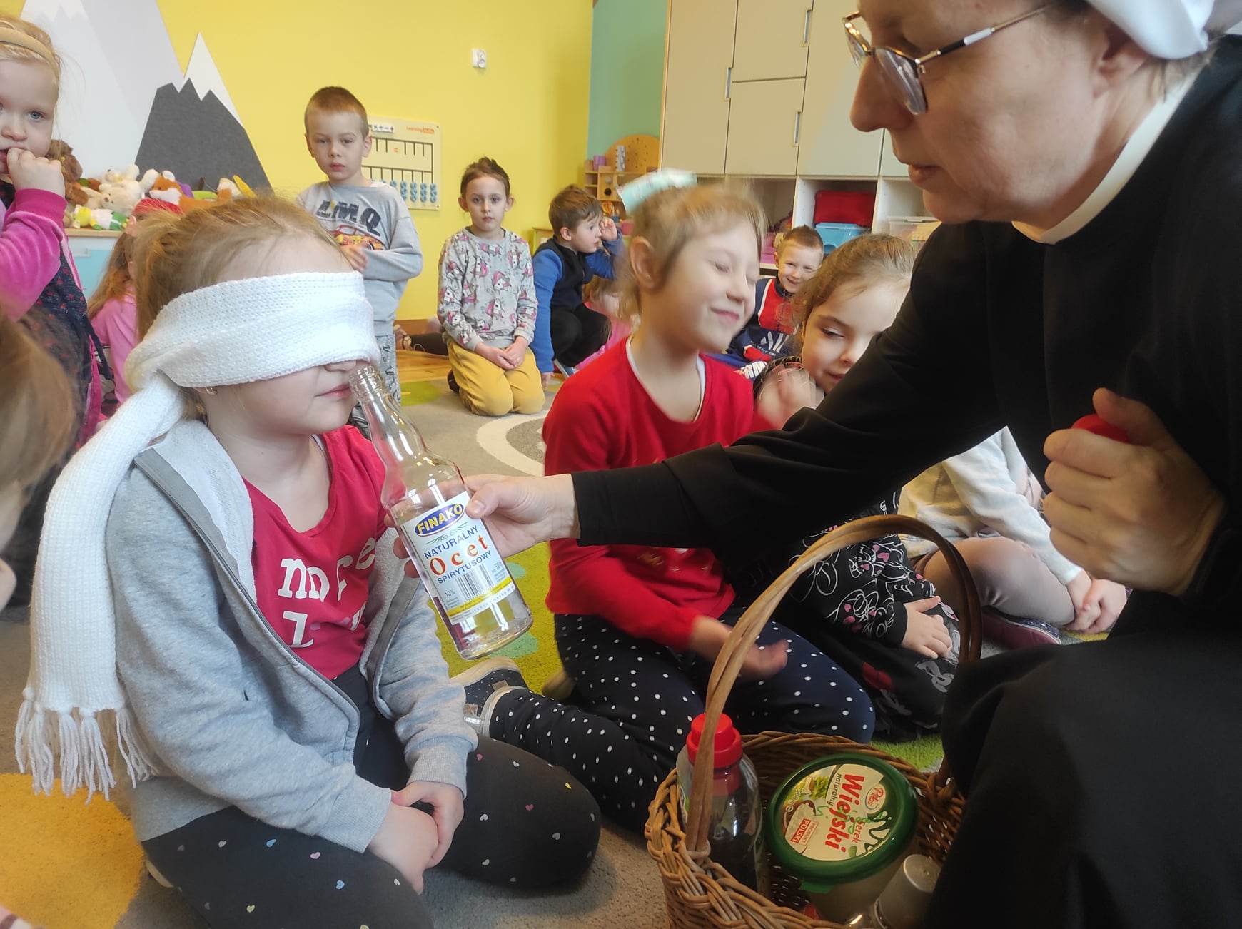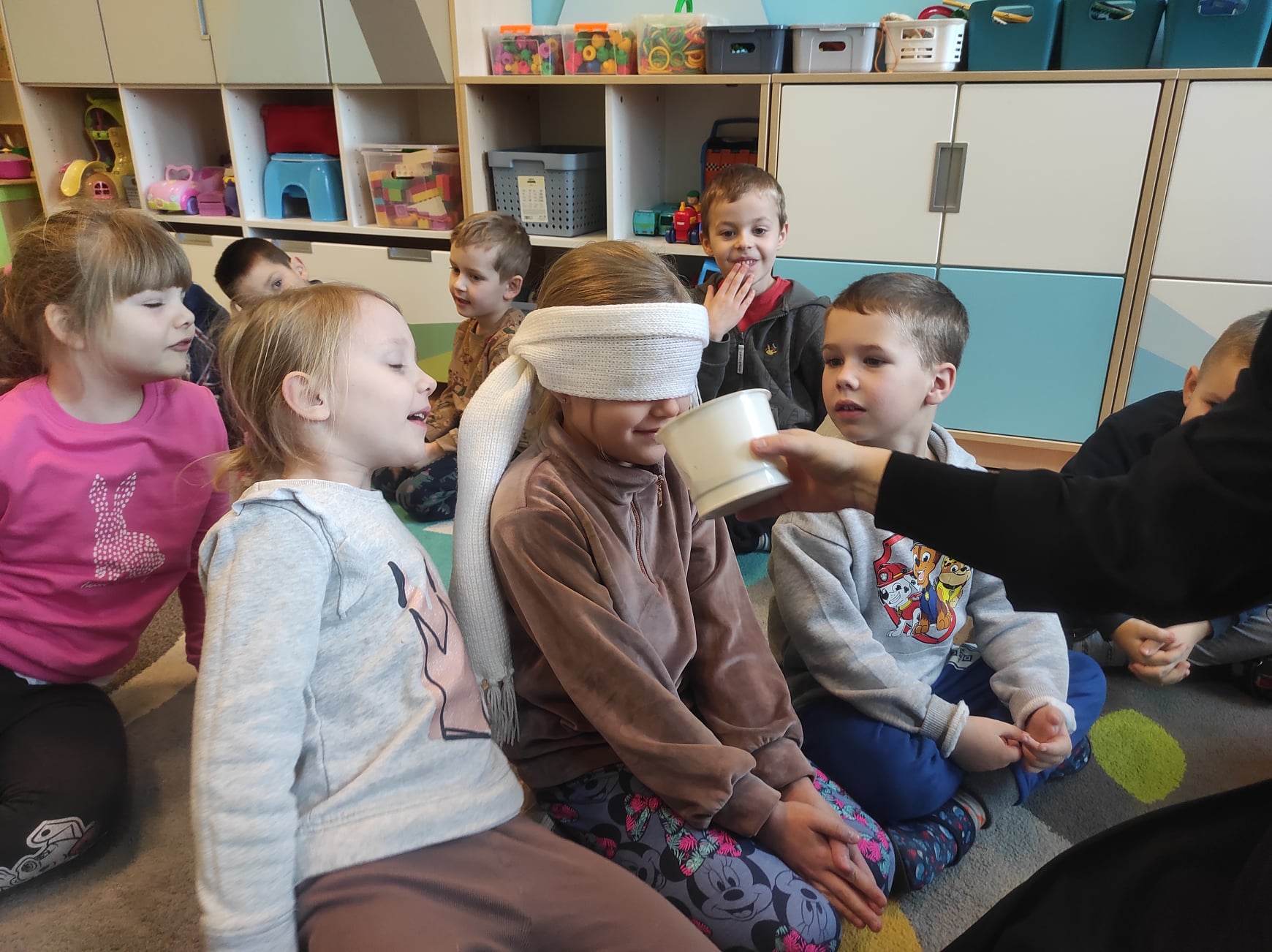Nasze Bratki utrwalały znajomość zmysłów poprzez zabawy sensoryczne. „Pięć zmysłów mam i wszystkie znam…”