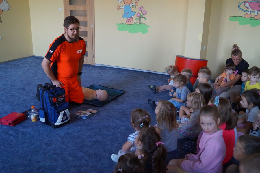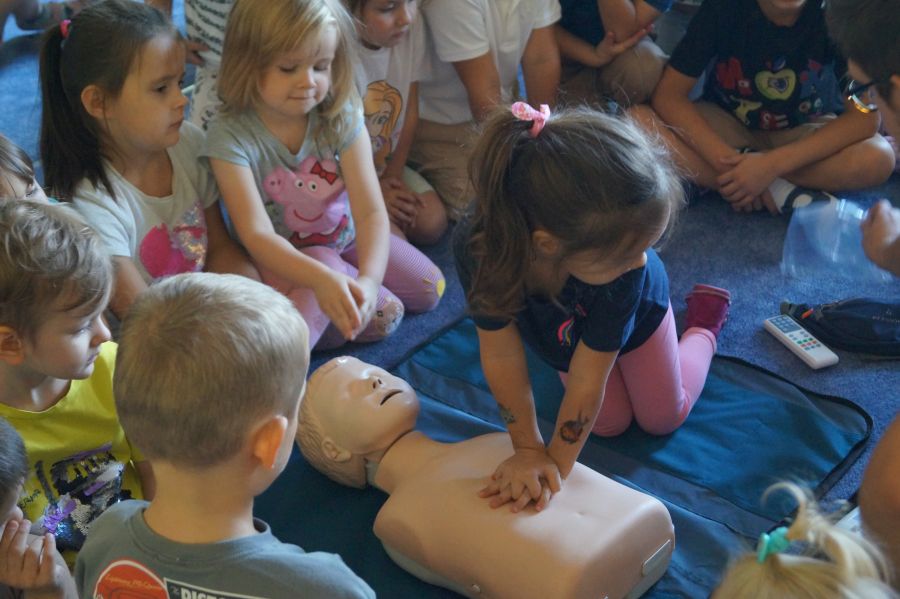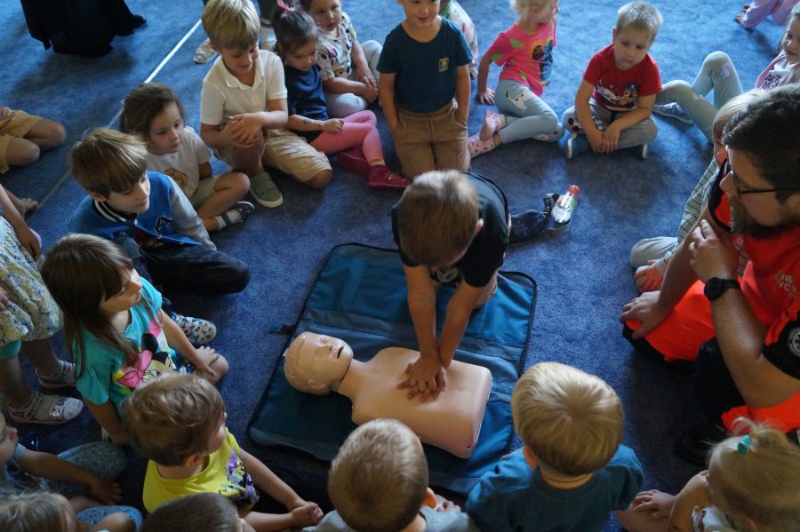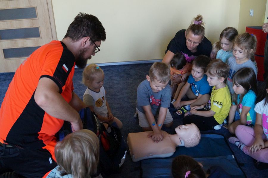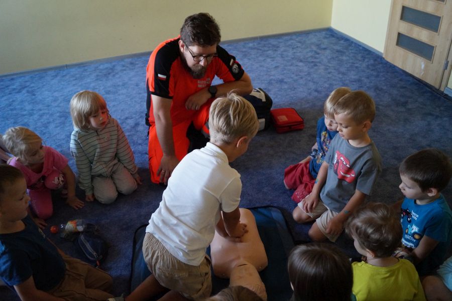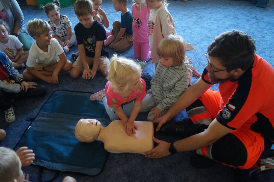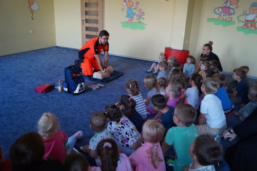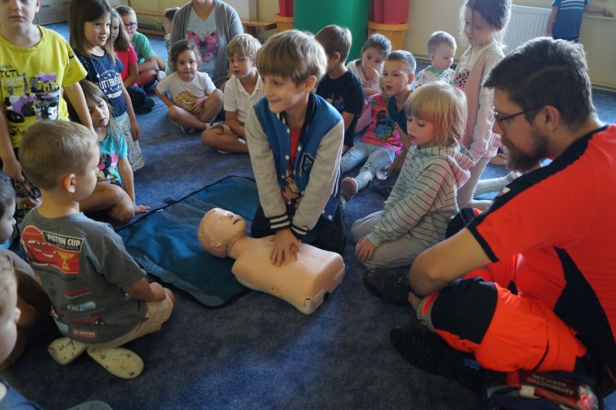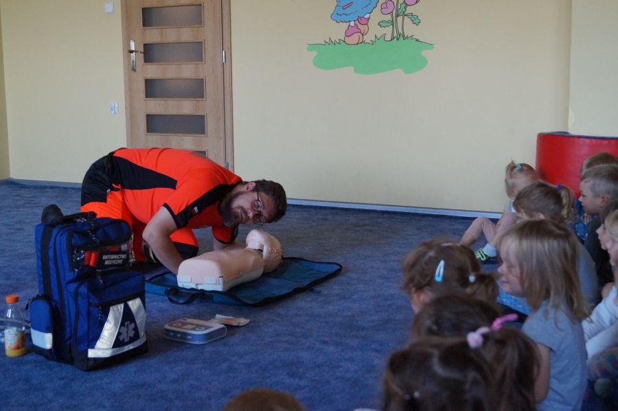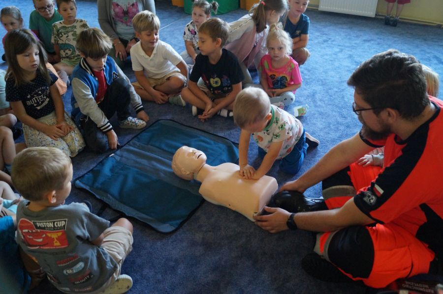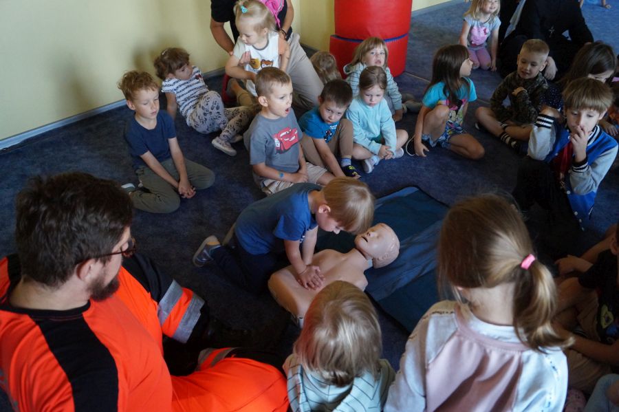 Wszyscy wiemy, jak ważna jest edukacja dla bezpieczeństwa i posiadanie umiejętności udzielania pomocy w sytuacjach kryzysowych. Nasze dzieci miały okazje poznać pracę ratownika medycznego oraz spróbować swoich sił w wykonywaniu masażu serca. Trzeba przyznać, że robiły to chętnie i profesjonalnie. Bardzo dziękujemy panu Adrianowi Zieńczuk za przeprowadzone szkolenie.