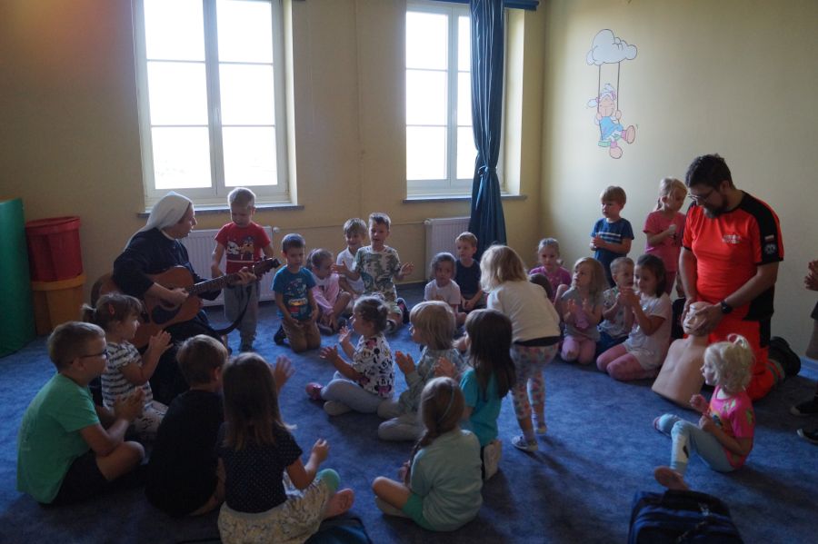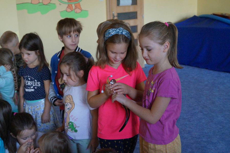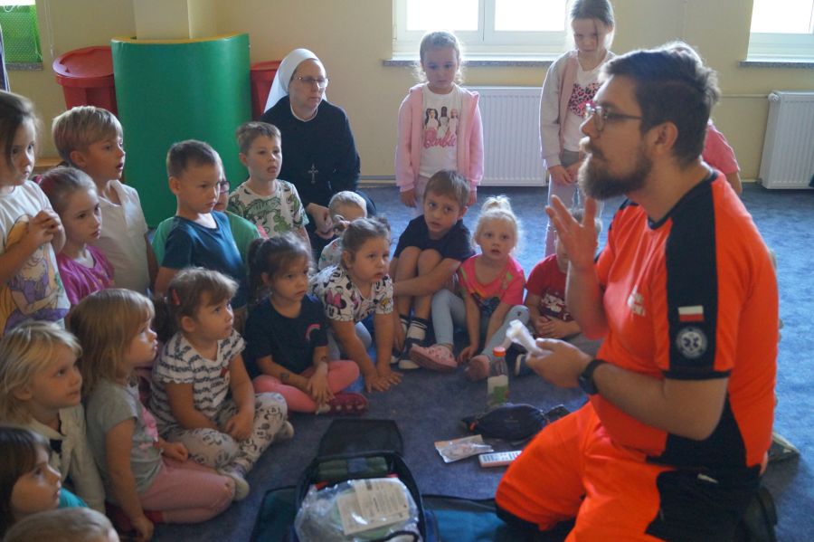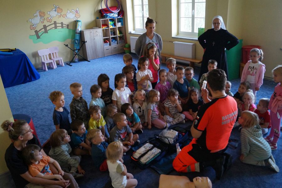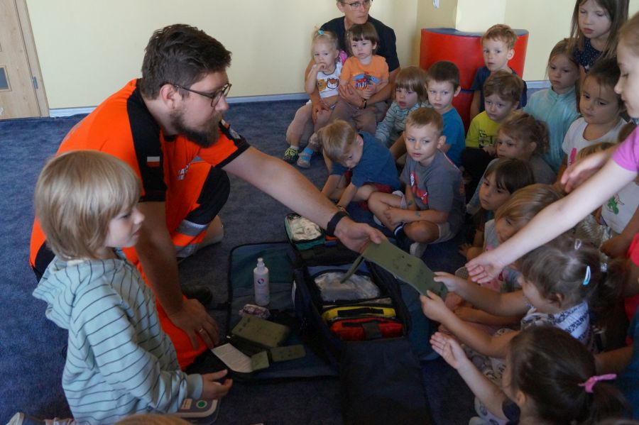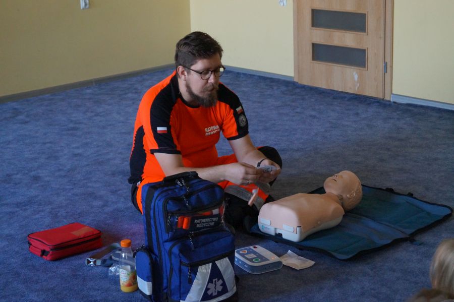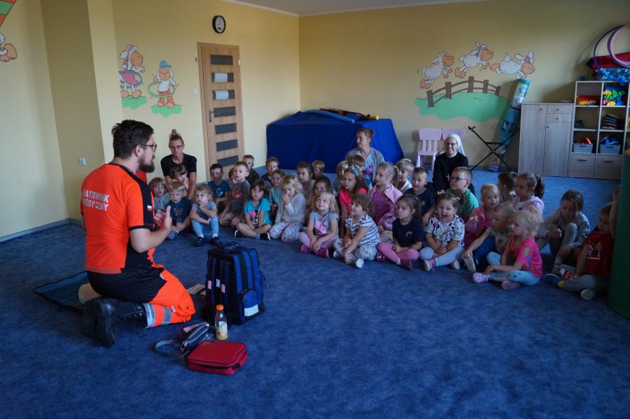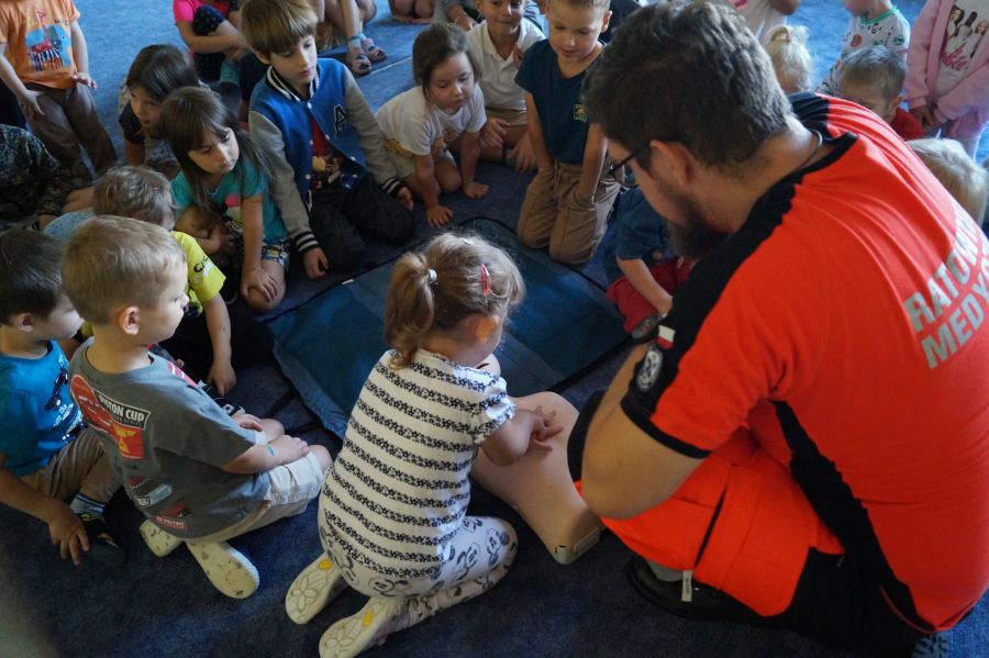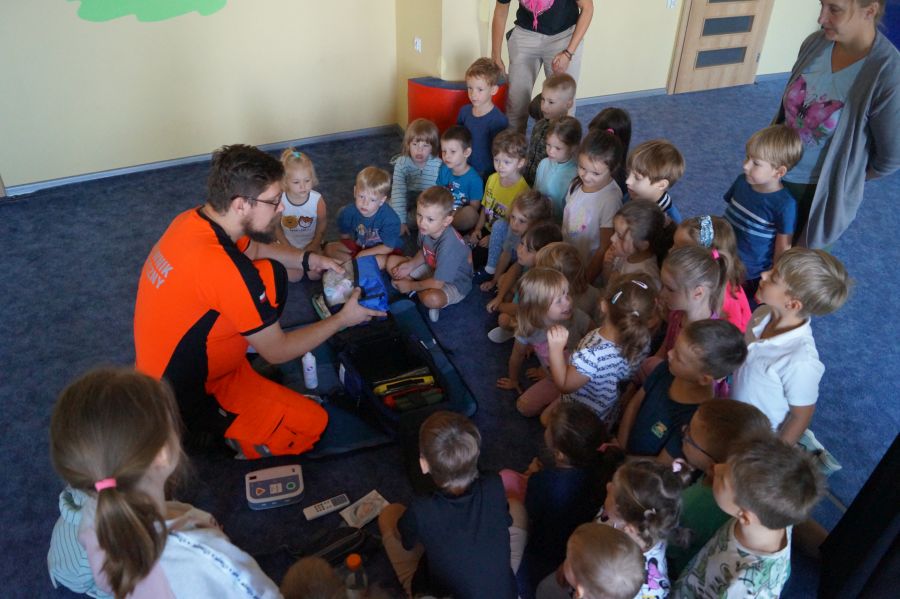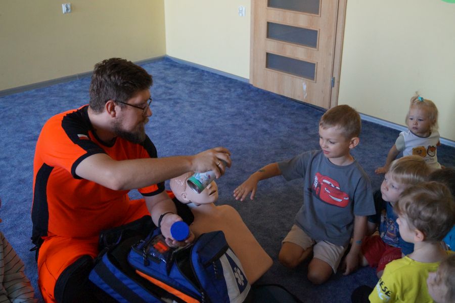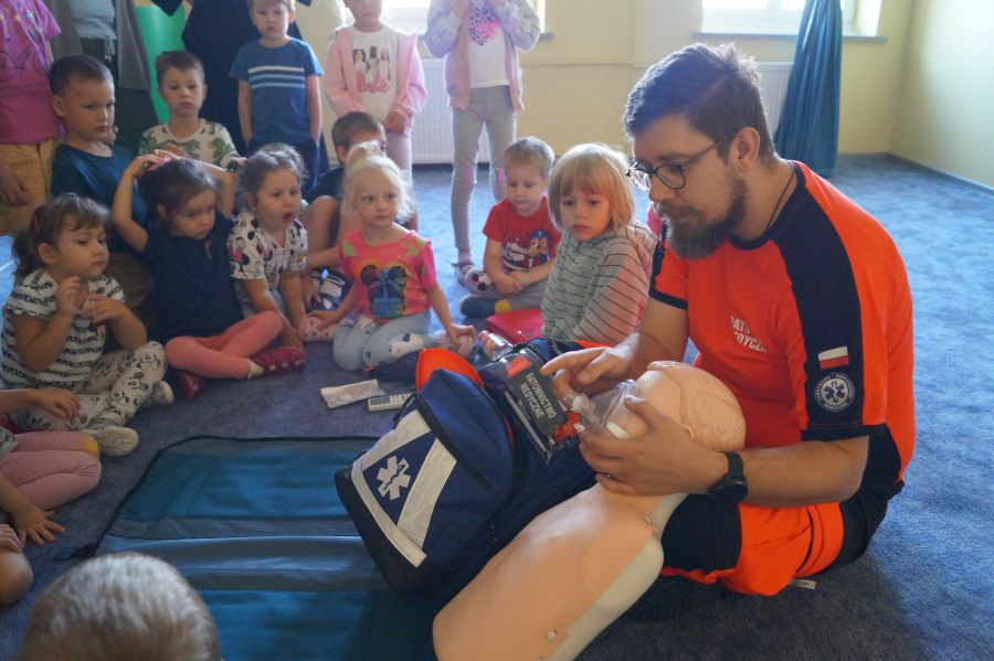 Wszyscy wiemy, jak ważna jest edukacja dla bezpieczeństwa i posiadanie umiejętności udzielania pomocy w sytuacjach kryzysowych. Nasze dzieci miały okazje poznać pracę ratownika medycznego oraz spróbować swoich sił w wykonywaniu masażu serca. Trzeba przyznać, że robiły to chętnie i profesjonalnie. Bardzo dziękujemy panu Adrianowi Zieńczuk za przeprowadzone szkolenie.