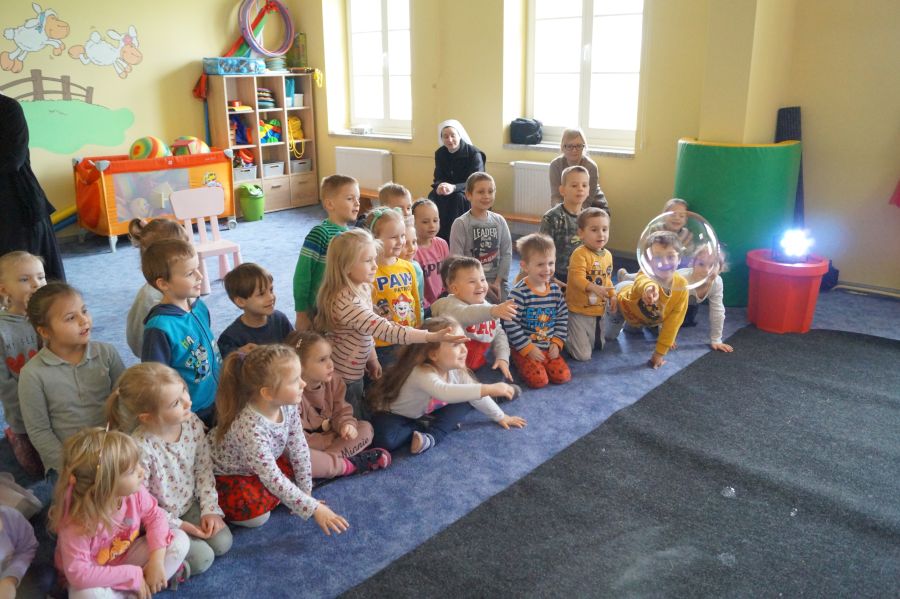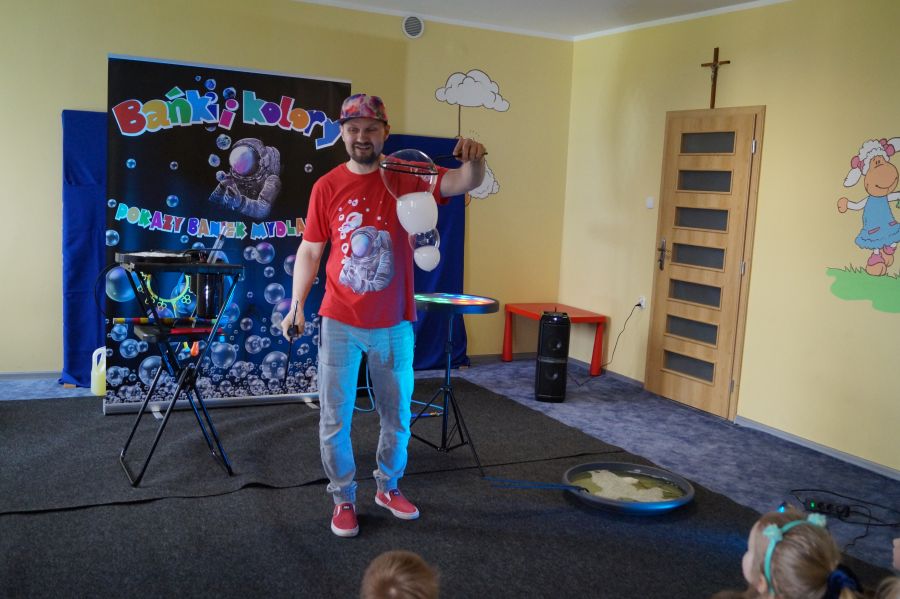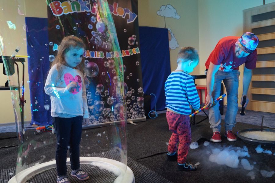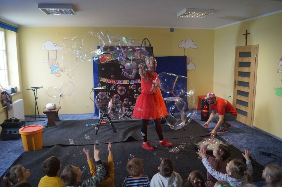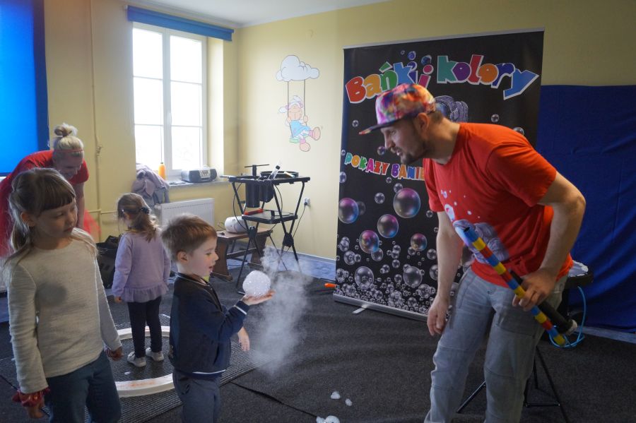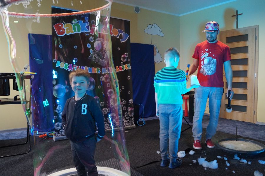 Dzieci wzięły udział w pokazie baniek mydlanych, było to niezapomniane przeżycie.