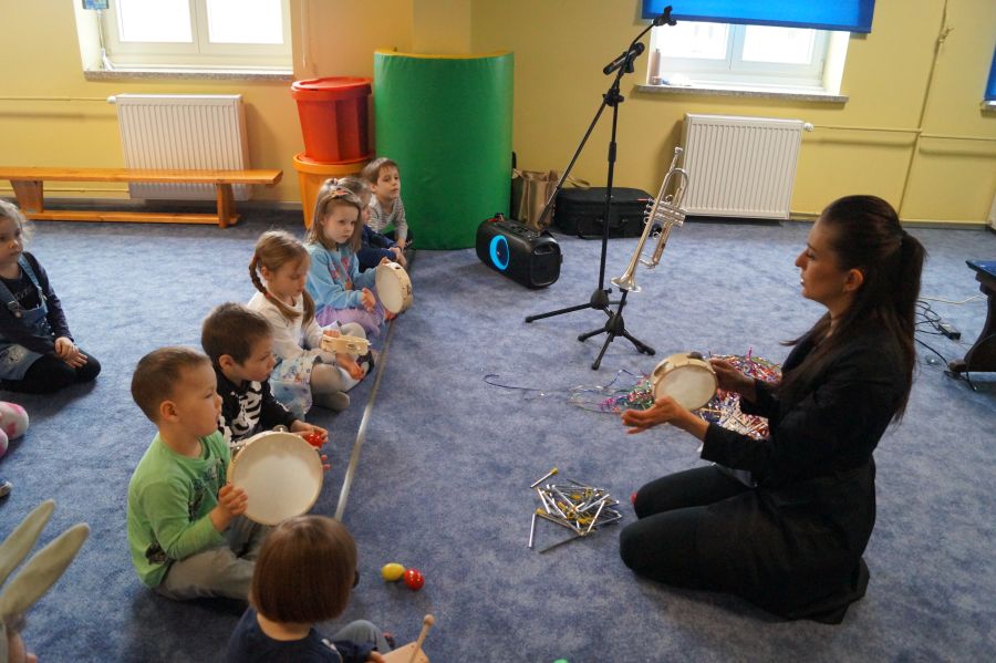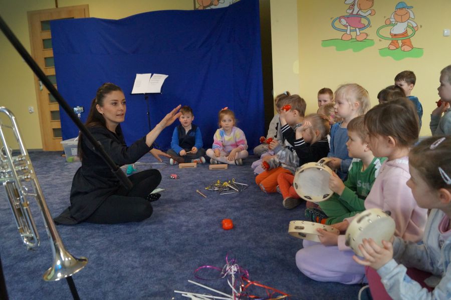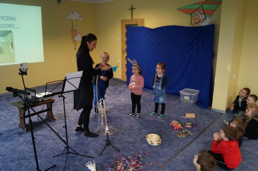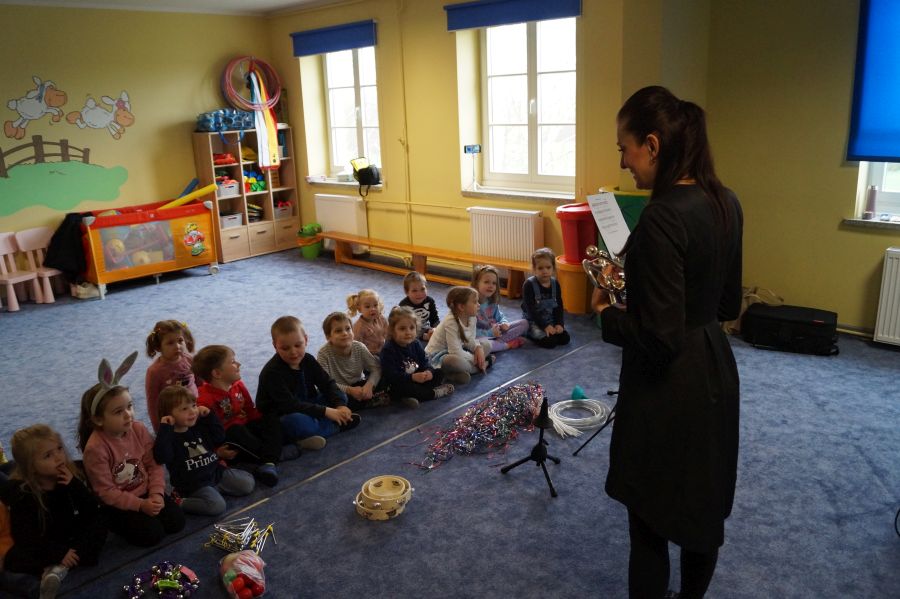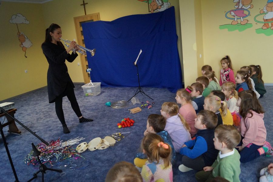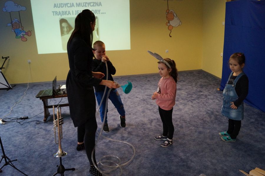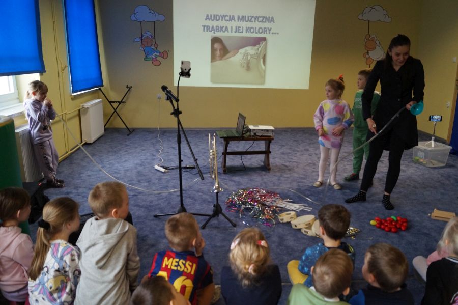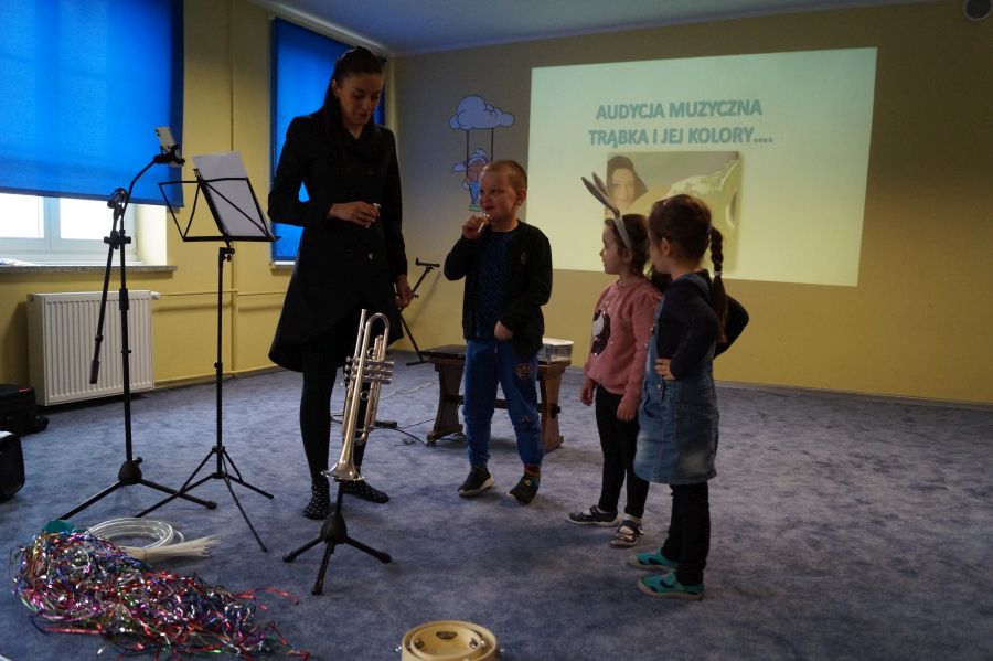 W naszym przedszkolu od samego rana królowała muzyka klasyczna. Dzięki pani Klaudii dzieci zapoznały się z min. z trąbką, miały też okazję do aktywnego słuchania muzyki- tańcząc z rekwizytami i grając na instrumentach perkusyjnych.