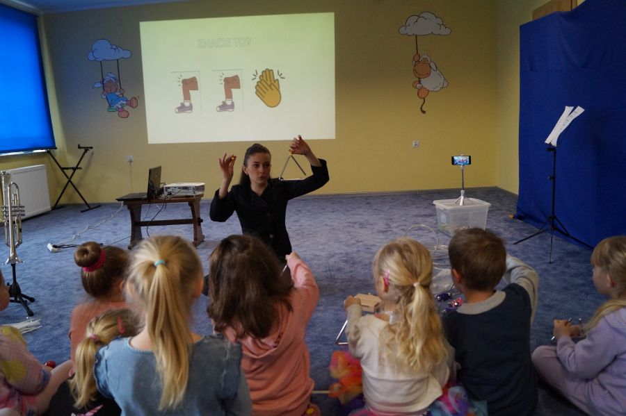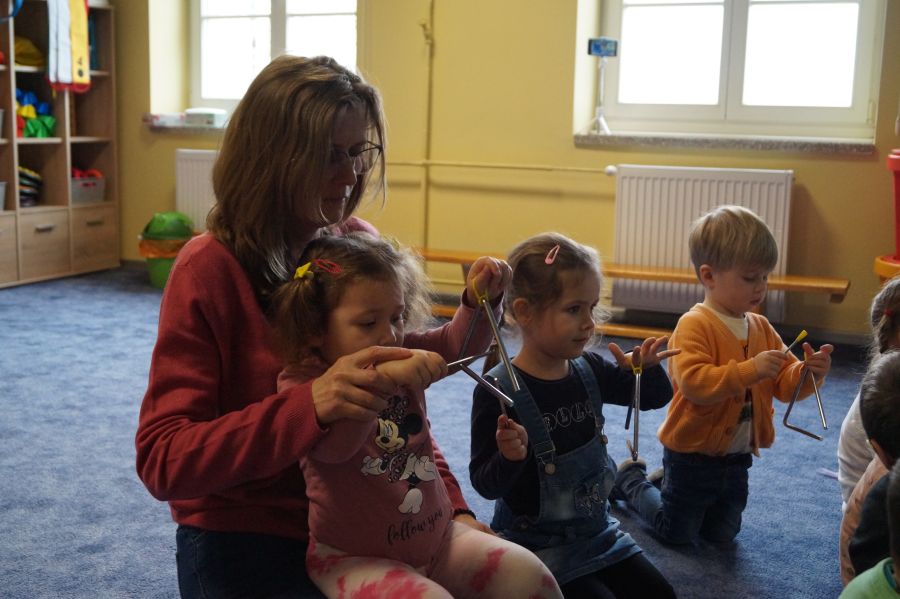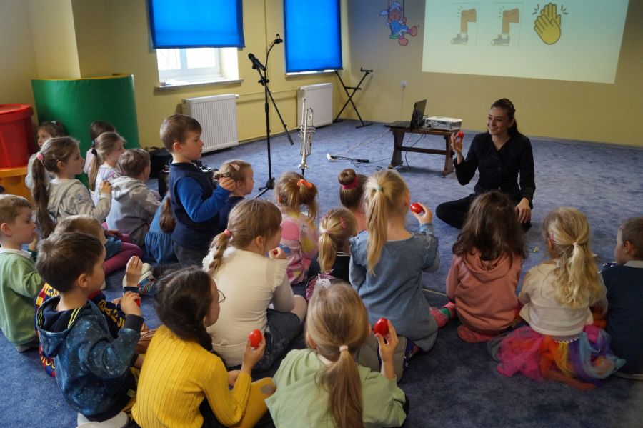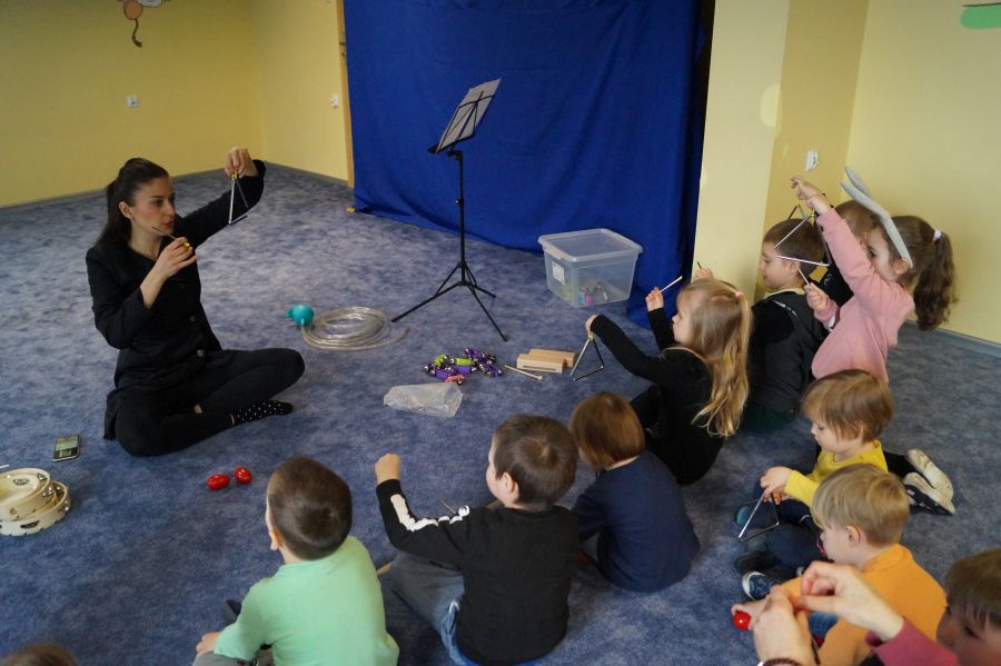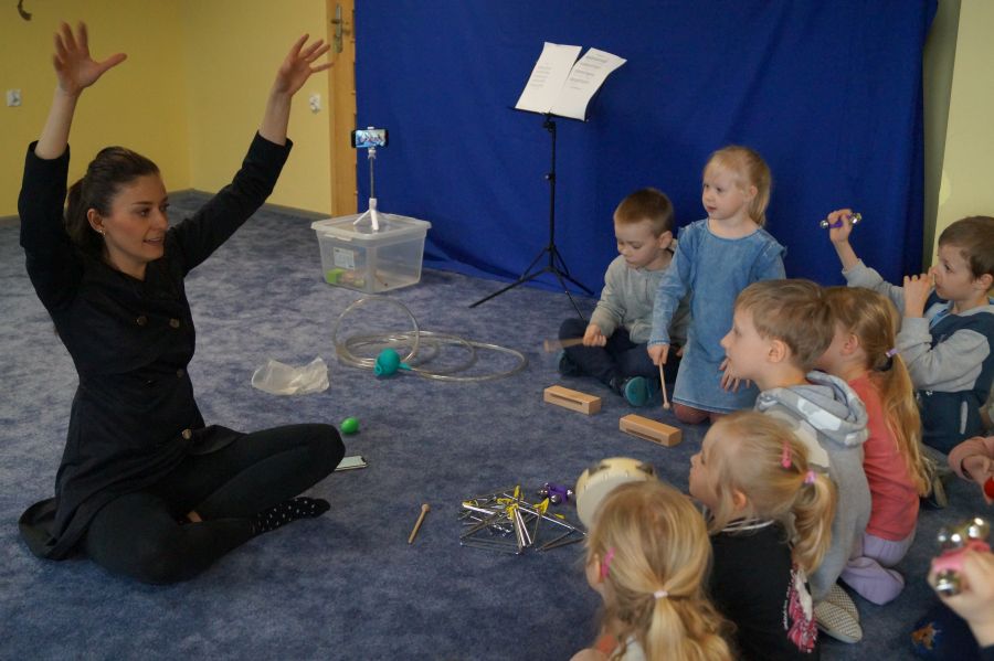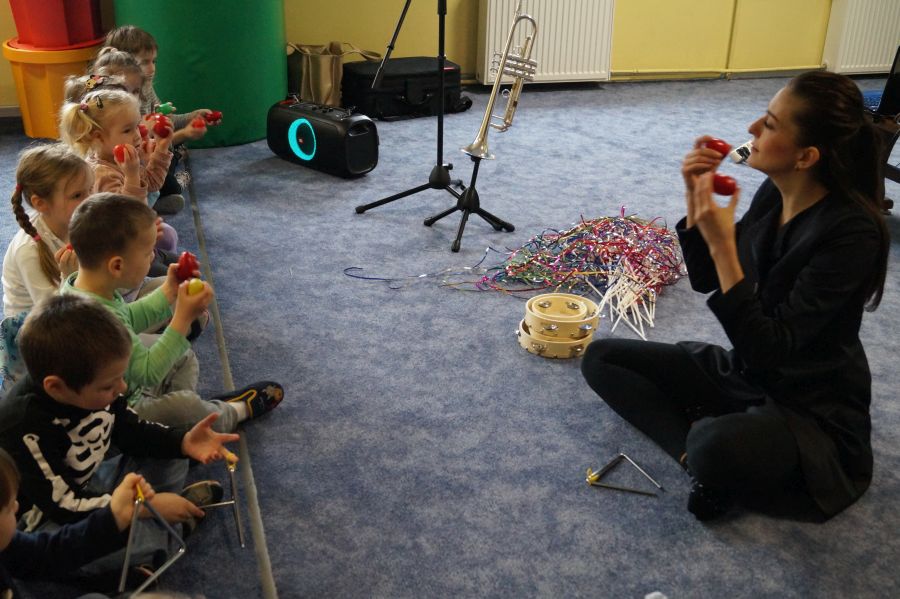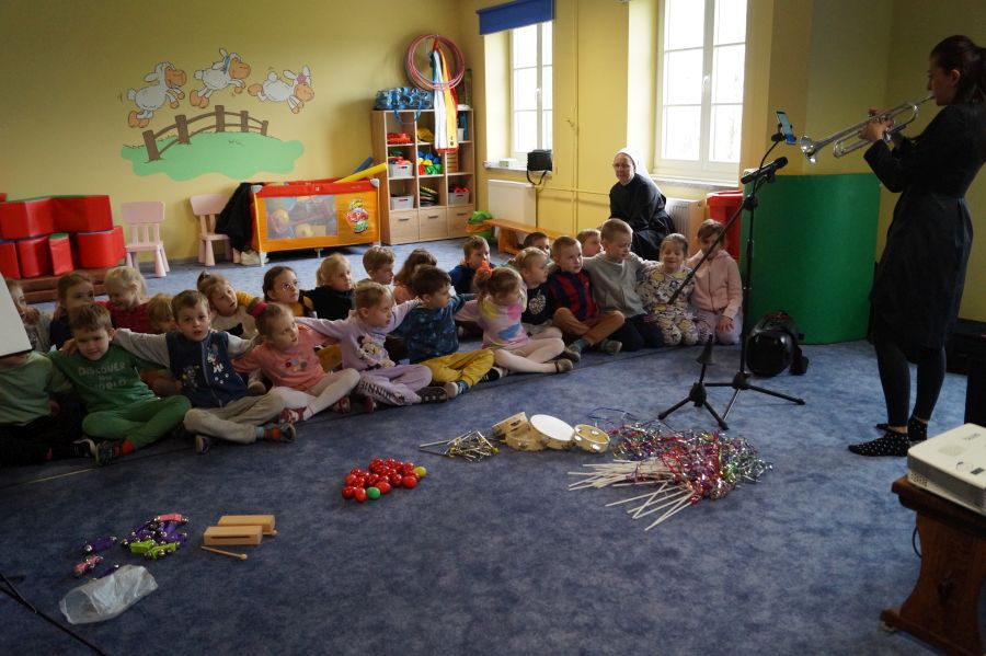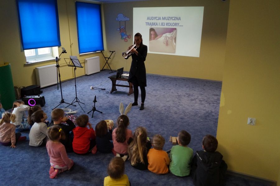 W naszym przedszkolu od samego rana królowała muzyka klasyczna. Dzięki pani Klaudii dzieci zapoznały się z min. z trąbką, miały też okazję do aktywnego słuchania muzyki- tańcząc z rekwizytami i grając na instrumentach perkusyjnych.