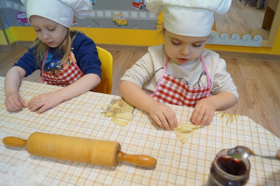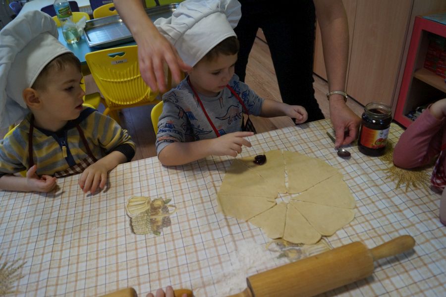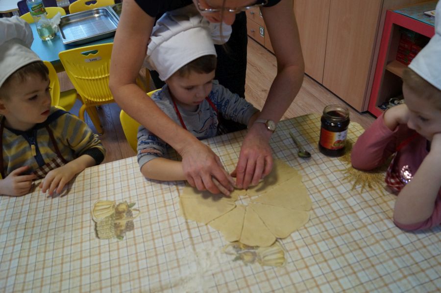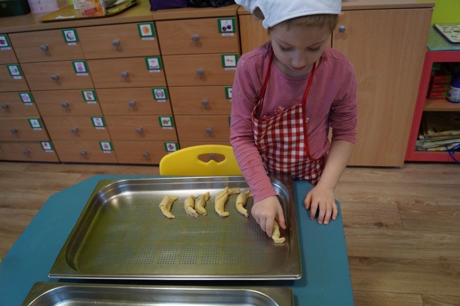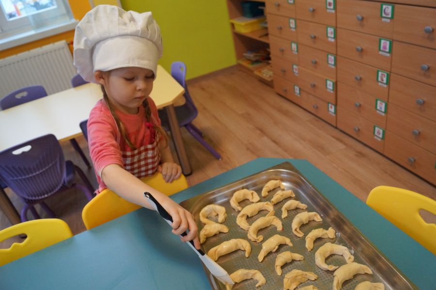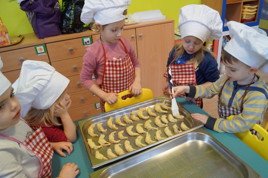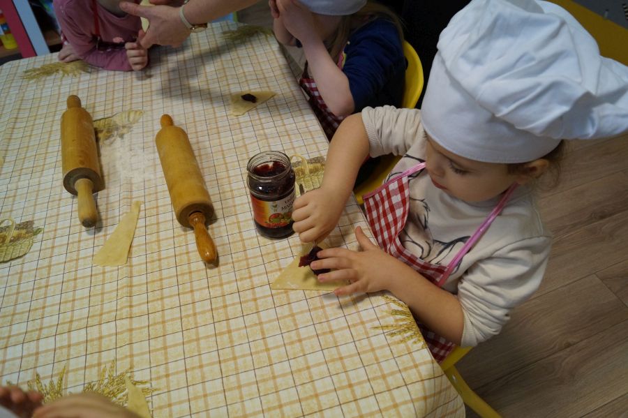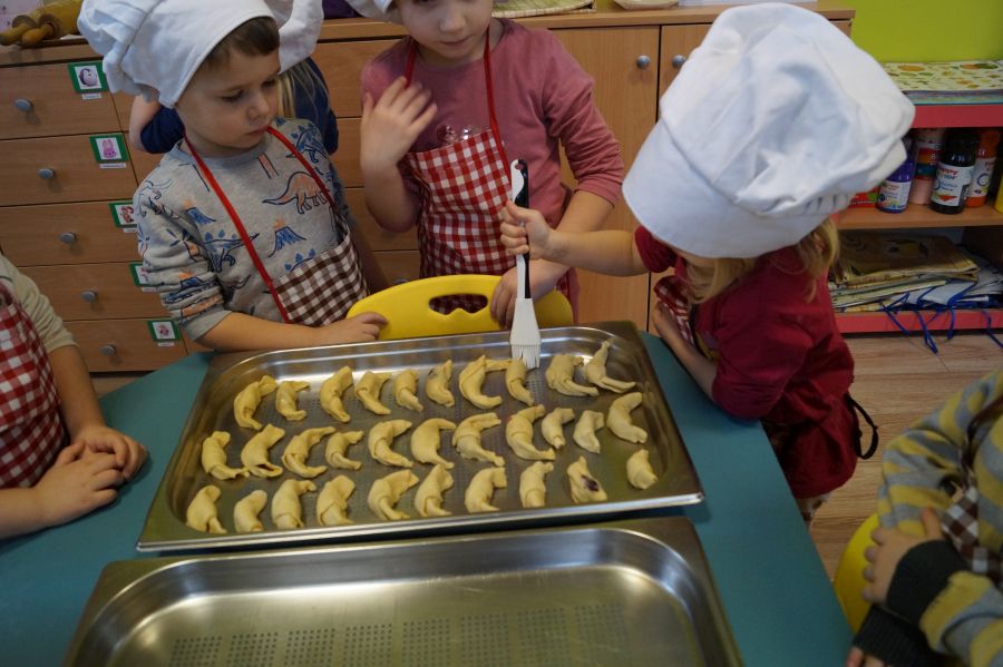 Nasze maluchy uwielbiają zajęcia z Kuchcikowa- dzisiaj piekły rogaliki z marmoladą. Zwijanie rogali to nie lada wyczyn, ale nawet najmłodsze dzieci jakoś dały radę.